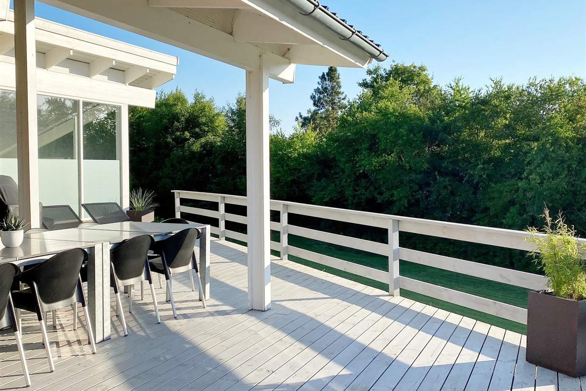 Die überdachte Terrasse lädt zu Mahlzeiten im Freien und gemütlichen Abenden mit freiem Blick auf die grüne Umgebung des Anwesens ein. Kinder können auf der Rutsche in den Garten vergnügen oder auf den hauseigenen Schaukeln spielen, während Erwachsene an sonnigen Plätzen entspannen oder ihren Nachmittagskaffee im Freien genießen. Ein wunderschöner, kinderfreundlicher Strand ist nur wenige hundert Meter vom Haus entfernt und lädt zum Schwimmen, Sandburgenbauen und für Badespaß ein.