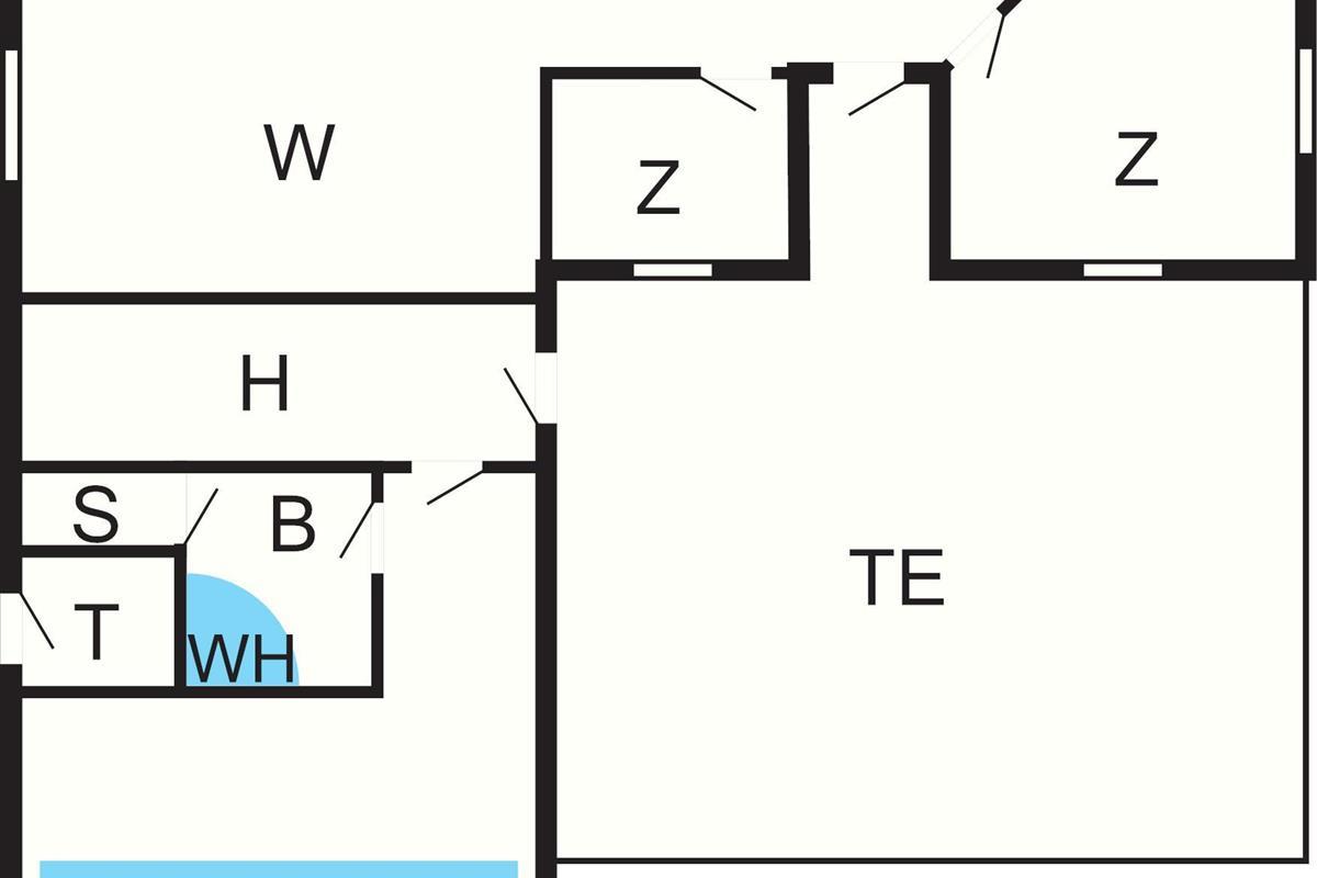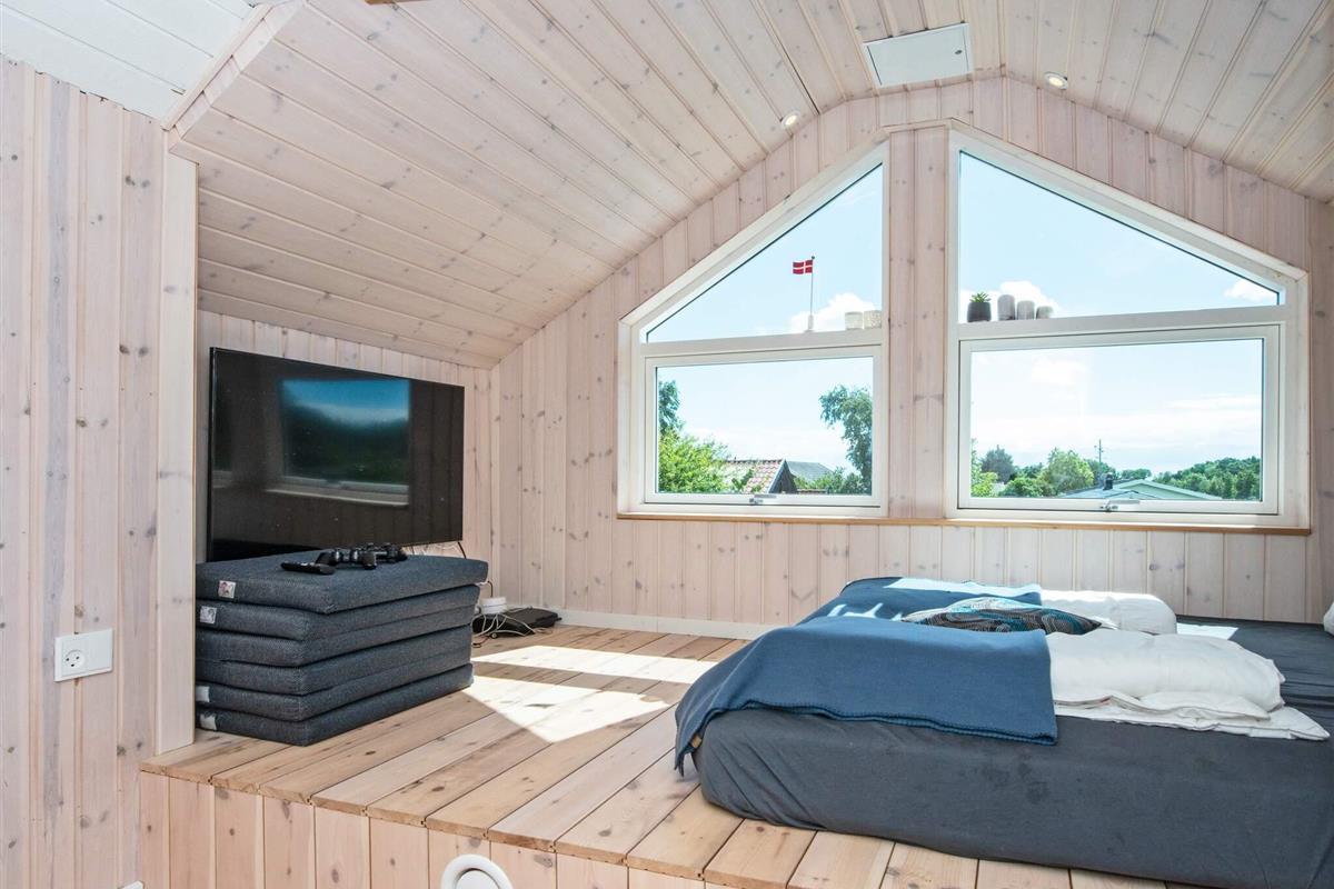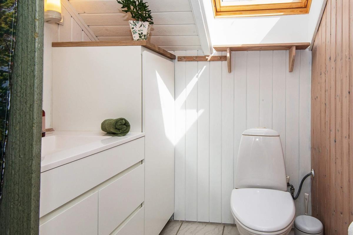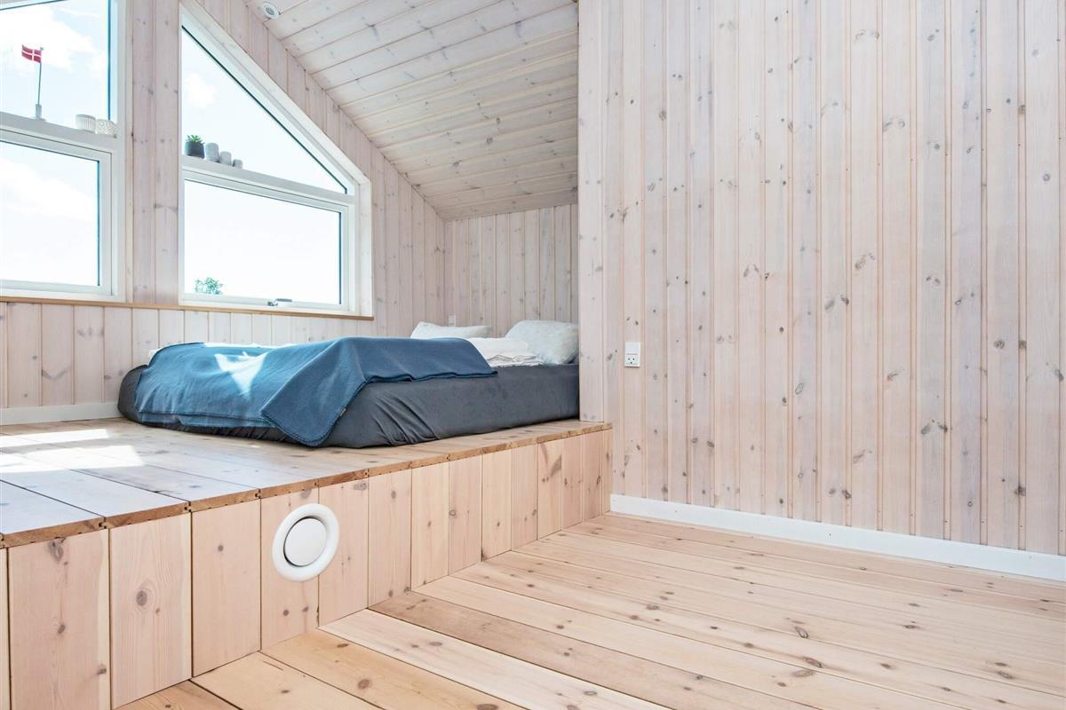 Gleichzeitig wurde ein großer Hems gebaut, auf dem zwei Personen Platz haben und schlafen können. Neben den Schlafplätzen auf dem Hems gibt es natürlich noch vier Schlafzimmer, die auch jeweils zwei Schlafplätze bieten. Alle vier Zimmer liegen in dem einen Flügel des Hauses, wo auch das zweite Badezimmer, das u.a. mit Dusche und angenehmer Fußbodenheizung ausgestattet ist, platziert wurde.