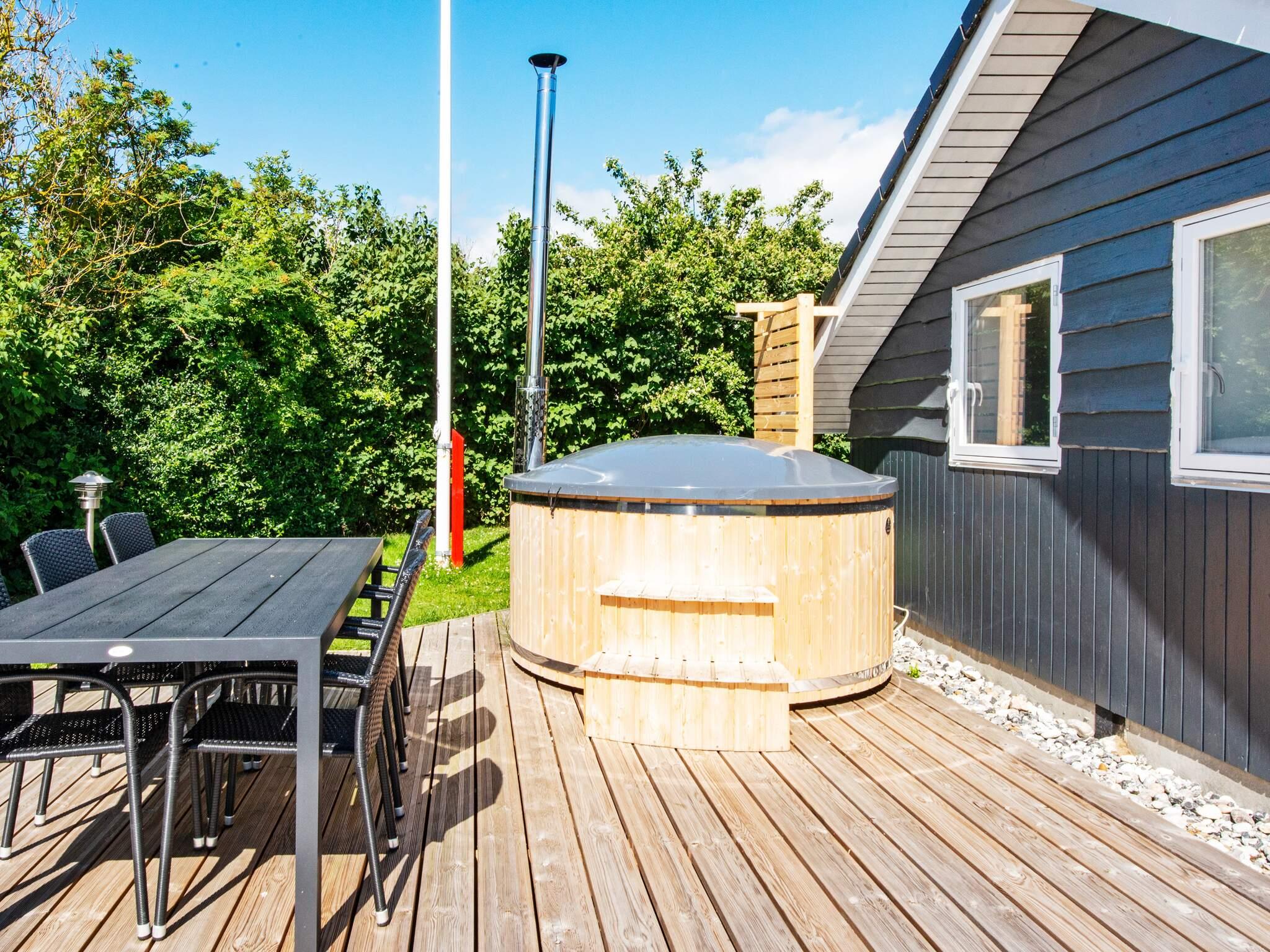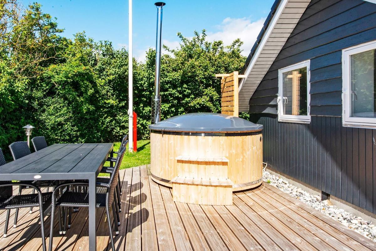 Draußen erwartet Sie eine große Terrasse, wo Sie ungestört die Sonne oder Ihr gegrilltes Abendessen genießen können. Zudem gibt es einen Badezuber, der mit Brennholz befeuert werden muss. Kein Gas bzw. keine Grillkohle oder Brennholz vorhanden.\