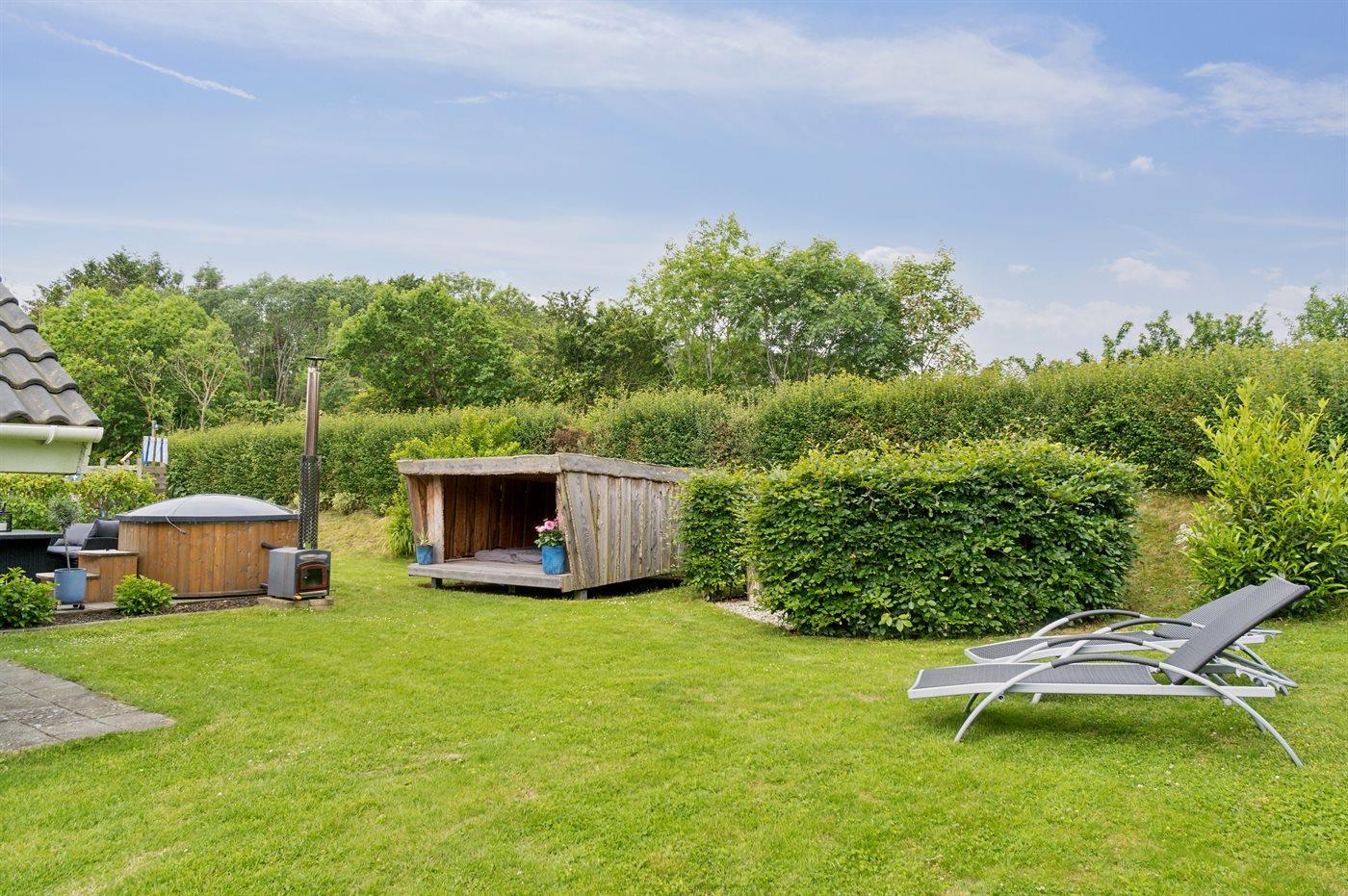 De vakantiewoning is gelegen op een 941 m² groot aangelegde tuin. Afstand tot de zee 600 m. Dichtstbijzijnde winkel 3000 m. Bij de vakantiewoning hoort terras. Daarnaast is er een overdekt terras. Schommel. Zandbak. Speeltoren.Vuurplaats. Shelter. Parkeerplaats bij het huis.