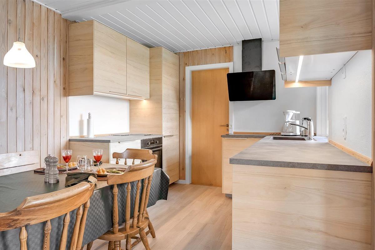 De keuken is uitgerust met koelkast Er is 4 inductiekookplaten, heteluchtoven, magnetron en vaatwasser.