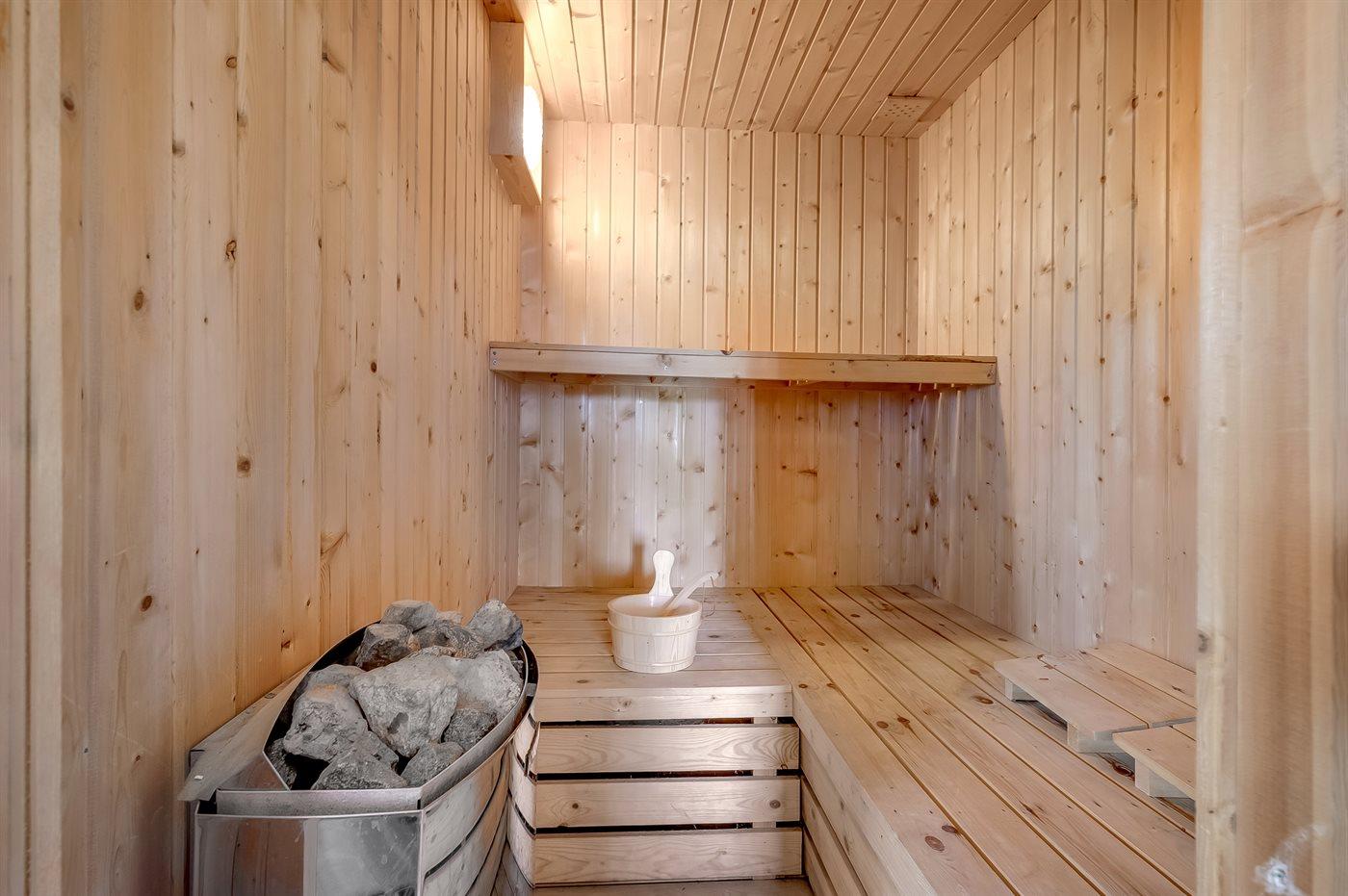 Er is 1 badkamer met douchehok en 1 toilet.. Er is vloerverwarming in 1 badkamer. De sauna biedt de gelegenheid tot ontspanning.