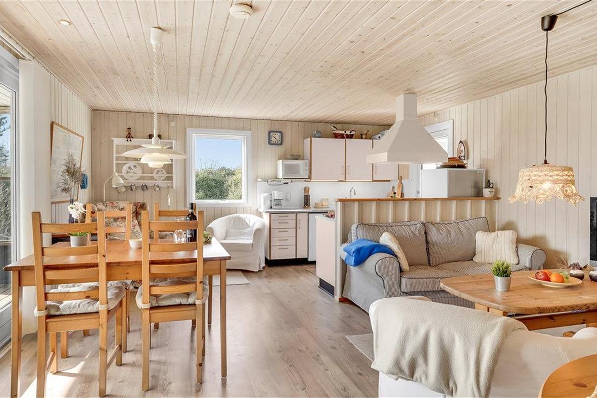 Binnen vindt u een gezellige en vriendelijke inrichting met een grote open woonkamer en enkele comfortabele zitplaatsen, evenals vensterpuien voor lichtdoorstroomde kamers. Maak samen het ontbijt en geniet ervan op uw open en deels overdekte terras terwijl u de zon op u laat schijnen en geniet van de buitenlucht. De sfeer van het huis is warm en licht, wat u een gezellig en huiselijk gevoel geeft. Er is ook een jacuzzi en een sauna tot uw beschikking, waar u volledig kunt ontspannen. De tuin nodigt ook uit tot activiteiten tijdens de vakantie, zoals brood roosteren op de open haard met uw vrienden en familie.