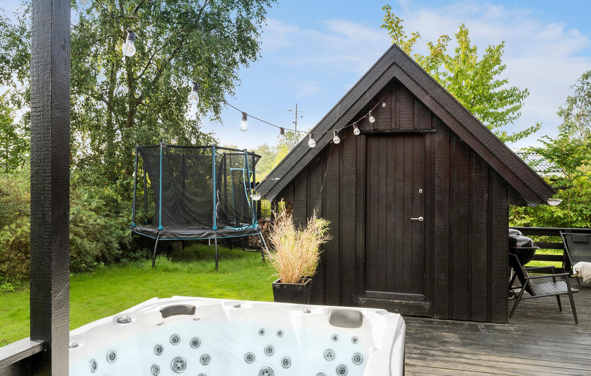 Het huis heeft een tuin en een groot houten terras met zonnige en schaduwrijke hoekjes. Geniet hier 's middags van een kopje koffie terwijl u de kinderen op het grasveld ziet spelen. Sluit de dag lekker af in de outdoor whirlpool. Er zijn ook twee verwarmde bijgebouwen in de tuin met extra slaapgelegenheid.
