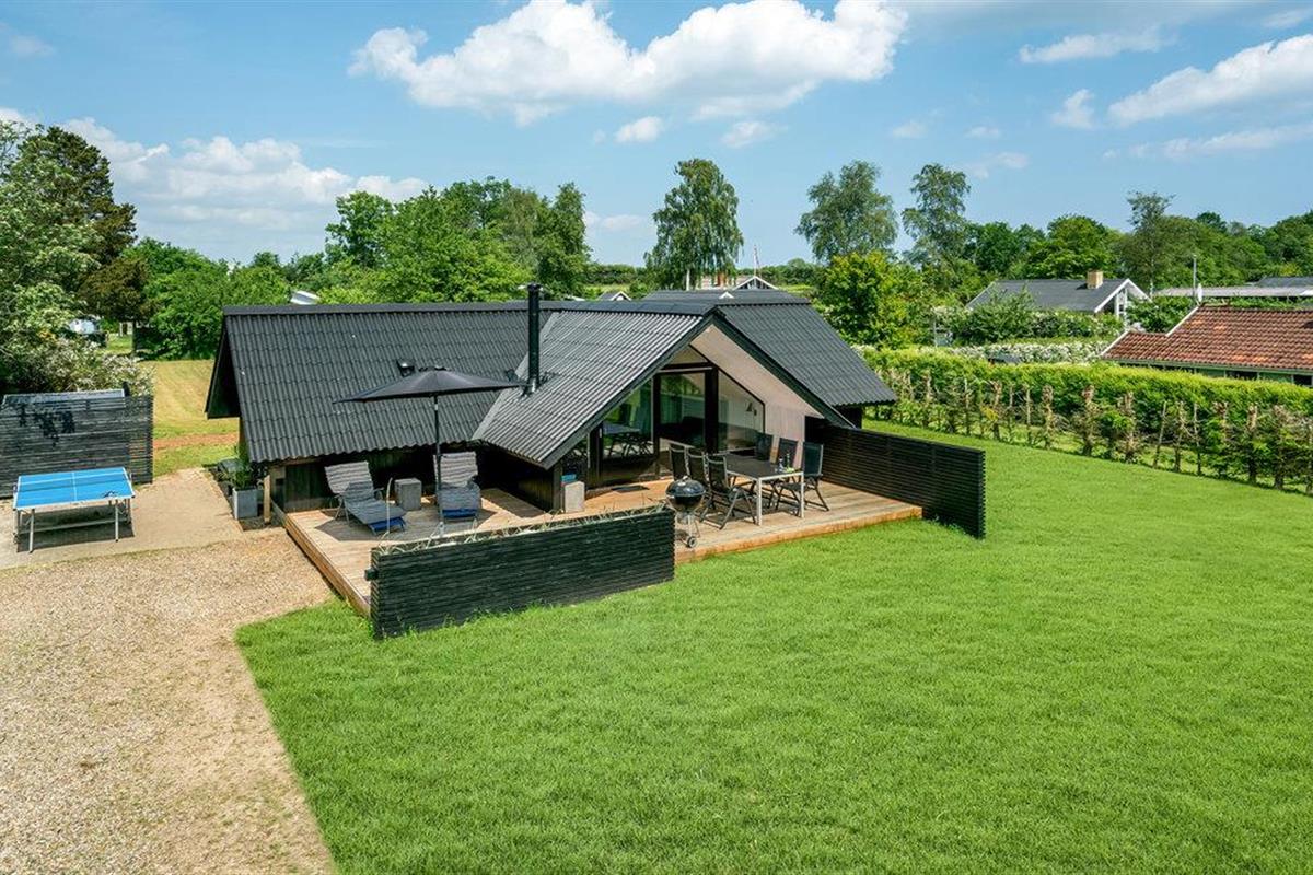 Ruim en modern vakantiehuis in Juelsminde, dichtbij strand en natuur, met tuin en houtkachel voor een gezellige sfeer.