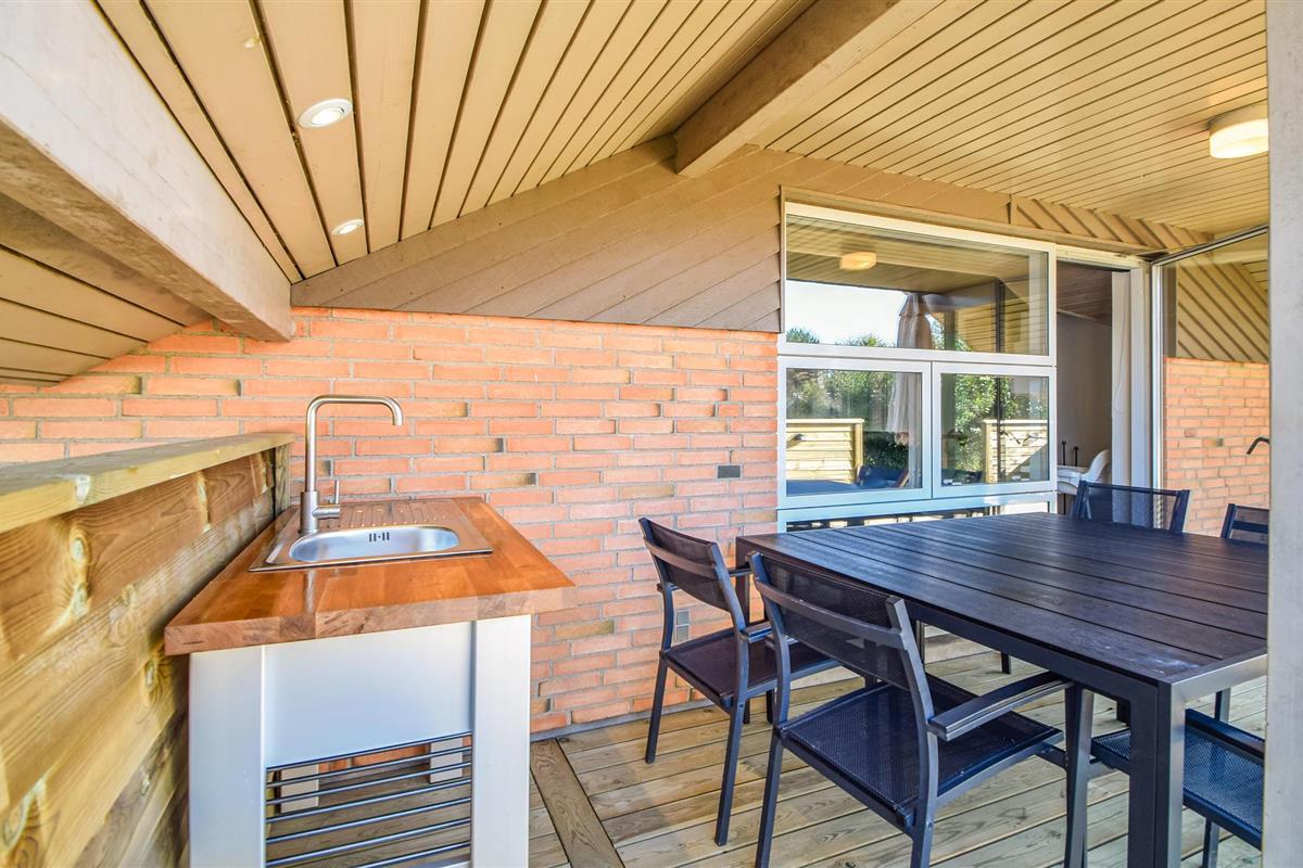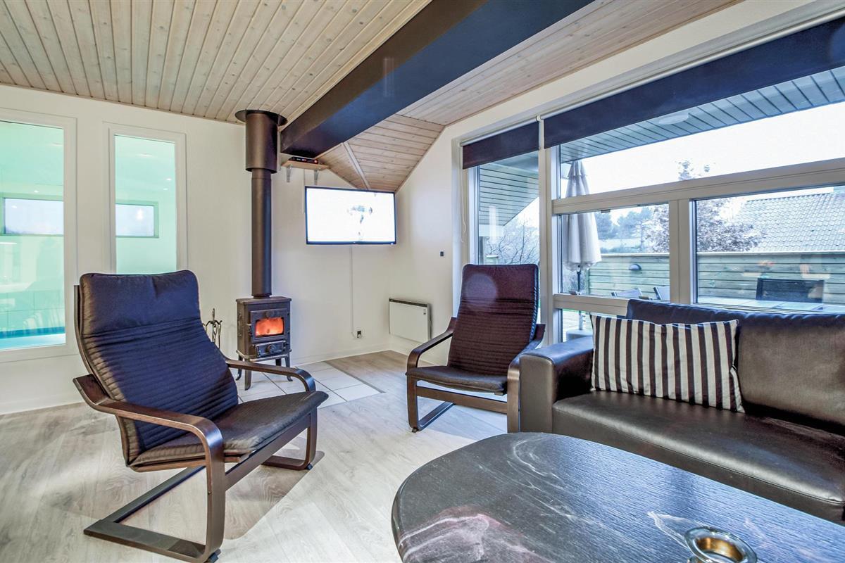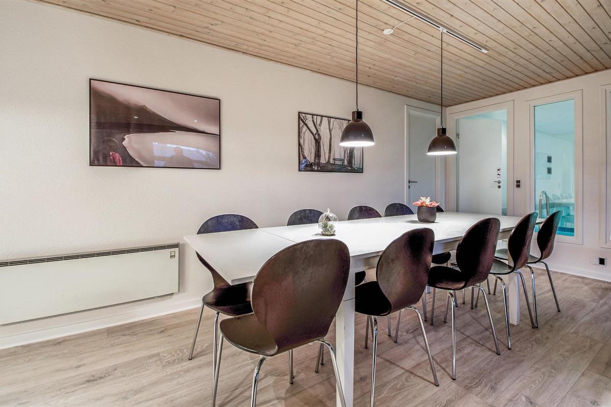 Pøt Strandby ligt beschut en warm in Oost-Jutland en is de perfecte uitvalsbasis voor dagtochten. Neem bijvoorbeeld de veerboot van Snaptun naar de eilanden Endelave en Hjarnø. Het huis en de verzorgde tuin liggen niet ver van het kindvriendelijke strand. De functioneel ingerichte keuken staat open voor de woonkamer, waar een houtkachel en een zithoek voor gezelligheid zorgen. Het overdekte terras en de zwembadkamer zijn gemaakt om te ontspannen. Alle slaapkamers grenzen aan de keuken-woonkamer.