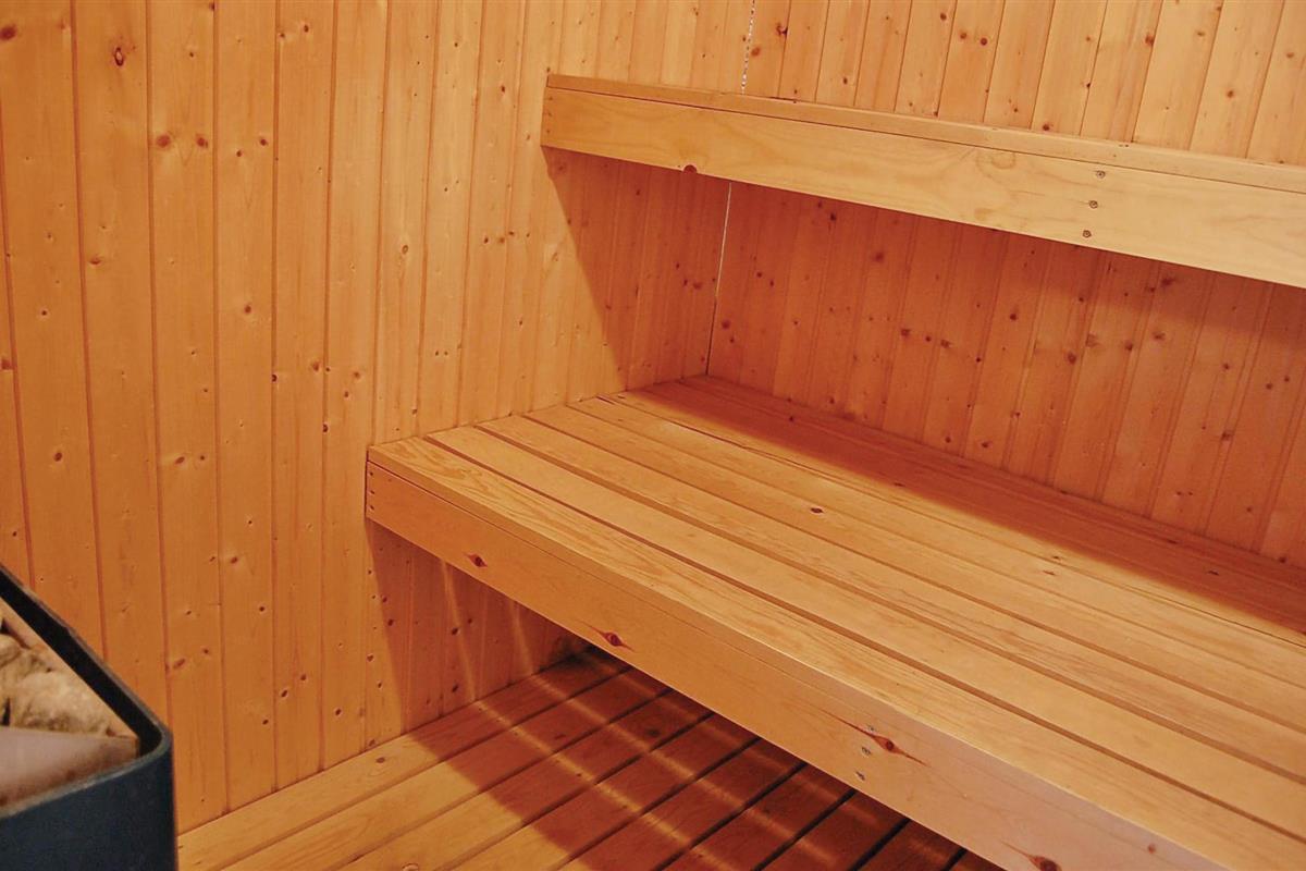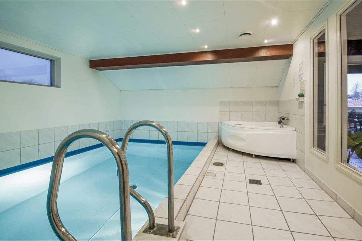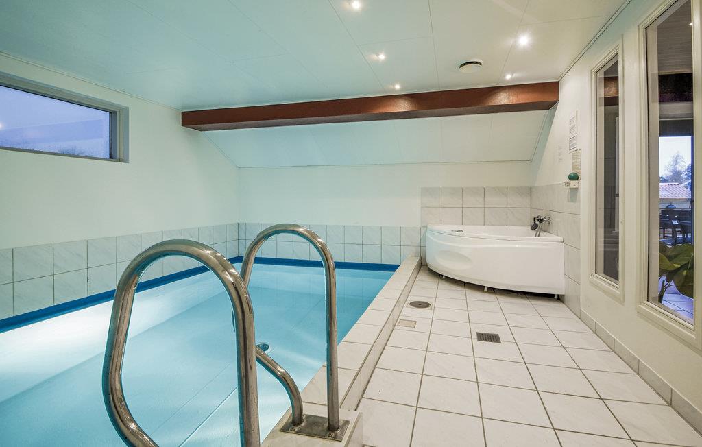 Comfortabel vakantiehuis nabij kindvriendelijk strand met binnenzwembad en sauna voor ontspanning.