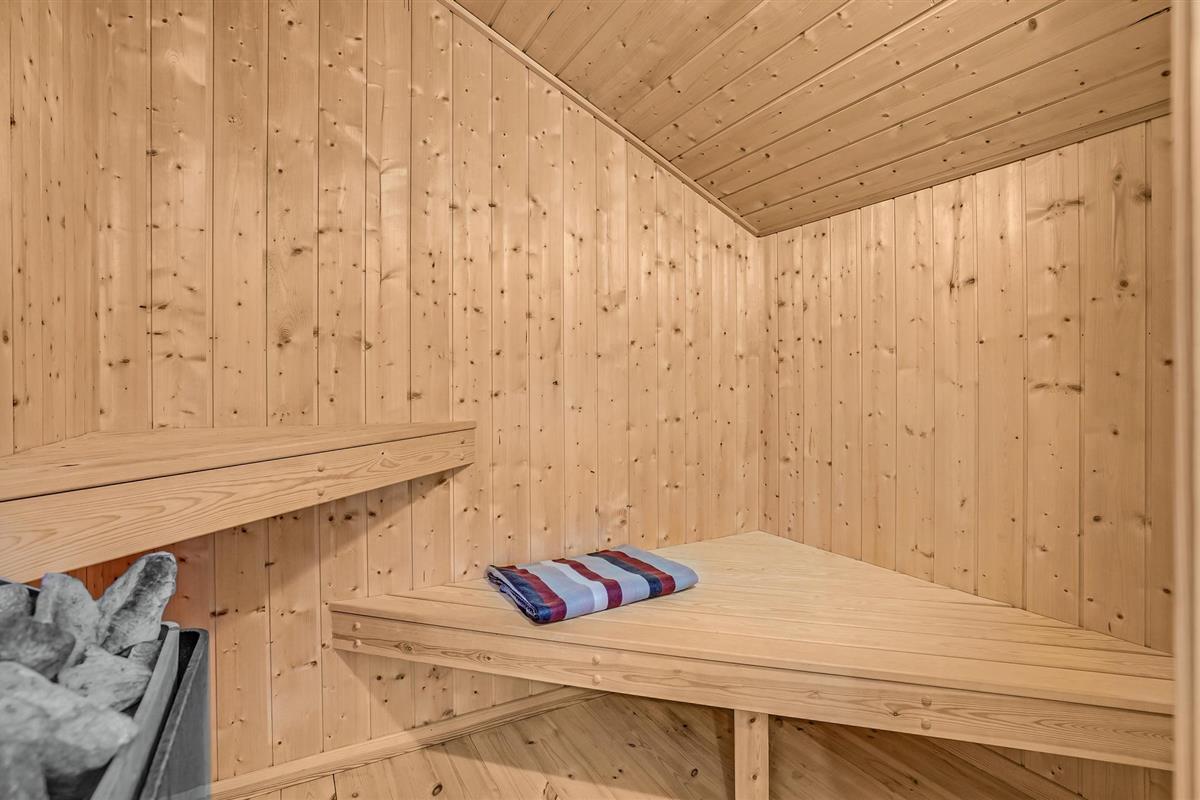Ontspan in dit energiezuinige vakantiehuis met sauna, whirlpool en ruime tuin nabij het strand van Pøt Strandby.