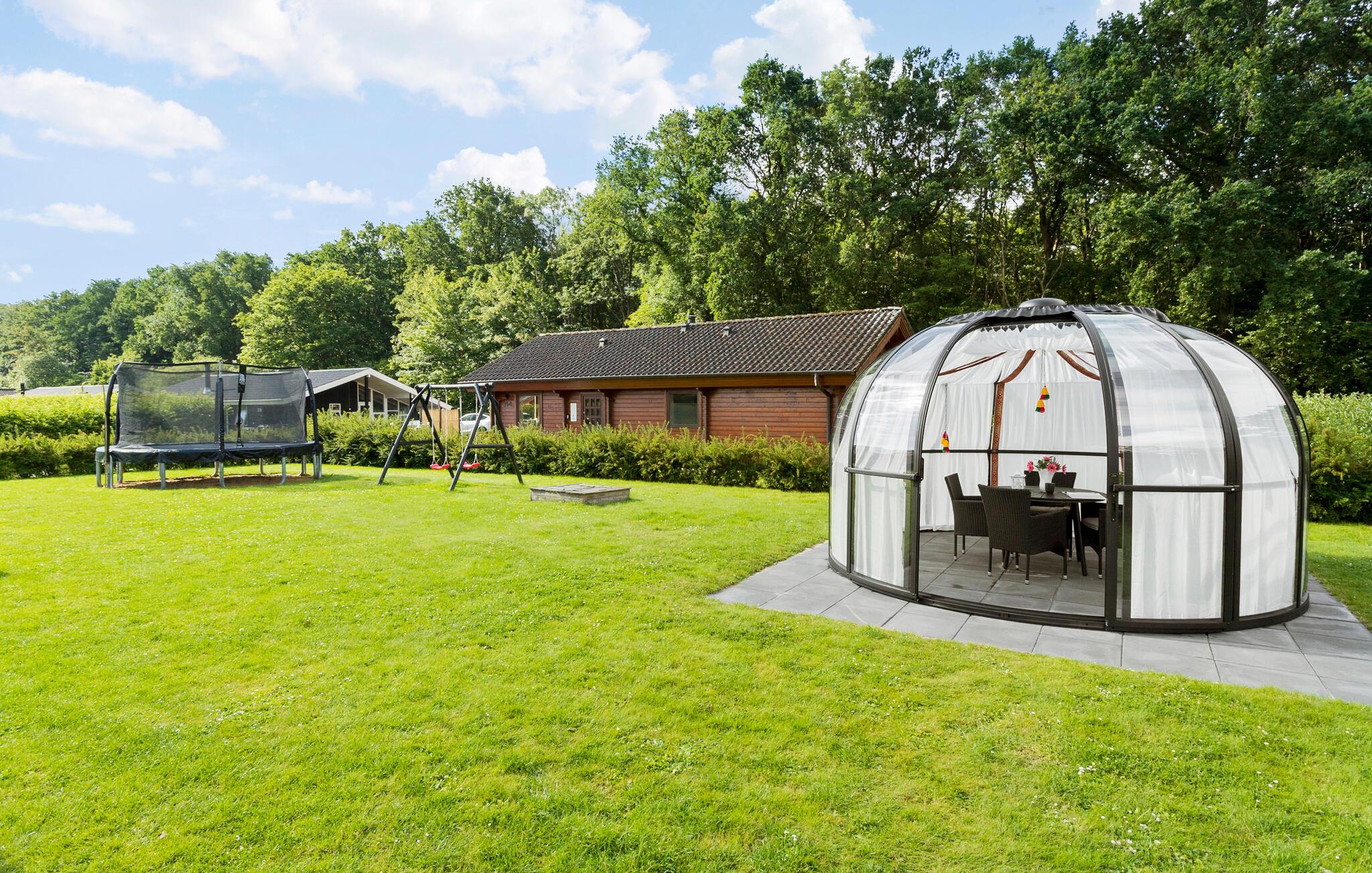 Laat je kinderen springen op de trampoline in de tuin of schommelen op de schommels terwijl jij ontspant op de ligstoelen. Een bijzonder hoogtepunt is de glazen tuinkoepel, die dienst doet als een buitengewone buitenzithoek. Hier kun je genieten van een onbelemmerd uitzicht op het groen, beschermd tegen weer en wind, en gezellige uurtjes doorbrengen in gemoedelijk gezelschap.