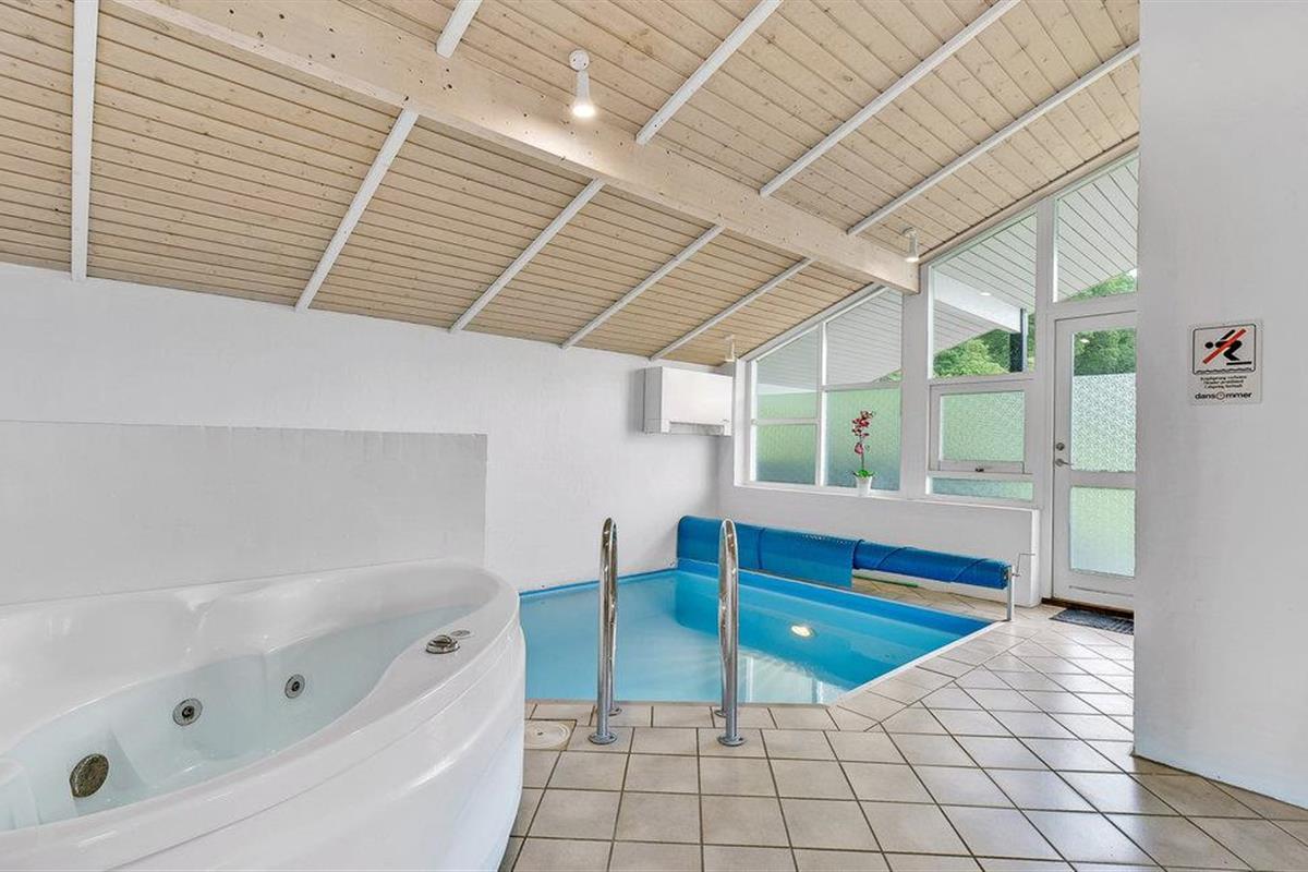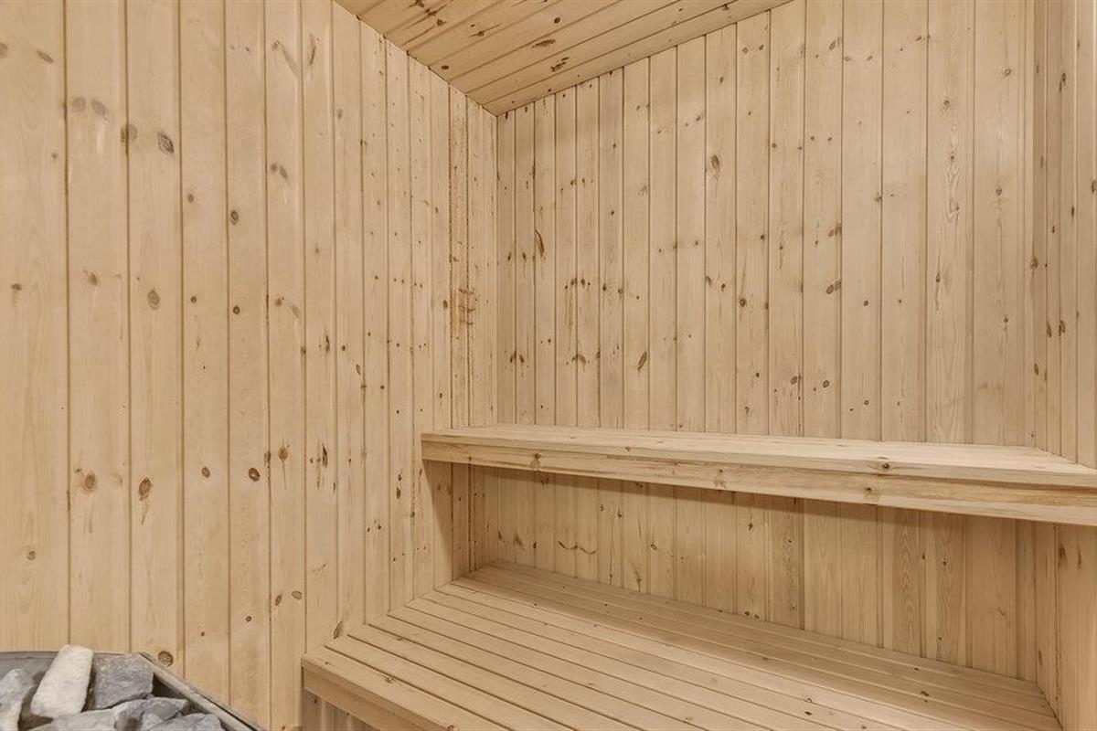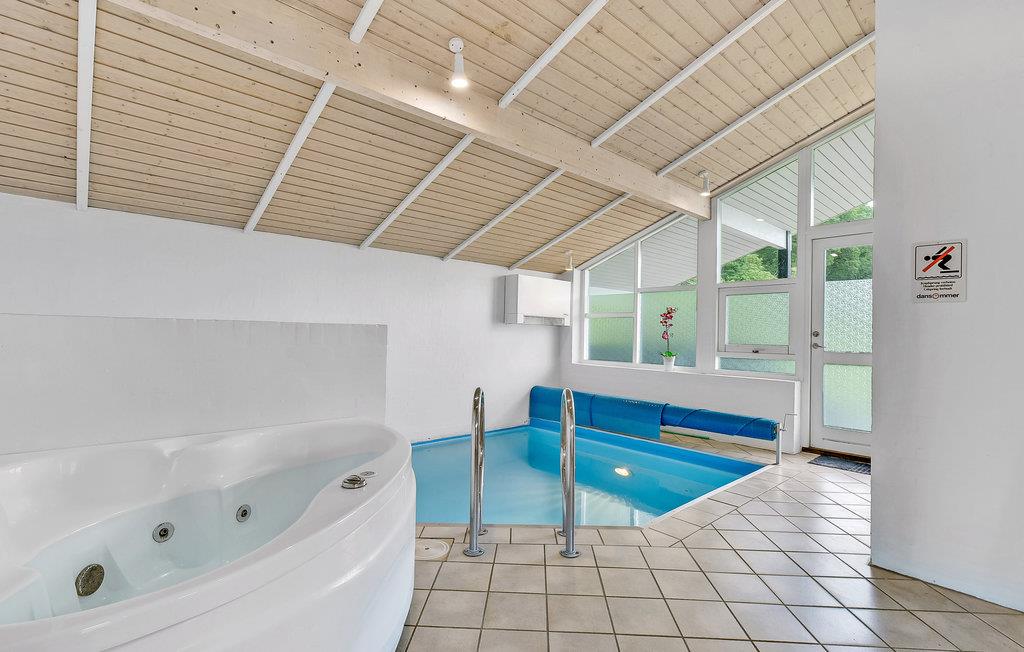 Comfortabel vakantiehuis naast bos met binnenzwembad, sauna en kindvriendelijke faciliteiten nabij kust.