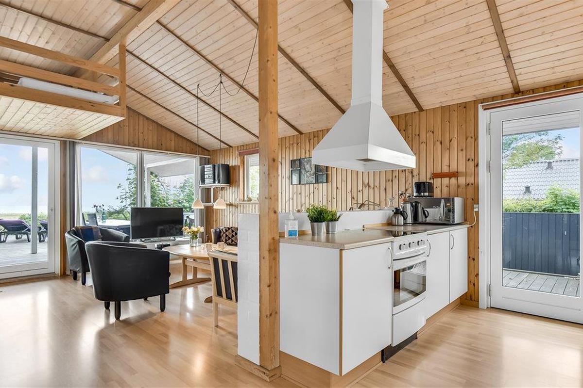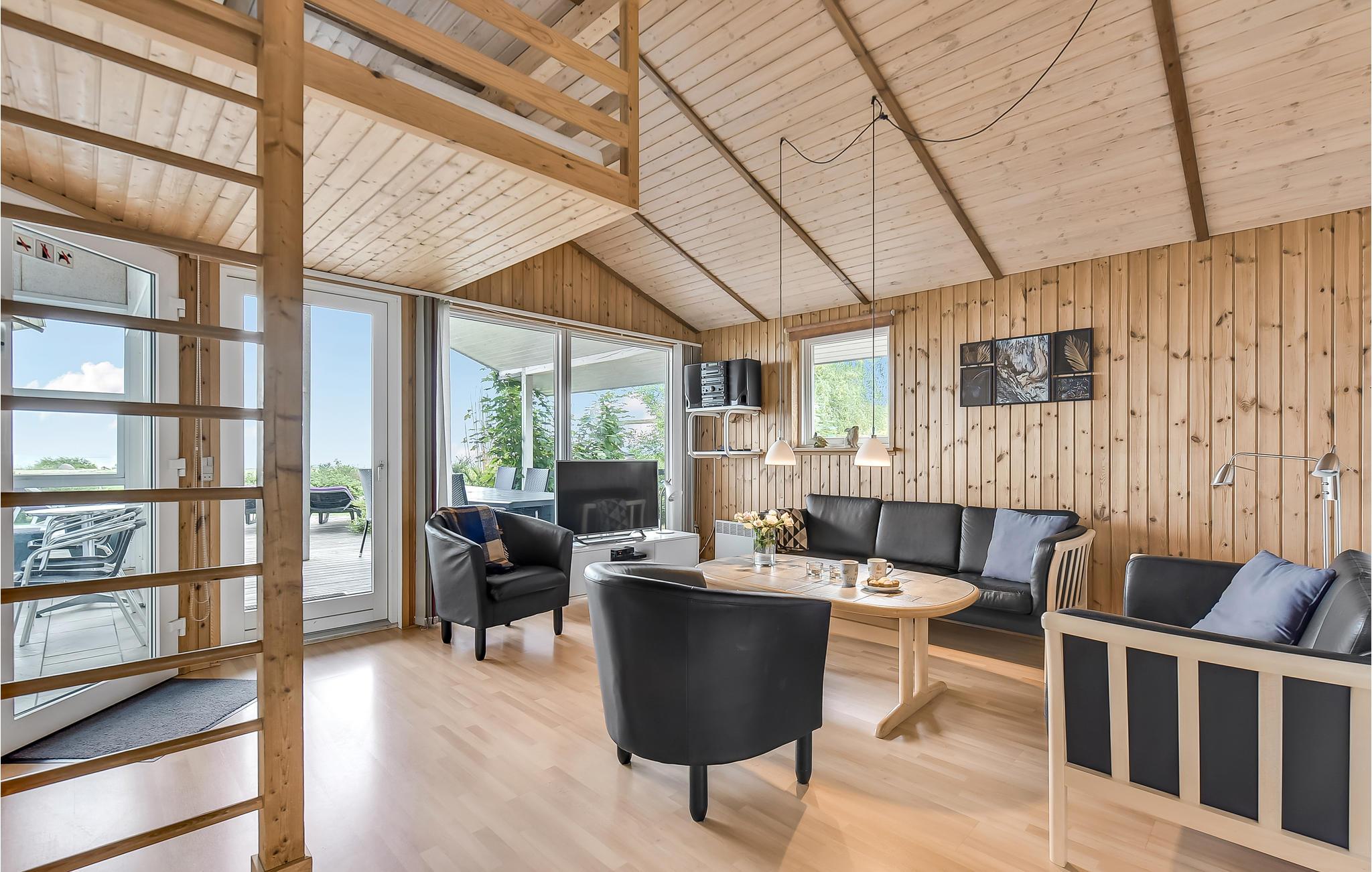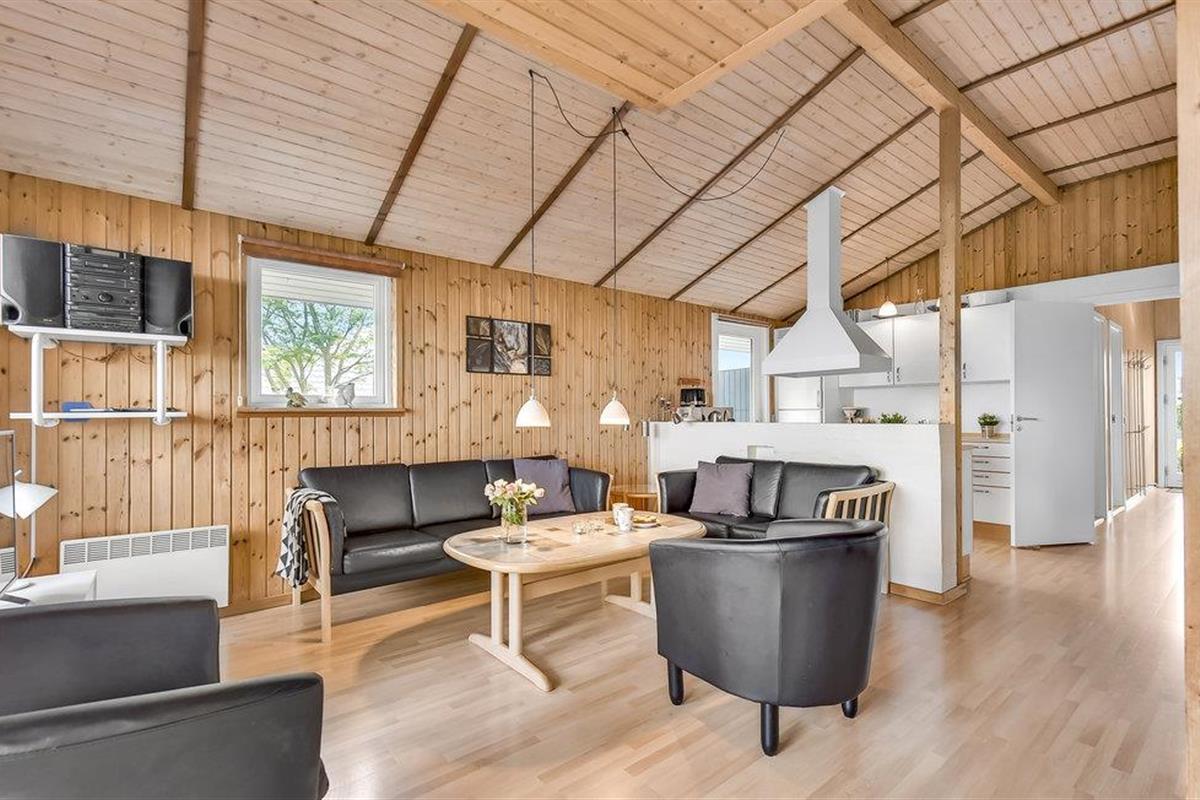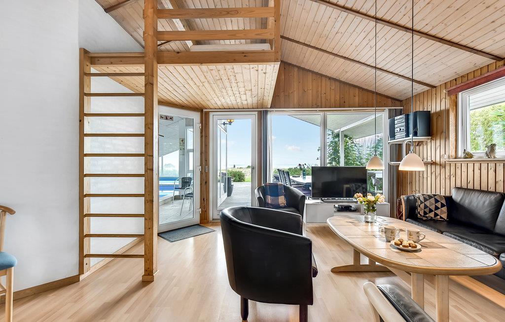 In de eerste rij van Pøt Strand ligt dit mooie vakantiehuis met een groot panoramisch uitzicht op de zee, zowel in de zwembadkamer als in de woonkamer.