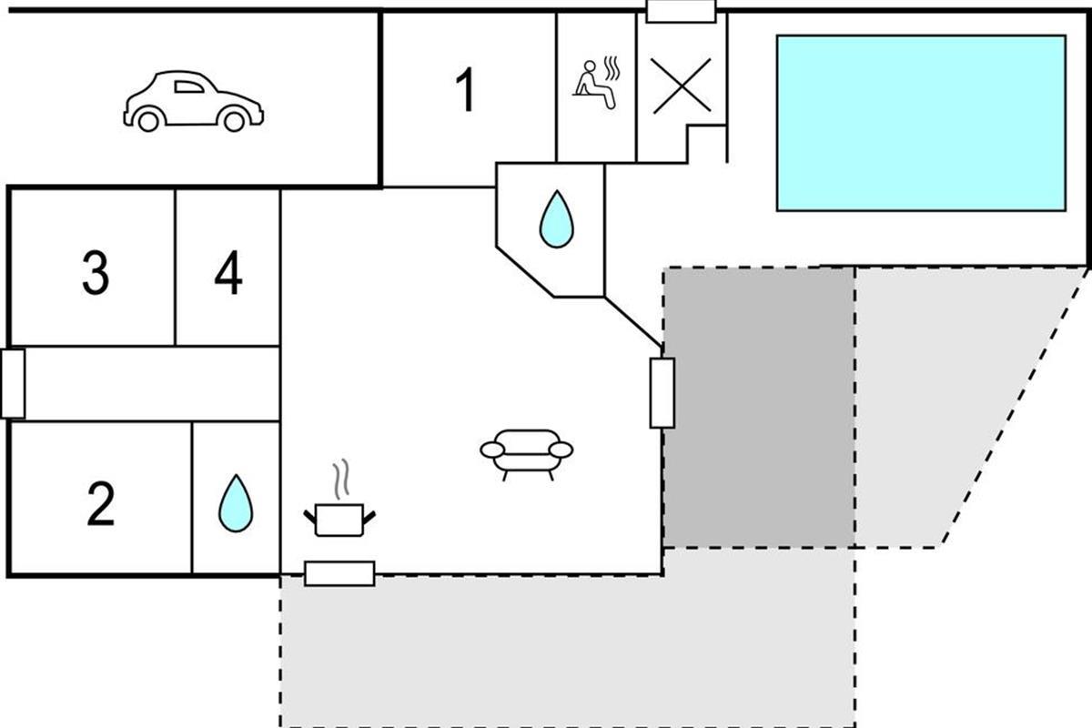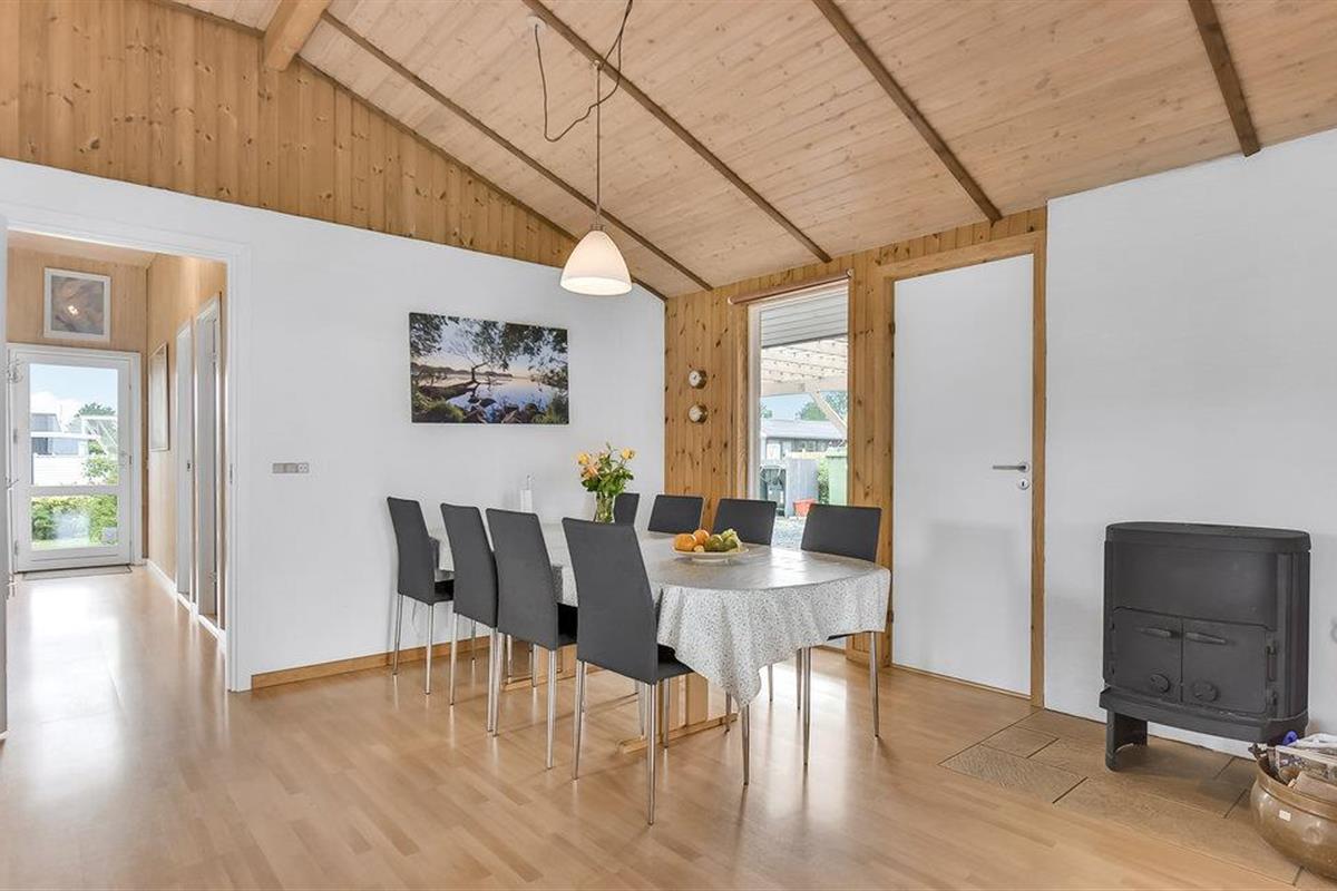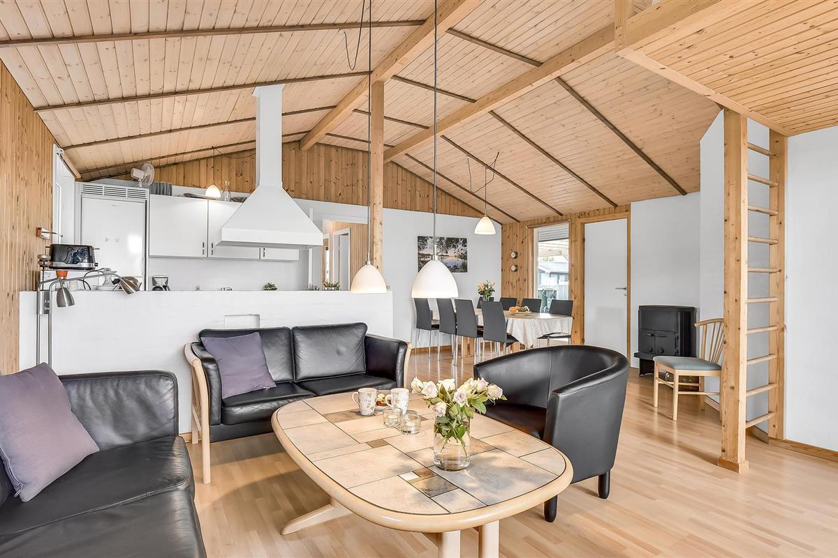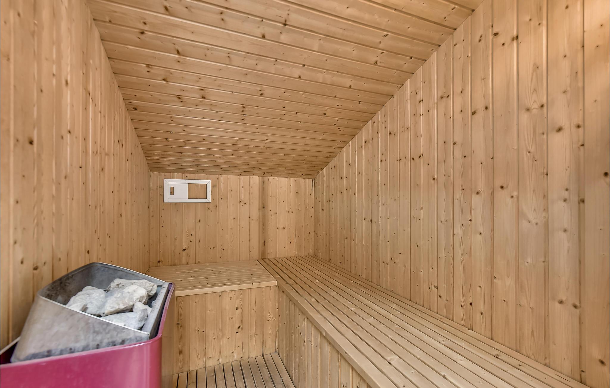 De keuken en woonkamer is licht en vriendelijk met een schuin plafond en is uitgerust met een gezellige houtkachel. Het huis heeft twee mooie badkamers en een sauna. Het zwembad nodigt uit tot een heerlijke duik, gevolgd door ontspanning in de sauna.