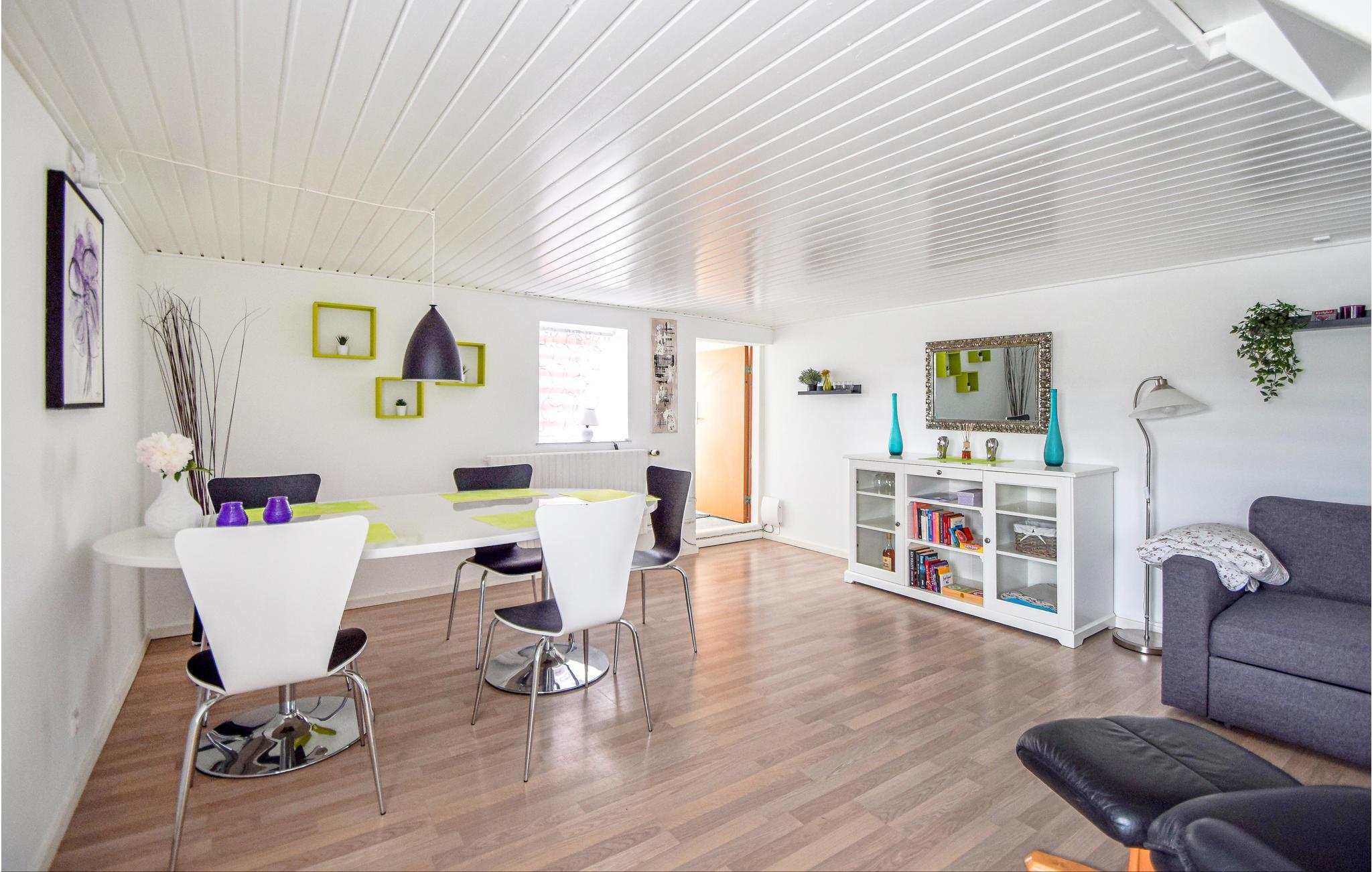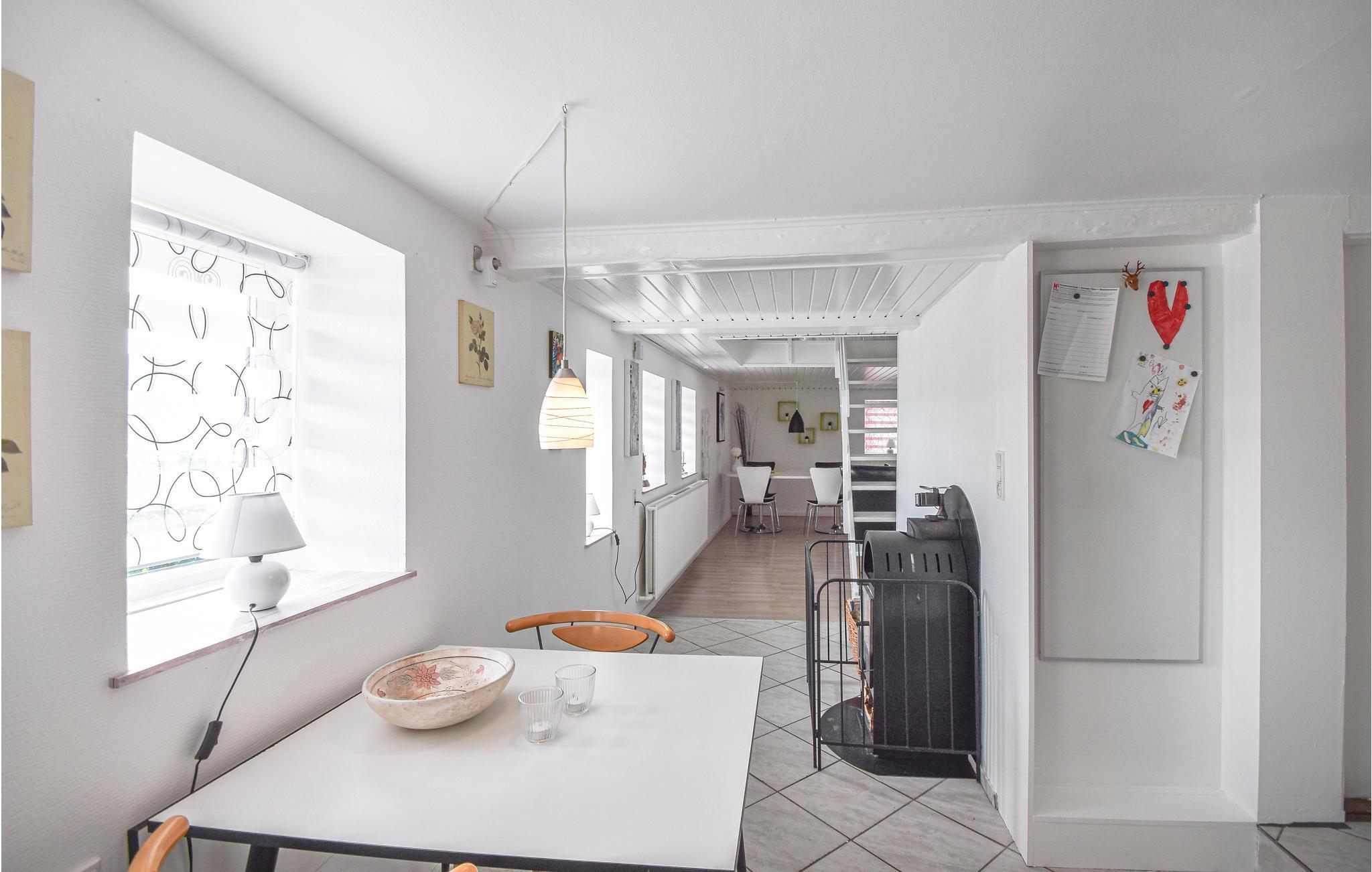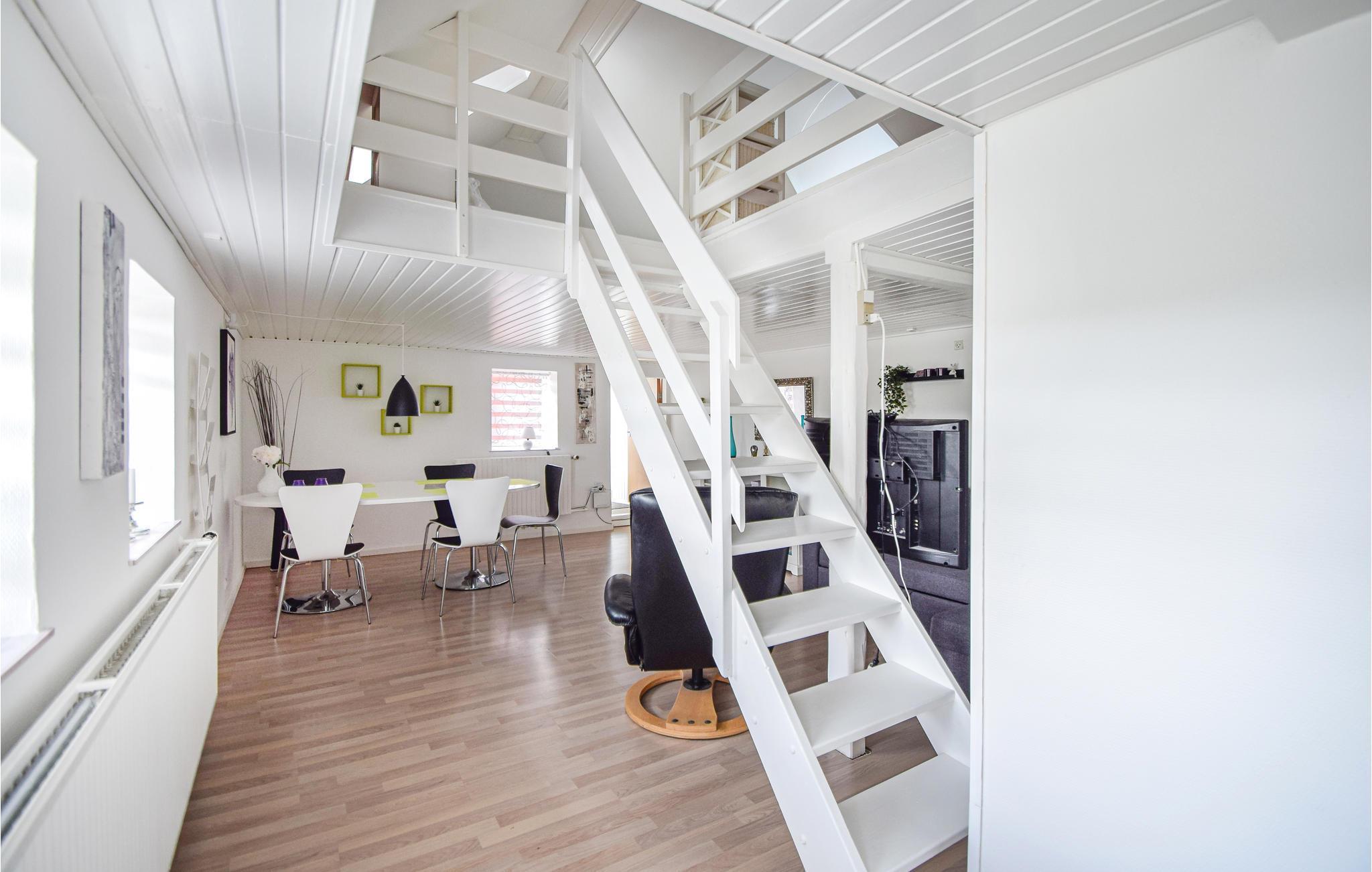 Het huis is mooi ingericht met een goede eethoek, een lekkere zithoek en een grote keuken die open staat voor de woonkamer. In de kleine woonkamer kunt u zitten, boeken lezen of spelen en kletsen met de familie als het regent. Er zijn zichtbare balken in het huis en lage plafonds. Op de begane grond is de slaapkamer (lage plafondhoogte) en de mooie badkamer met groot bad, ook met lage plafondhoogte. Bovenaan de trap (met leuning) zijn er nog 2 slaapplaatsen op de zolder, deze is ingericht met een groot tweepersoonsbed en er is plaats voor 2 volwassenen en een klein kind in een kinderbedje. Er is natuurlijk internet in het huis, evenals Scandinavische en Duitse tv-zenders.