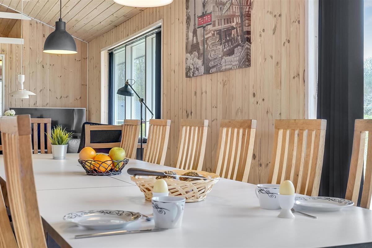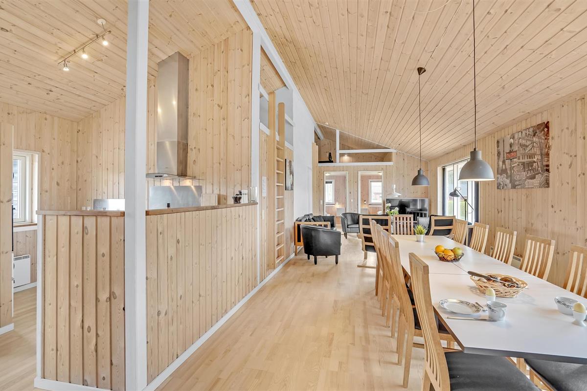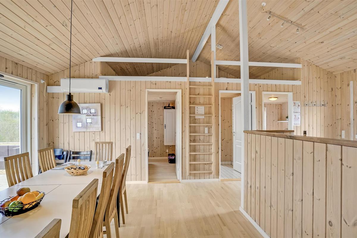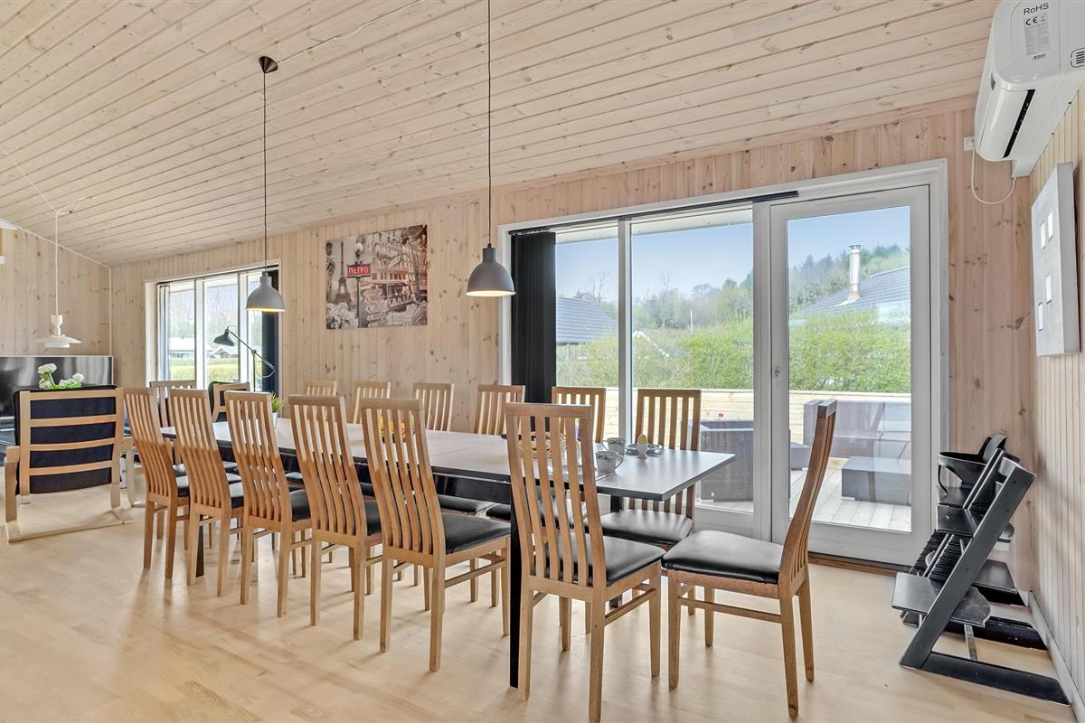 Een perfect vakantiehuis voor gezinnen of een groep vrienden. Het huis heeft een mooi formaat en ligt in een ontspannend recreatiegebied. Jong en oud zullen zich zeker uren vermaken in en rond het zwembad. Drie slaapzolders zorgen ervoor dat de kinderen of tieners hun eigen koninkrijkje kunnen inrichten zonder ver weg te zijn van de rest van de familie. De zolders kijken uit over bijna de hele woonkamer. Naast de slaapplaatsen op de zomen heeft het huis goede matrassen in de slaapkamers. In de omgeving is altijd wat te doen, bijvoorbeeld in het charmante Juelsminde, dat op 15 minuten rijden ligt. Op korte afstand heeft u ook een golfbaan, vismeer, bos en strand. Het kinderparadijs Legoland ligt op minder dan een uur rijden. In 25 minuten bereikt u Horsens, waar u kunt winkelen, musea en restaurants kunt bezoeken.