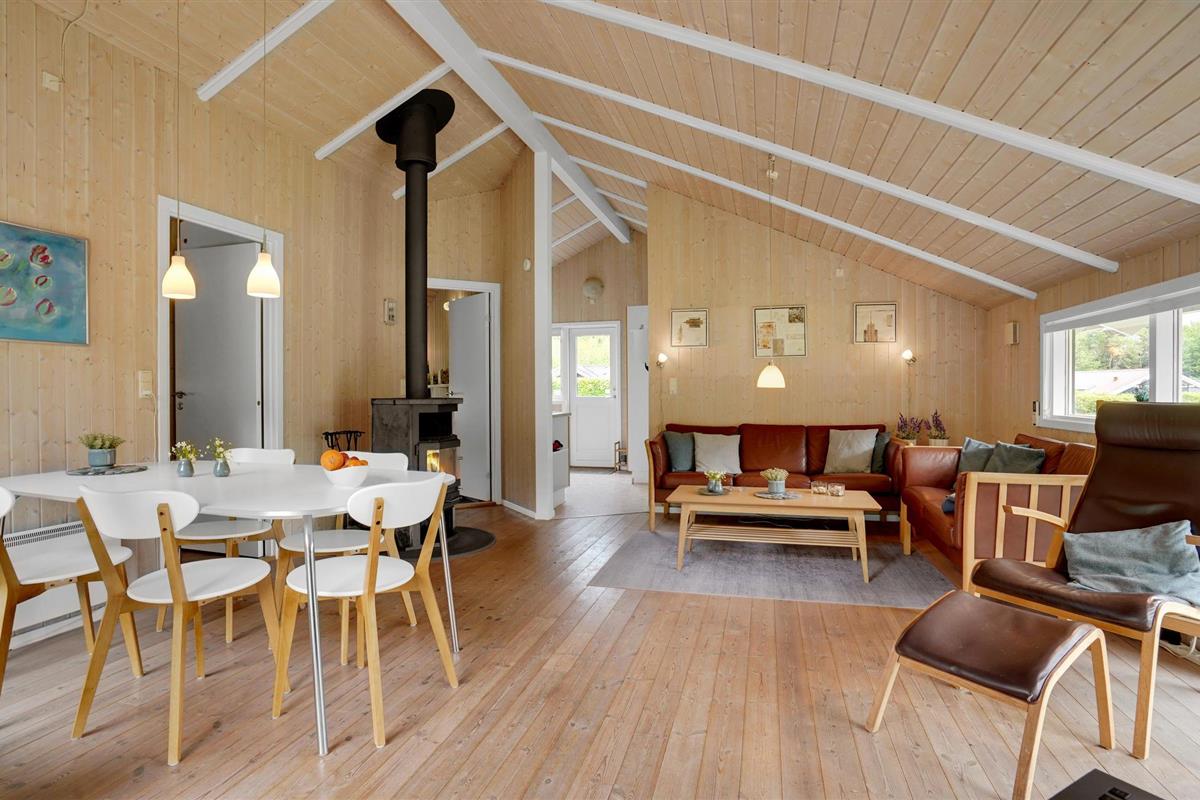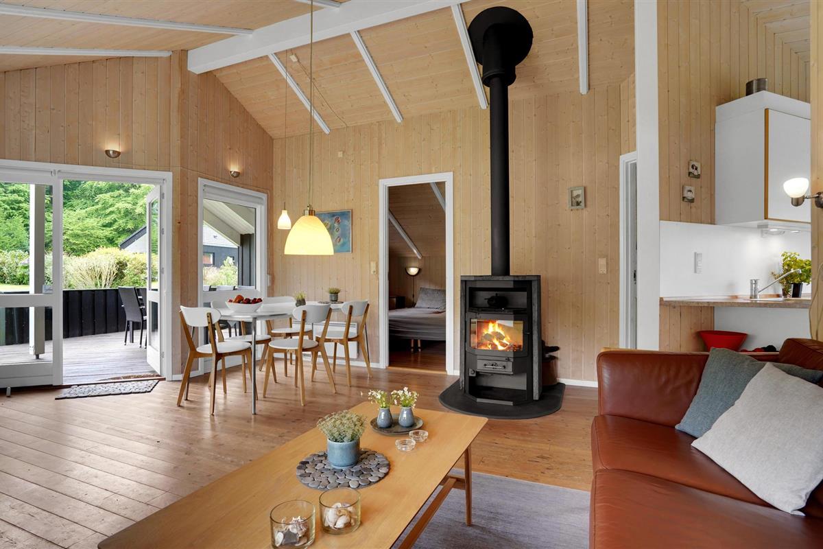 Goed ingericht vakantiehuis op slechts 200 m van de zee. In het seizoen heeft u een zwembrug tot uw beschikking. U beschikt over een goed terras, waarvan een deel overdekt is, zodat u bijna zonder aan het weer te denken van het buitenleven kunt genieten. De omgeving biedt een zeer gevarieerde natuur met bos, strand en open landschap. Er zijn hier goede fietspaden, en neem de kleine veerboot naar Hjarnö met uw excursiemandje. Het eiland is niet groter en zelfs kleinere kinderen kunnen langs de hele rand fietsen. Er zijn veel goede musea in de omgeving van Juelsminde, en in het zomerseizoen zijn er vaak actieve workshops in het kleine maar charmante Glud Museum. Niet ver van het huis ligt het stadje Juelsminde, hier kunt u genieten van de sfeervolle jachthaven, en als u een grotere stad wilt zien, heeft Horsens een ruim aanbod aan restaurants, musea en culturele activiteiten. Binnen een uur rijden van het huis vindt u de favoriete bestemmingen van de kinderen, Legoland en het Leeuwenpark.
