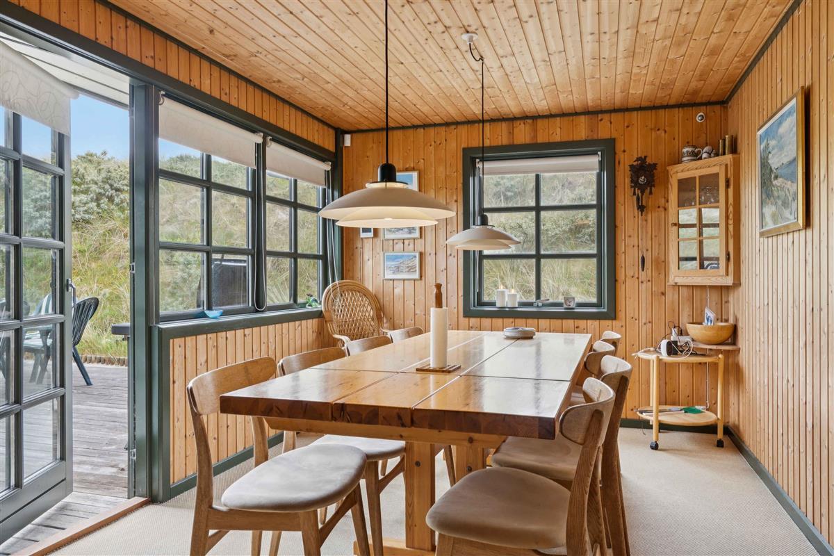 Ouder vakantiehuis in een rustige omgeving met een gezellige sfeer en een bijzondere ambiance. Als je op zoek bent naar een plek waar je volledig tot rust kunt komen en tegelijkertijd dicht bij het water wilt zijn – dan is dit huis echt iets voor jou/jullie. Het huis is wat ouder, maar is geleidelijk aan gemoderniseerd met o.a. draadloos internet, streaming-tv, vaatwasser, wasmachine en droger. Daardoor oogt het toch modern. Het huis biedt slaapplaats aan 9 personen (waarvan 2 geschikt voor grotere kinderen of kleinere volwassenen). Huisdieren zijn van harte welkom. Er is een garage bij het huis. volop gelegenheid om van de natuur te genieten slechts 5-10 minuten lopen van het strand grote zonnige terrassen met goede beschutting tegen de wind Wie wat stadse gezelligheid wil, wandelt in 3 mooie kilometers langs de Noordzee naar Blokhus. Alternatief: 5 km fietsen door het bosrijke duingebied. Met de auto is het 9,5 km naar Blokhus. In het huis zijn oudere fietsen beschikbaar en er zijn mooie fietsroutes in de omgeving. Het huis ligt tussen Blokhus en Rødhus.