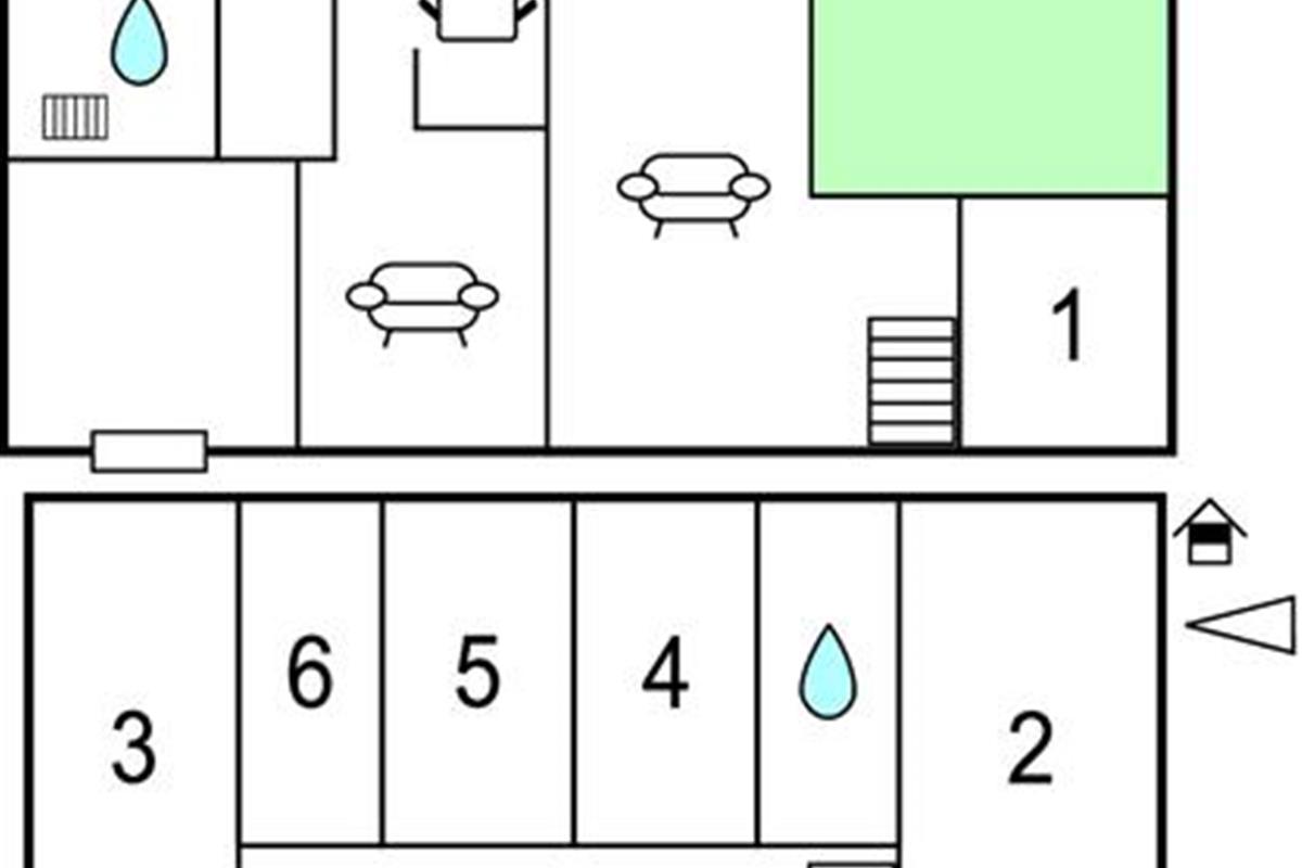 Slaapkamer (nr. 6) - 2 Slaapplaatsen. (1-persoonsbed(den)).