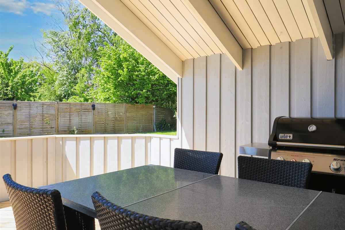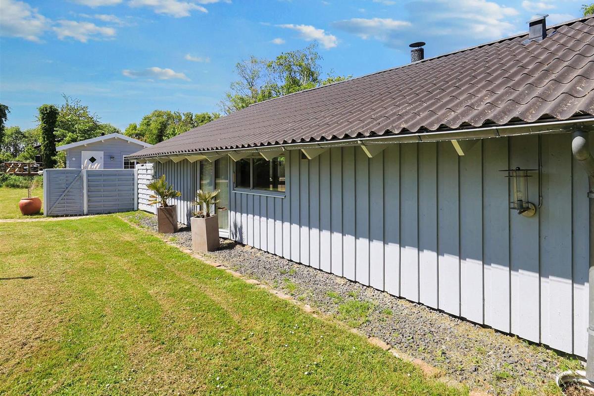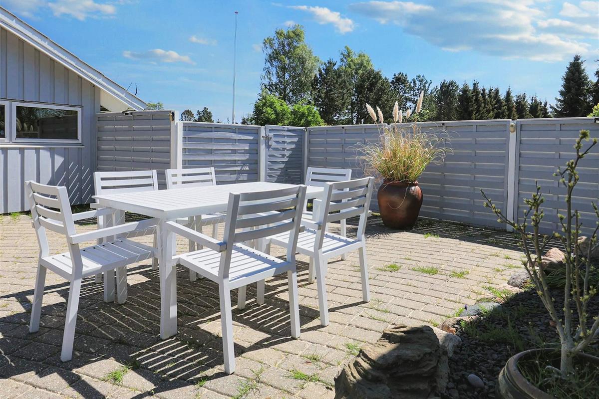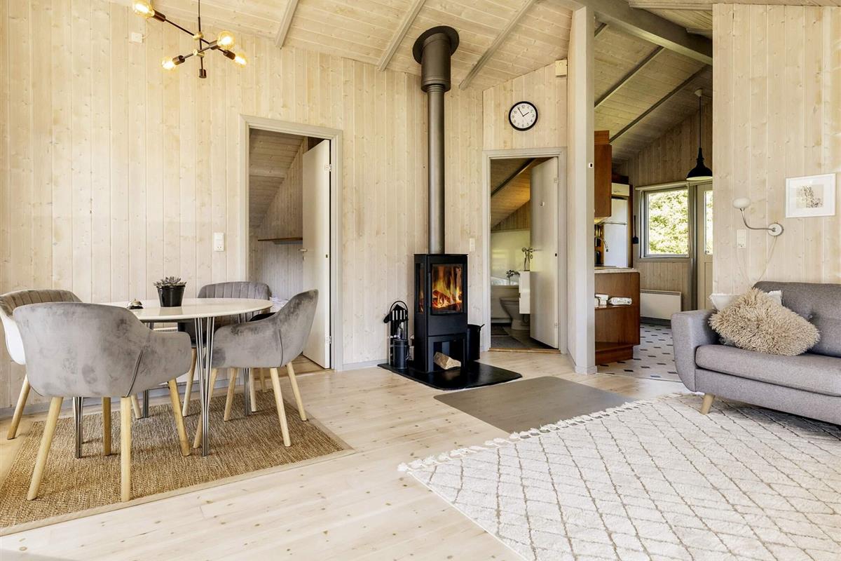 Vom Wohnzimmer aus hat man direkten Zugang zu einer großen, teilweise überdachten Holzterrasse und dem schönsten, geschlossenen Innenhof mit einem runden Swimmingpool mit 6 m Durchmesser und einem Whirlpool im Freien. Der Pool ist unbeheizt und steht im Zeitraum 01.06. - 31.08. zur Nutzung bereit. Im Poolbereich neben der Terrasse finden Sie auch den Grill. Nach Præstø, das Gemütlichkeit und Charme ausstrahlt, sind es nur knapp 6 km.