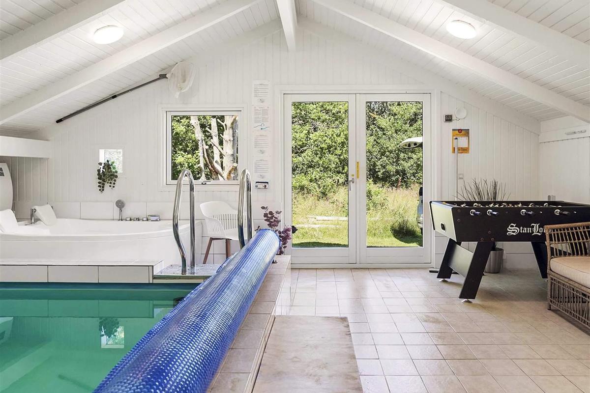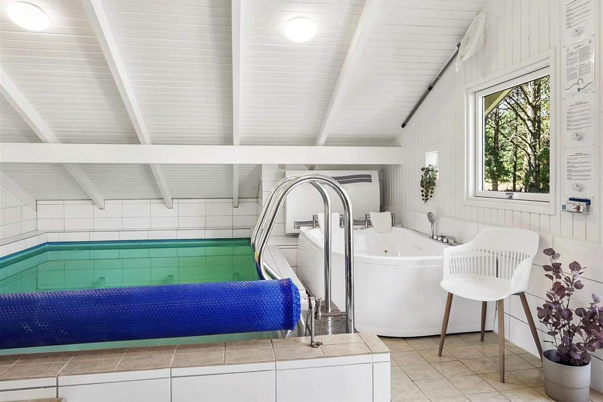 Der Poolraum verfügt über einen Pool, einen Whirlpool für zwei Personen, eine Waschmaschine mit Trockner und eine Lounge für eine angenehme Atmosphäre. Eine moderne Luft-/Wasser-Wärmepumpe und eine Niedrigenergiepumpe für den Pool sorgen für einen sinnvollen Energieeinsatz und minimieren die Kosten, ebenso wie eine kombinierte Waschmaschine/Trockner.