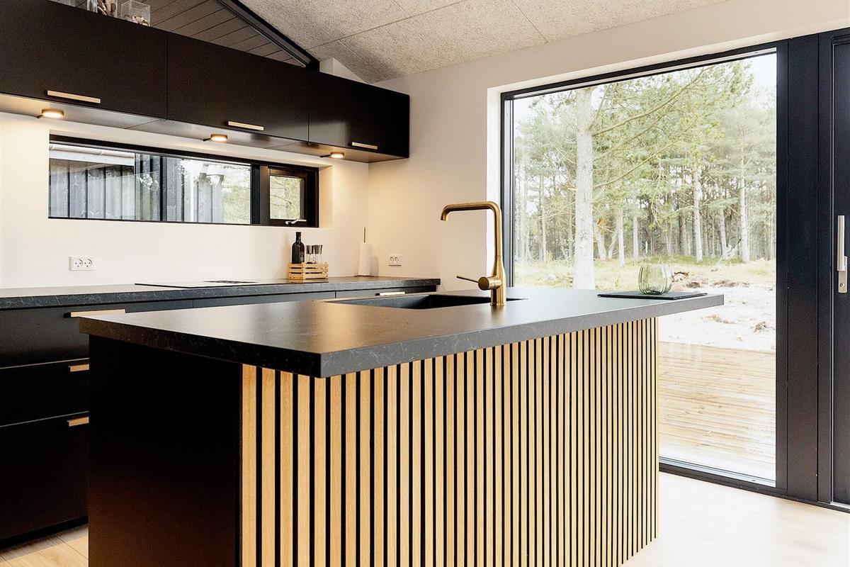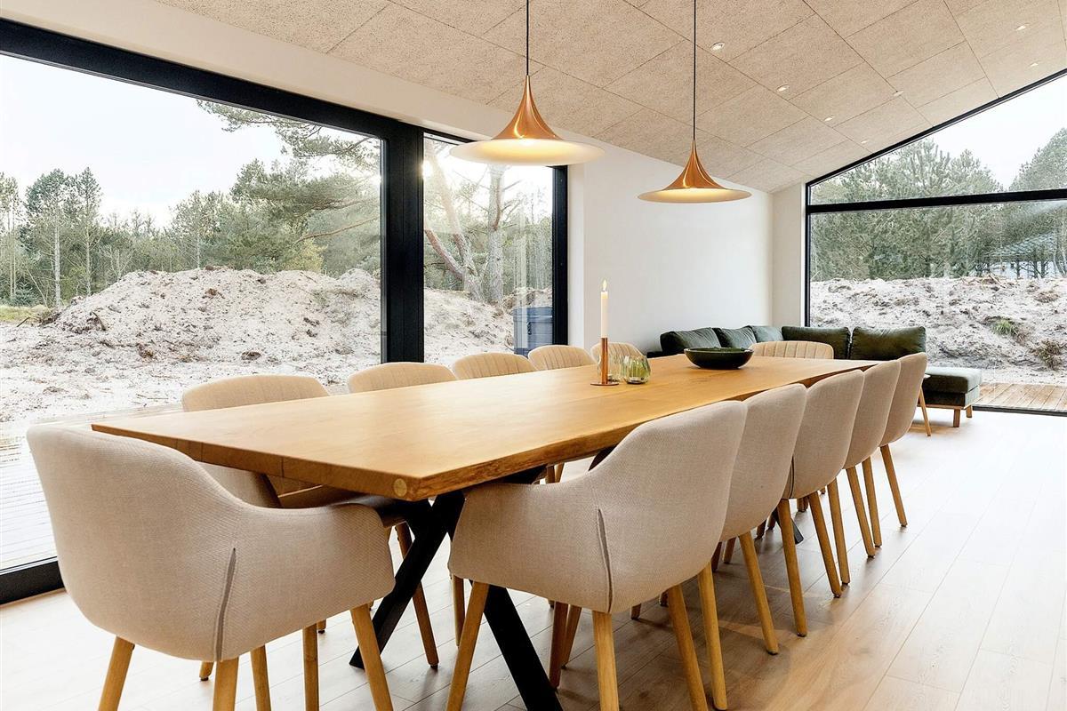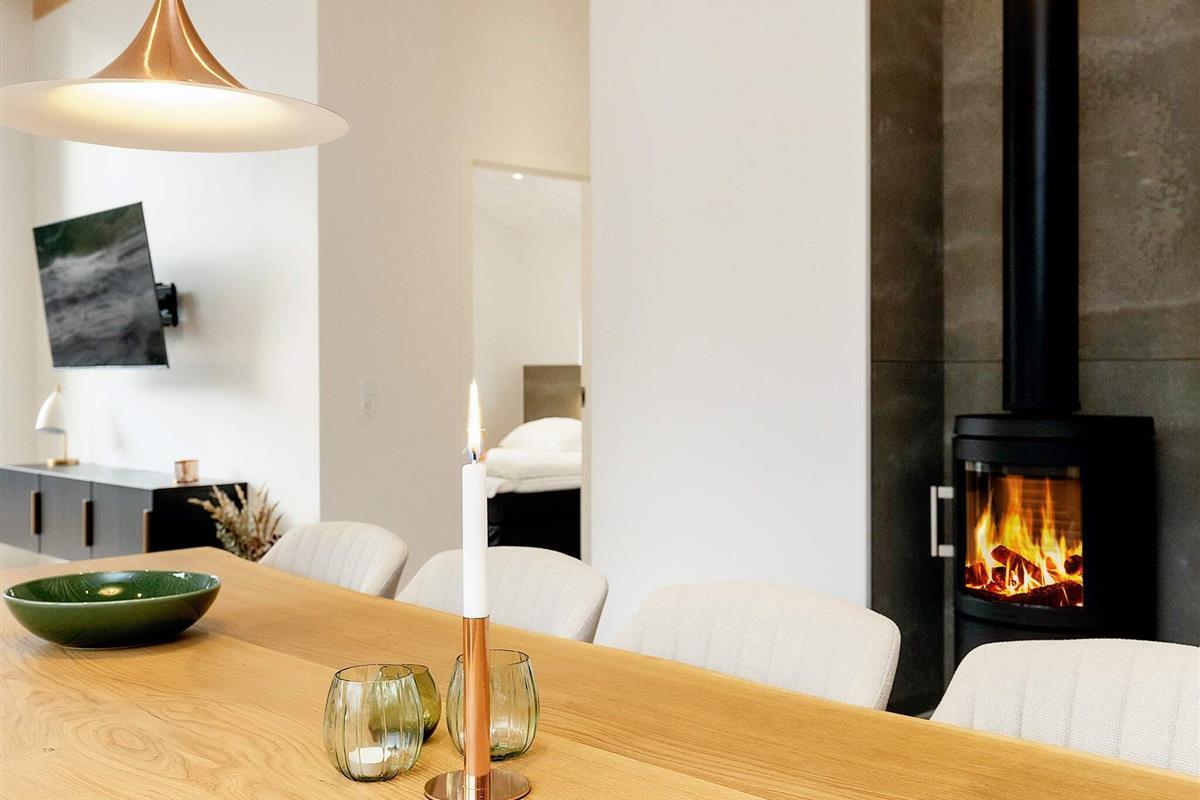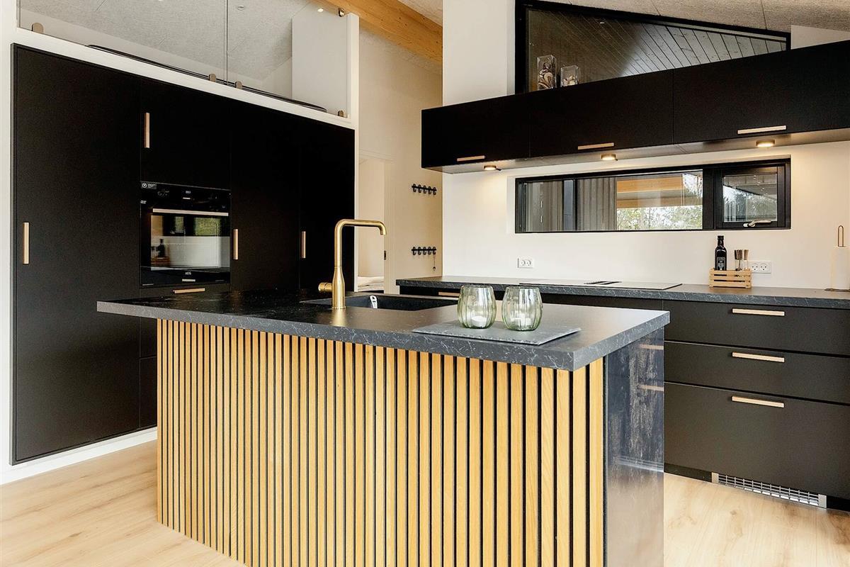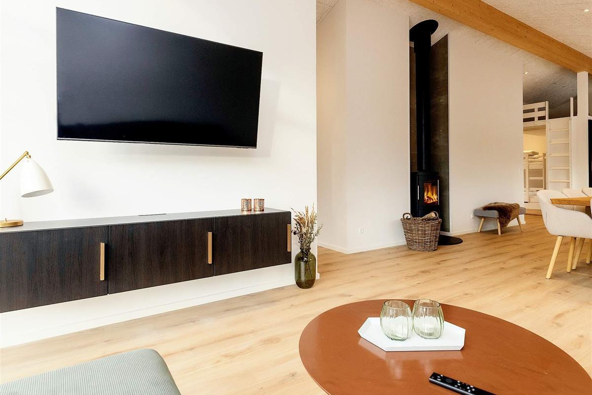 Küche, Esszimmer und Wohnzimmer sind zu einem langen Raum zusammengefasst. Von der gut ausgestatteten Küche aus haben Sie einen guten Überblick über die Aktivitäten der Familie. Der schöne Gemeinschaftsraum ist der ideale Ort, um Ihren Urlaub bei einem Brettspiel oder einem guten Buch zu genießen.