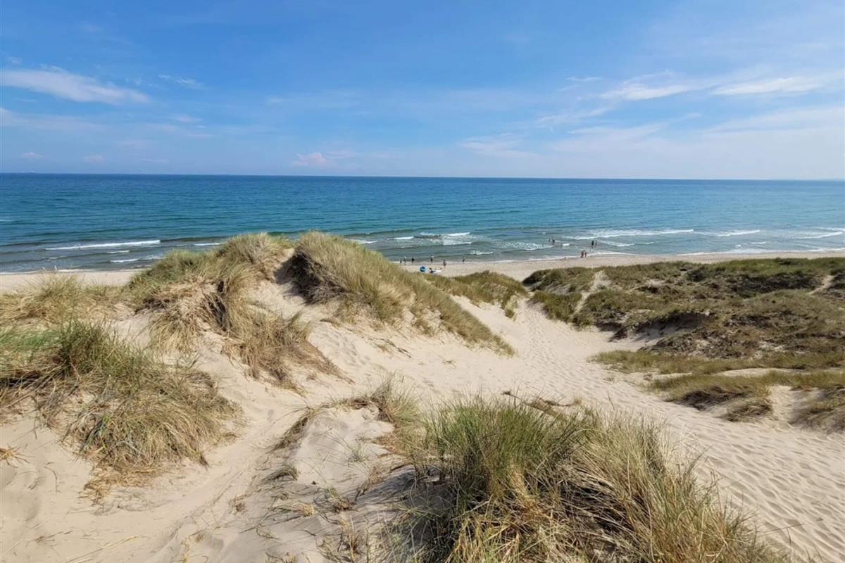 Das Ferienhaus liegt im beliebten Ferienhausgebiet Bunken zwischen Skagen und Ålbæk an der Ostküste Nordjütlands, etwa 1 km von einem der schönsten, unberührtesten und kinderfreundlichsten weißen Sandstrände Dänemarks entfernt.