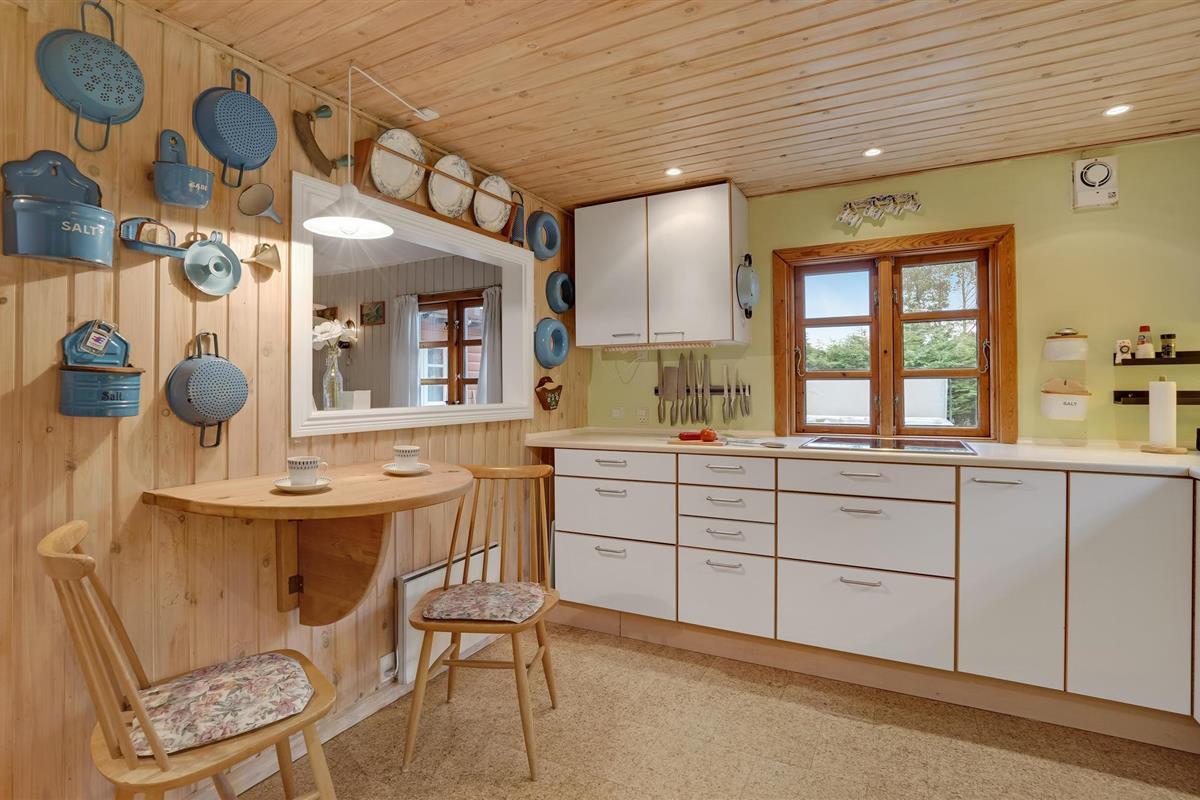 Aan de zuidkust van het eiland Møn verwelkomt dit charmante vakantiehuis u in het rustige dorpje Råbylille. Hier krijgt u een licht, liefdevol ingericht interieur en een gezellige, ontspannen sfeer waardoor u zich thuis zult voelen. Bij mooi weer kunt u zich terugtrekken op het terras en buiten van uw maaltijden genieten. Breng overdag ontspannende uren door op het terras terwijl uw kinderen en viervoeters op het groene terrein spelen.