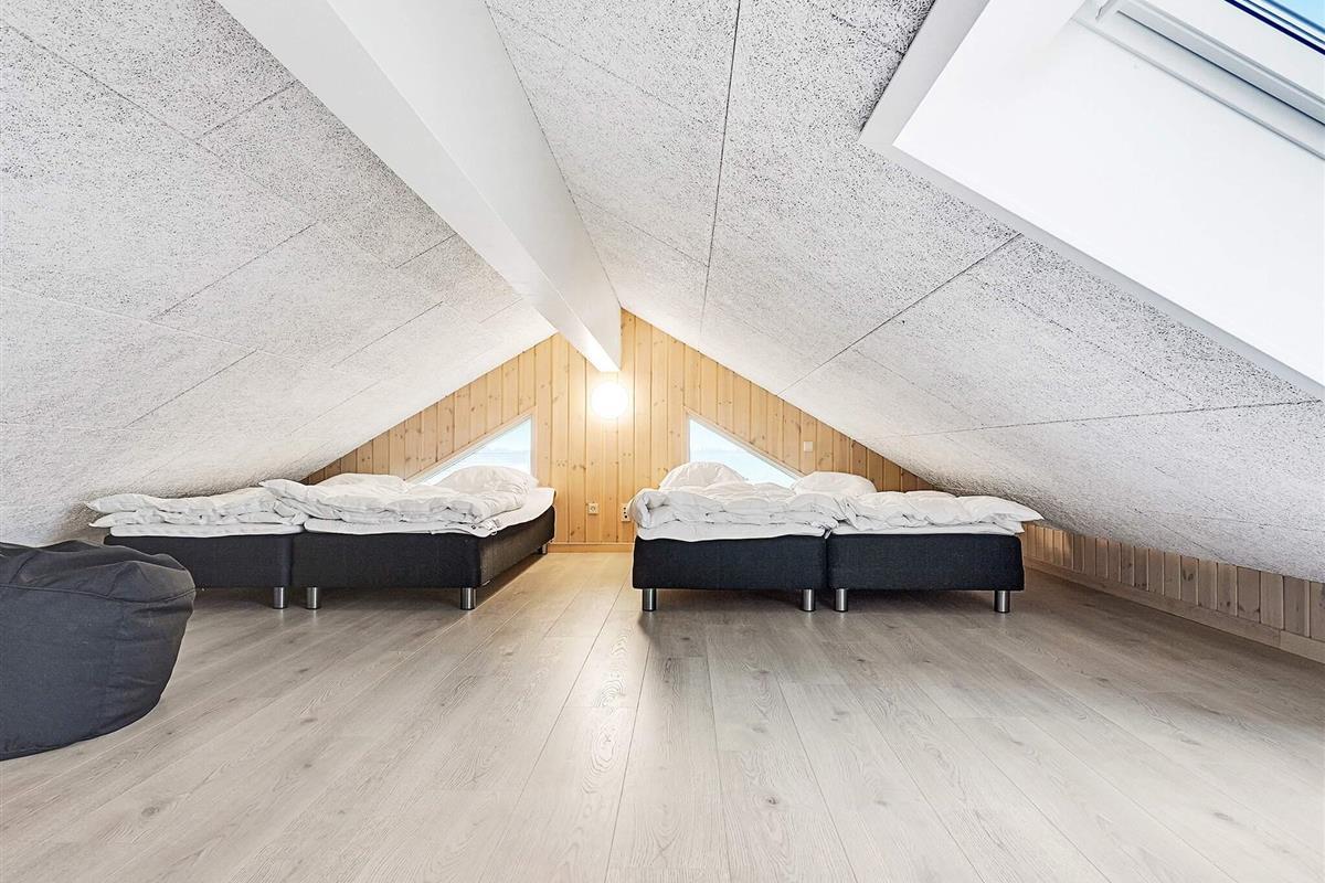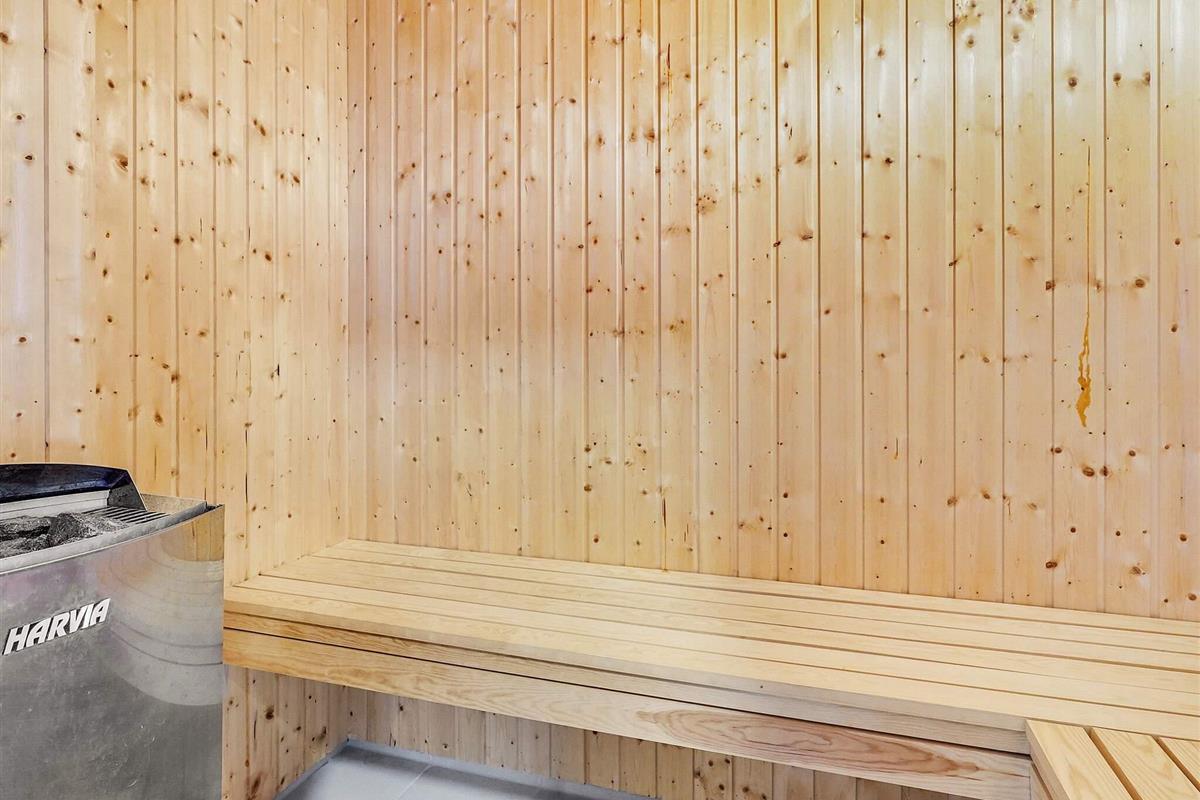 Es gibt drei separate Schlafbereiche im Haus, jeder Bereich verfügt über ein zugehöriges Badezimmer, zusätzlich gibt es in Verbindung mit dem Poolbereich ein weiteres Bad. Oben unter der Dachschräge findet man zudem einen geräumigen Hems/Schlafboden.
