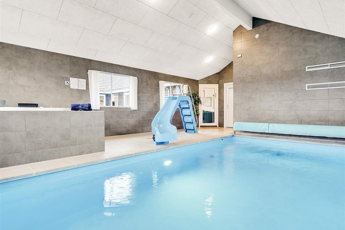 Der Poolbereich des Ferienhauses beinhaltet einen 20 m2 großen Pool mit Rutsche für den Badespaß der Kinder und Gegenstromanlage für die Fitness sowie einen großen Whirlpool und eine Sauna zur Entspannung. Es ist somit bestens für den Erholungsurlaub ausgestattet.