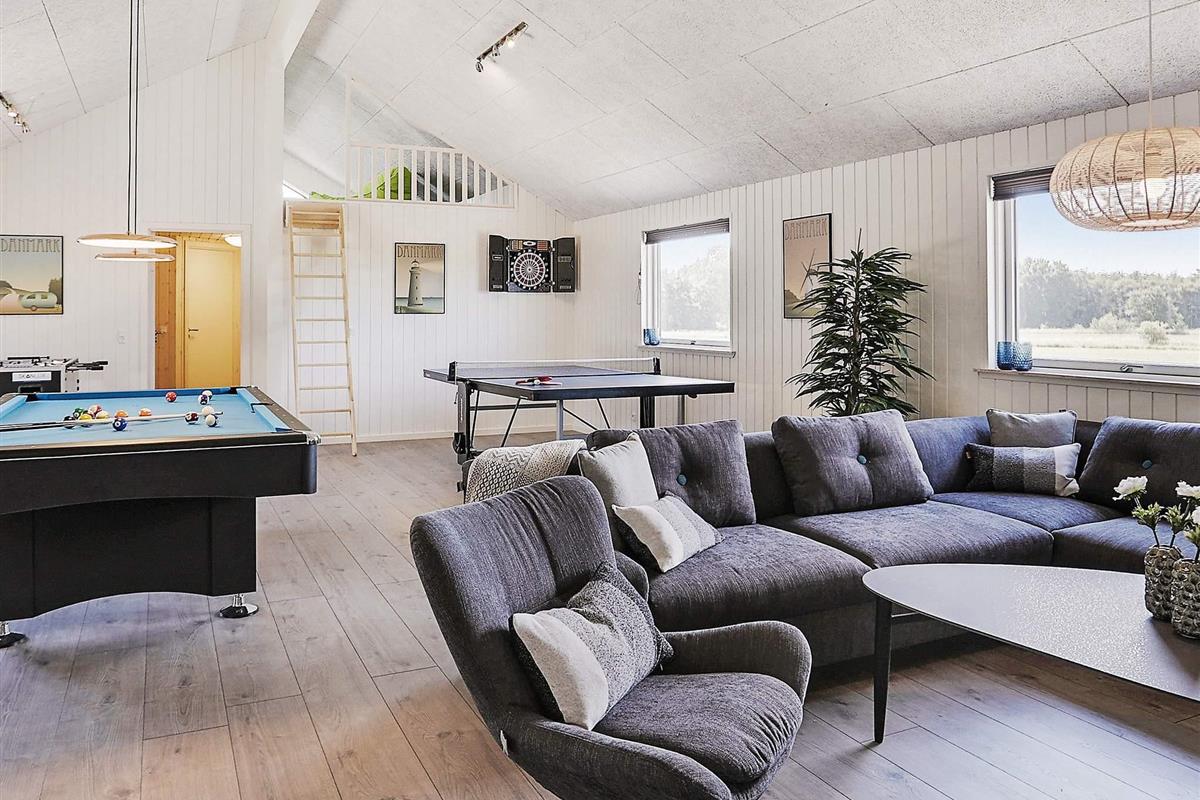 Großes, ansprechend eingerichtetes Ferienhaus in Råbylille Strand gelegen und mit Pool- und Aktivitätsbereich eingerichtet.