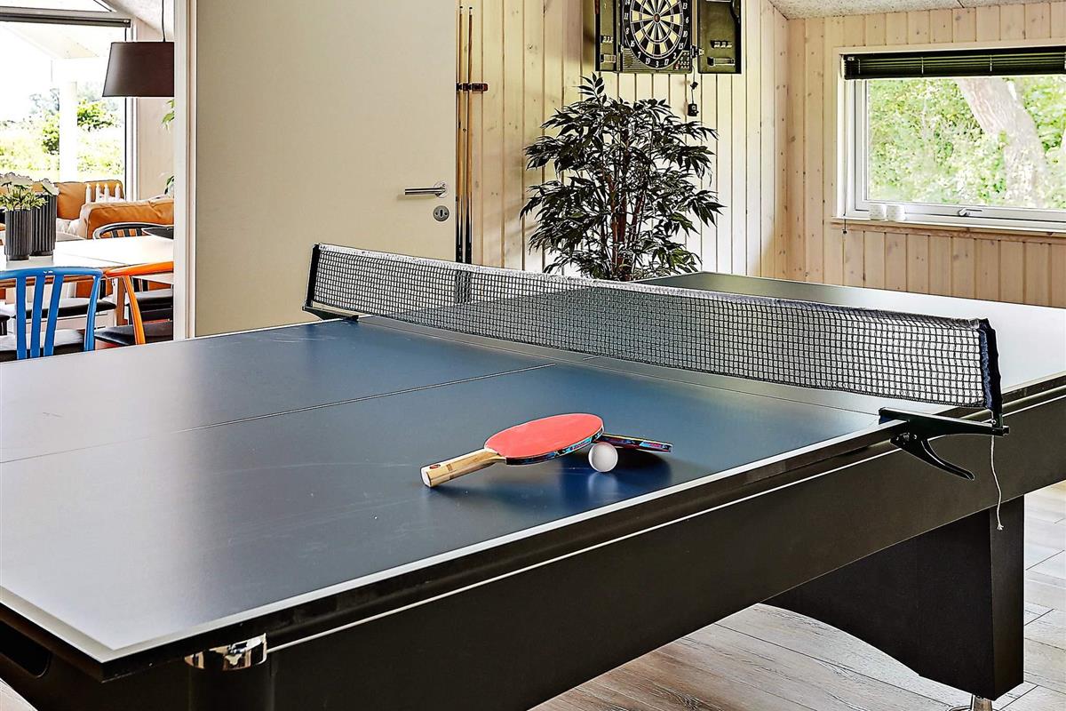 Dieses Wellness-Ferienhaus von Skanlux wurde mit modernen Möbeln persönlich und gemütlich eingerichtet. Es gibt einen Aktivitätsraum, in dem Sie sich gegenseitig bei einer Runde Tischkickern, Billard, elektronischem Darts oder Tischtennis herausfordern können.