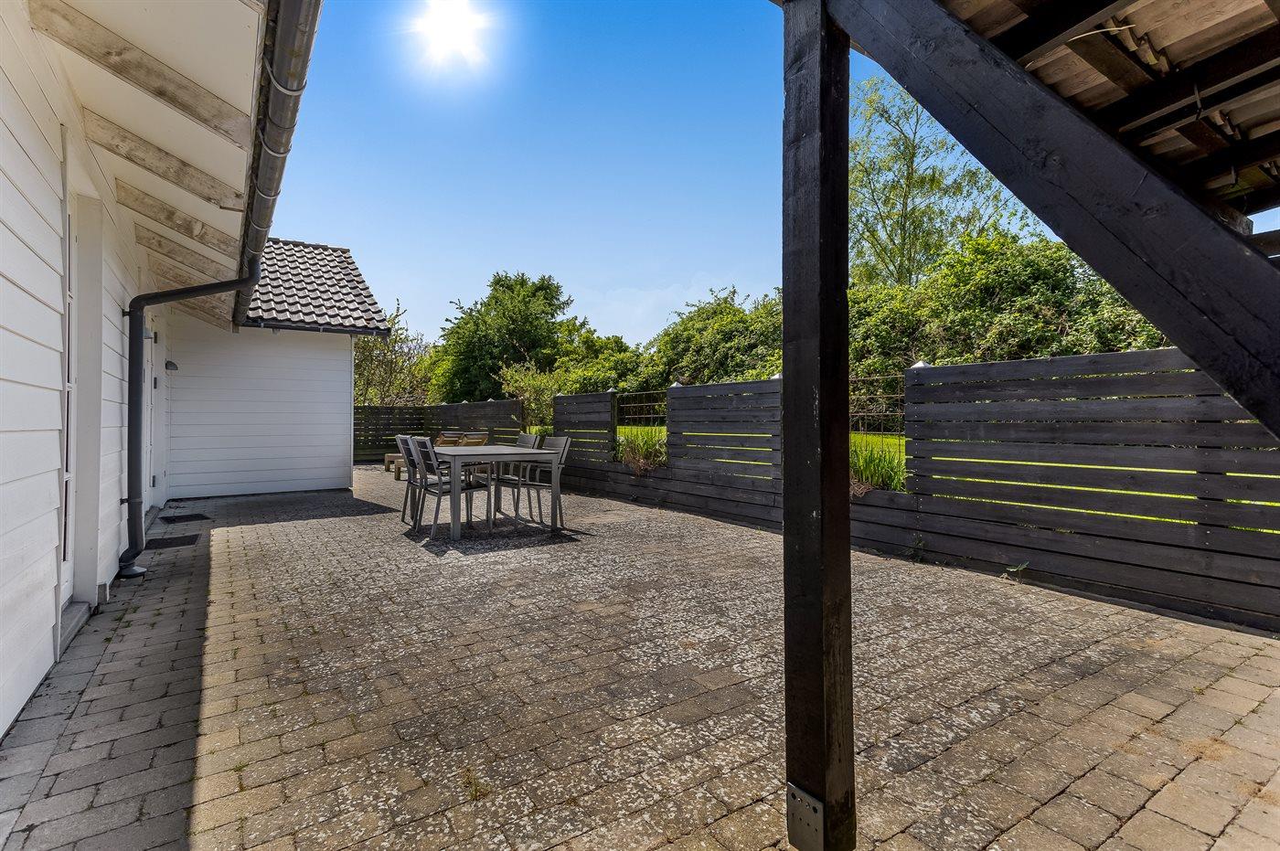 De vakantiewoning is gelegen op een 1225 m² groot aangelegde tuin. Afstand tot de zee 150 m. Dichtstbijzijnde winkel 5000 m. Bij de vakantiewoning hoort beschut terras. Gasbarbecue ter beschikking. Het huis heeft een stopcontact voor het opladen van een elektrische auto. Oplaadstekker type 2. Met 22 kW-laadvermogen. Parkeerplaats bij het huis.