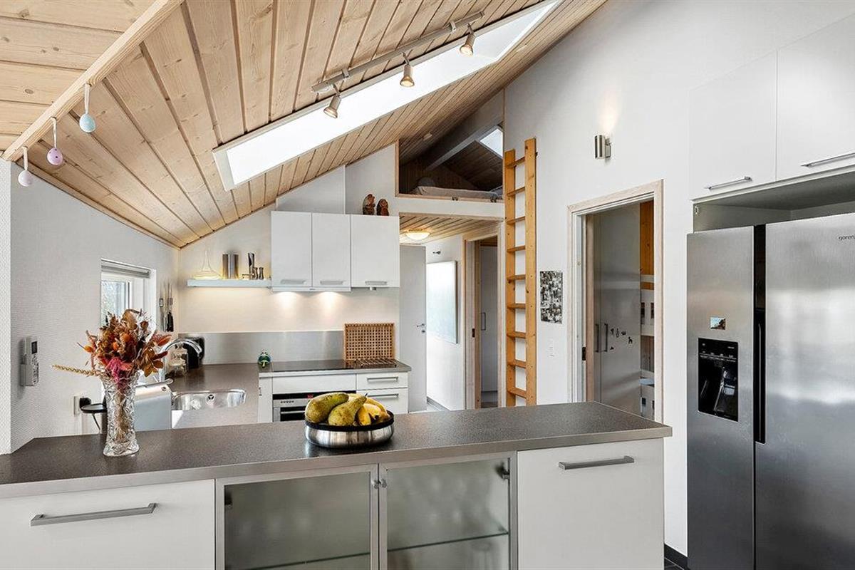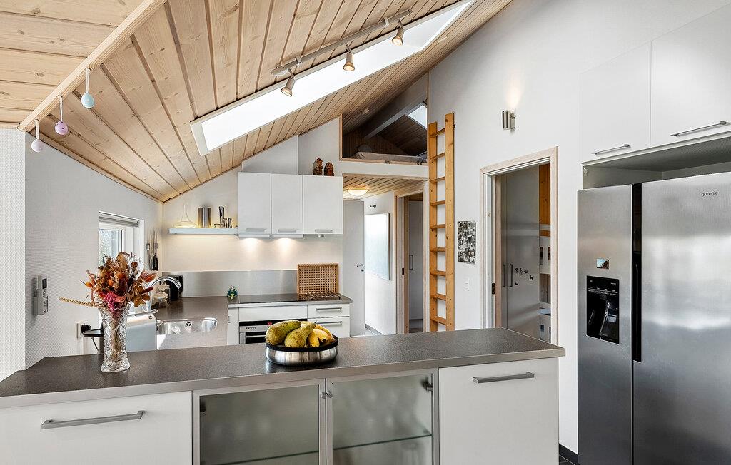 Dit vakantiehuis combineert heldere vormen met gezellige warmte en creëert een plek waar het hele gezin zich thuis voelt, of je nu speelt, ontspant of gezellig bij elkaar zit. Lichte materialen, ruime kamers en leuke details maken het gemakkelijk om aan te komen. Klim de kleine ladder op naar de gezellige slaapzolder. De keuken in elegant staal biedt ruimte om samen maaltijden te bereiden, terwijl houten muren en de houtkachel een warme sfeer creëren. Grote ramen laten veel licht binnen in de woonkamer. De grote bank of leren fauteuil zijn perfect om te lezen, kruiswoordpuzzels te maken of te ontspannen.