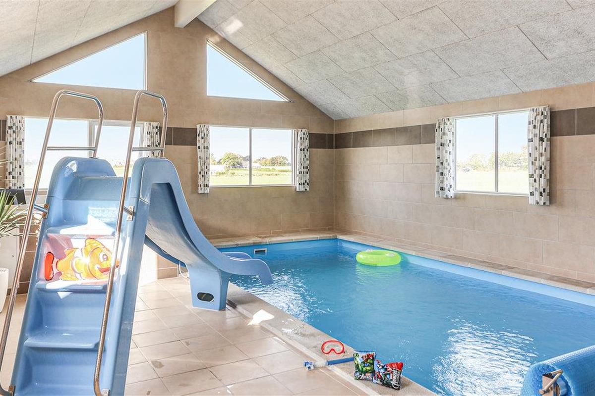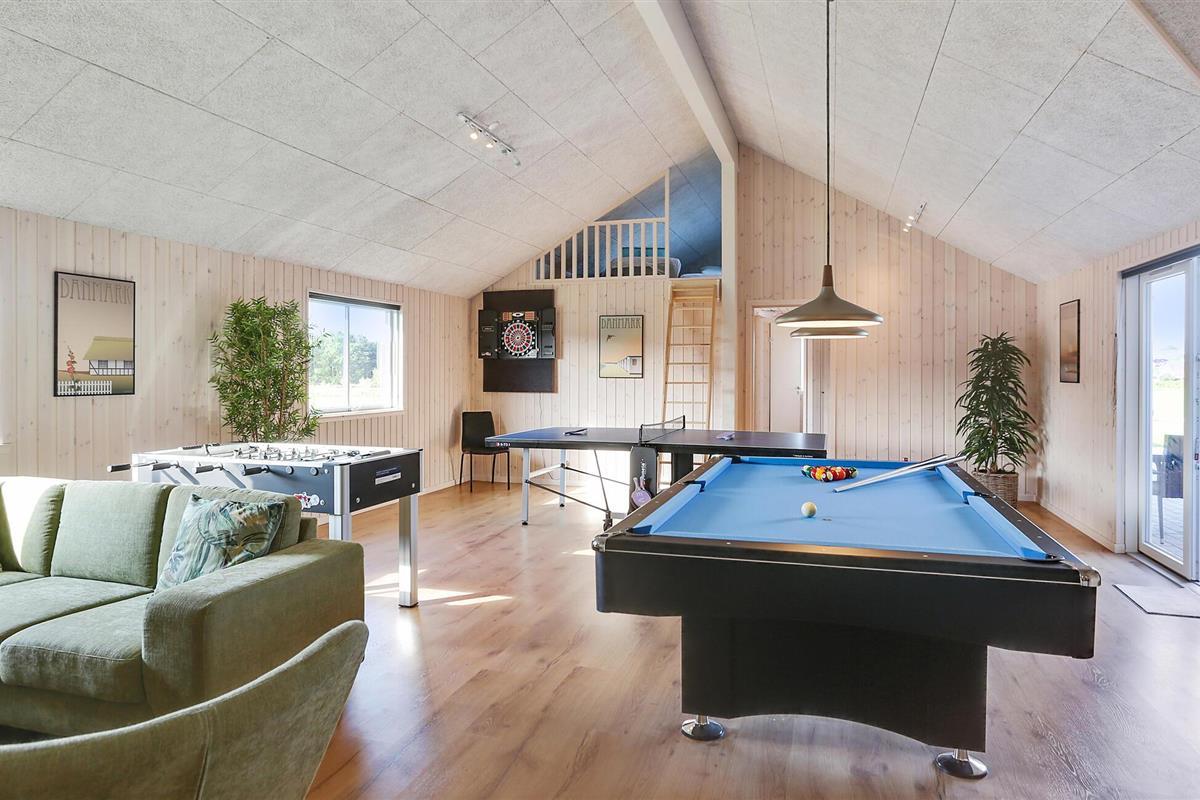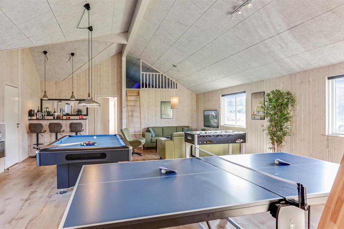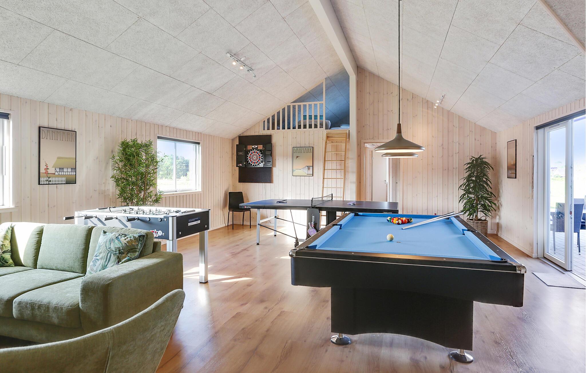 Groot en goed uitgerust vakantiehuis aan het strand van Råbylille, met veel spannende details en activiteiten. Het zwembadgedeelte heeft een groot zwembad, een ingebouwde whirlpool voor vier personen en een sauna. Het zwembad is 20 m² groot en heeft een glijbaan voor de kinderen. Er is ook een zwemtrainer waar u uw conditie kunt verbeteren. In de activiteitenruimte is er genoeg vermaak voor de hele vakantie, u vindt er tafelvoetbal, biljart, elektrisch darts en tafeltennis.
