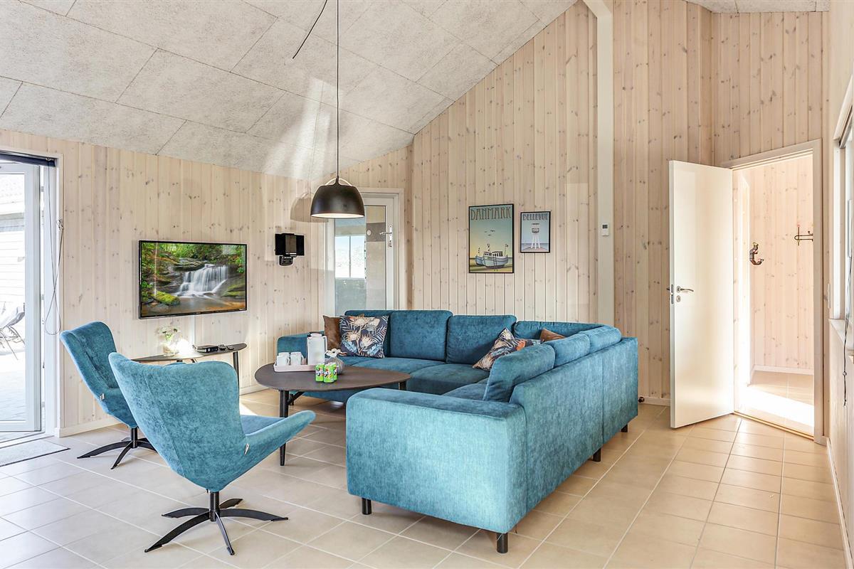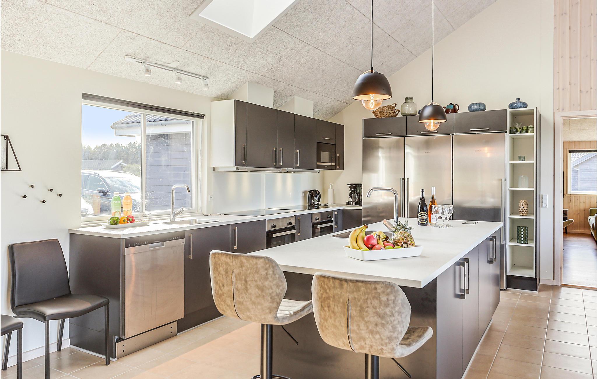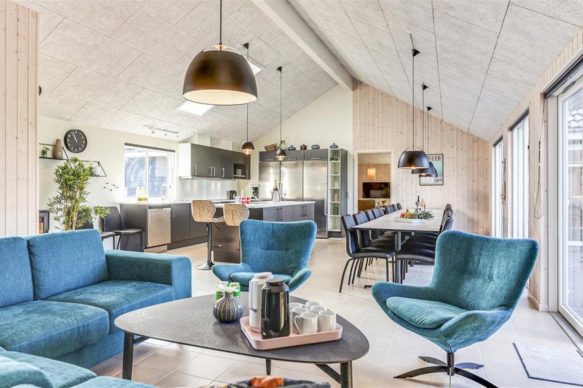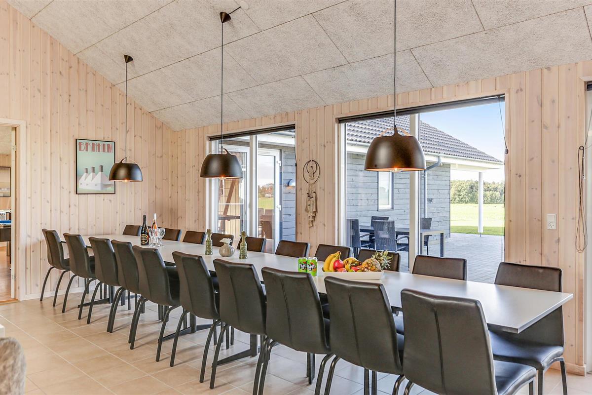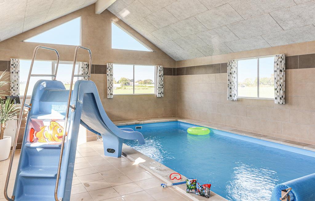 Groot en goed uitgerust vakantiehuis aan het strand van Råbylille, met veel spannende details en activiteiten. Het zwembadgedeelte heeft een groot zwembad, een ingebouwde whirlpool voor vier personen en een sauna. Het zwembad is 20 m² groot en heeft een glijbaan voor de kinderen. Er is ook een zwemtrainer waar u uw conditie kunt verbeteren. In de activiteitenruimte is er genoeg vermaak voor de hele vakantie, u vindt er tafelvoetbal, biljart, elektrisch darts en tafeltennis.