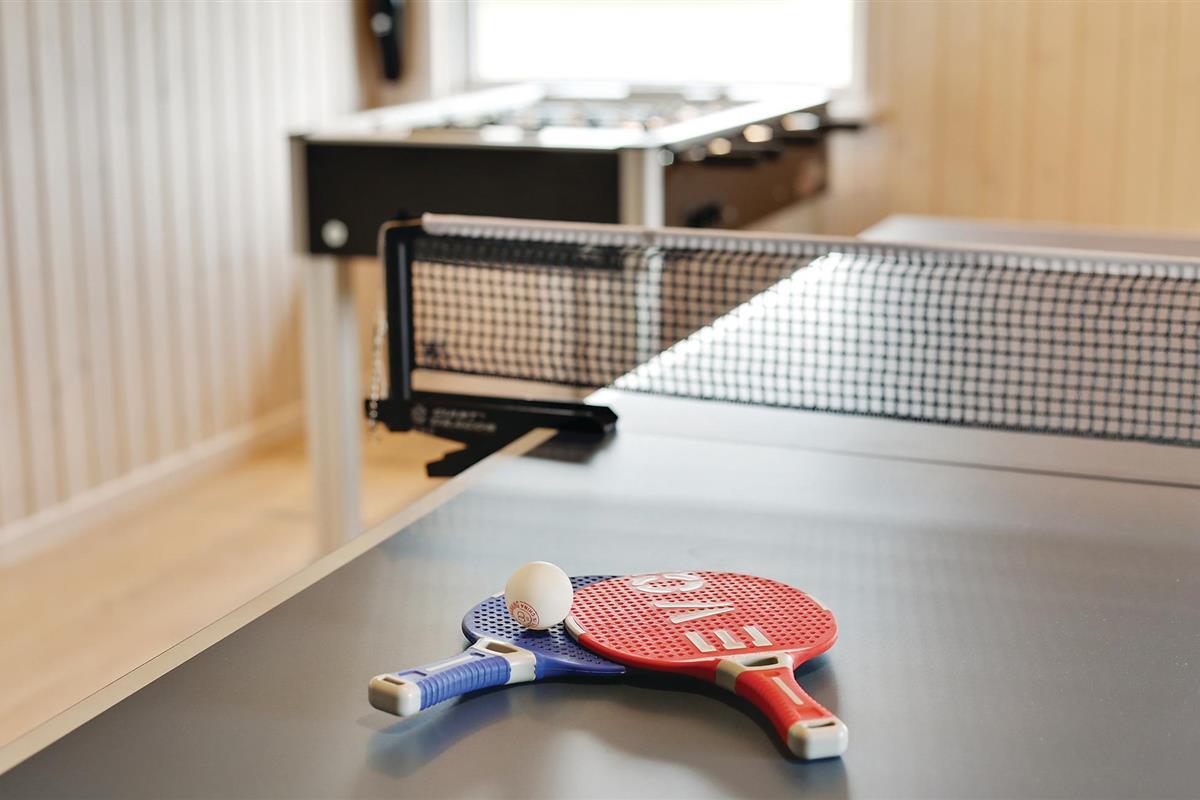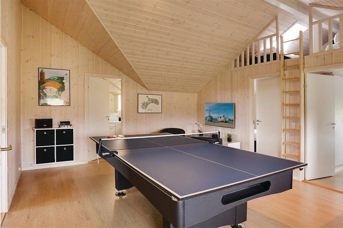 Beleef een ontspannen vakantie in Hjelm Bay. Dit ruime vakantiehuis biedt de ideale omgeving voor een vakantie met familie of vrienden, midden in de natuur en niet ver van het kindvriendelijke strand. Stap binnen in het lichte huis met zijn open architectuur en grote ramen. Kook samen in de goed uitgeruste keuken, serveer je maaltijden aan de lange eettafel en laat je blik door de hoge ramen dwalen. Maak het jezelf gemakkelijk in de zithoek of geniet van rustige avonden bij de houtkachel. Amusement wordt geboden door de tafeltennistafel, biljarttafel en tafelvoetbal in de activiteitenruimte. Een ander hoogtepunt is de eigen wellnessruimte van het hotel met zwembad en waterglijbaan, evenals whirlpool en sauna voor ontspannende uren.