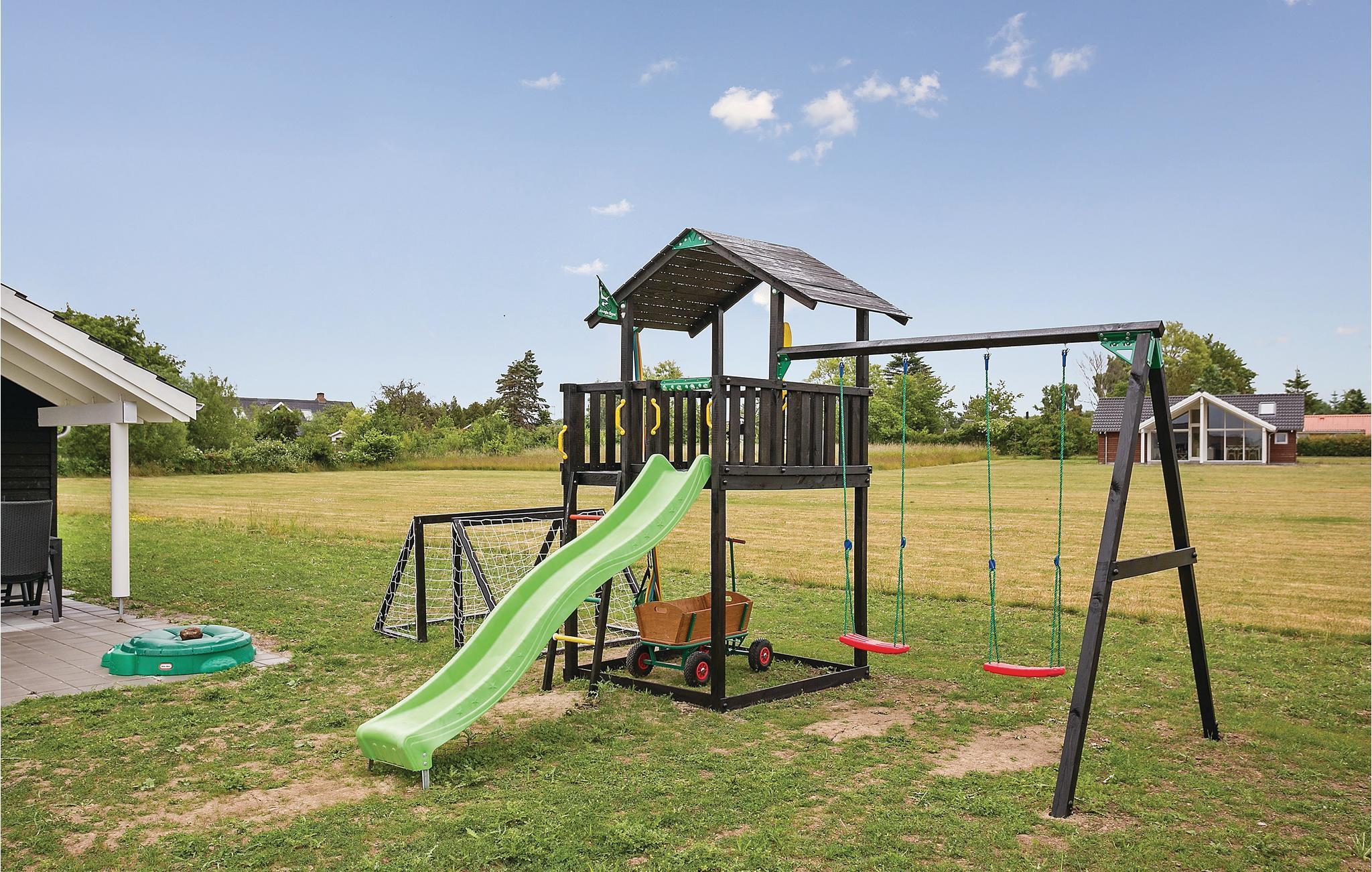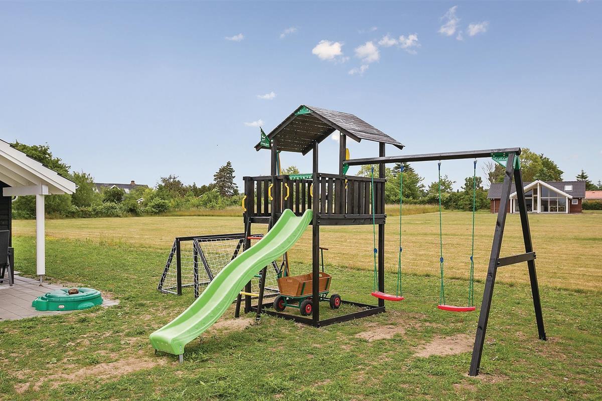 Breng zonnige dagen door op het ruime terras met tuinmeubilair, barbecue en veel ruimte om te zonnebaden. Je kinderen zullen genoeg te doen hebben in de grote speeltuin met schommels, glijbaan en voetbalgoals. Er is ook een kleine zandbak.