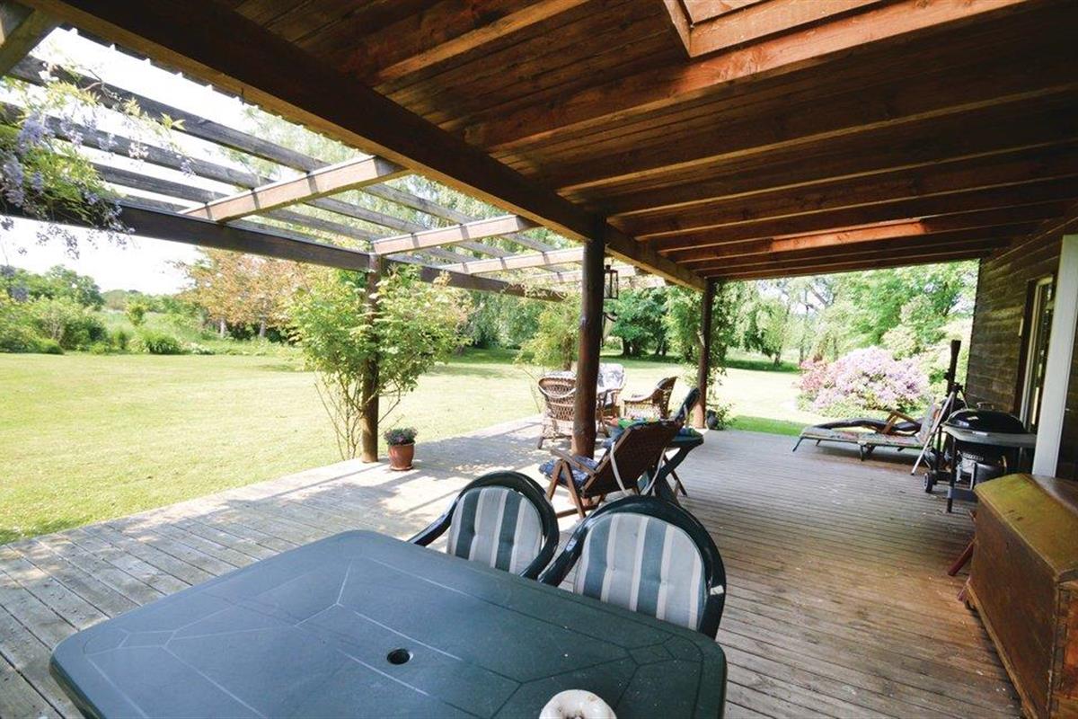 Ontdek dit charmante vakantiehuis dichtbij Råbylille Strand met een groot natuurperceel en gezellig terras.