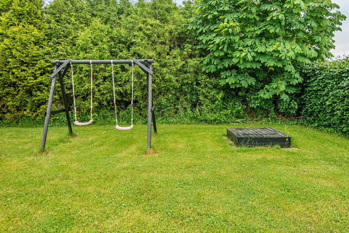 Im Außenbereich gibt es zwei Terrassenflächen, eine davon ist größtenteils überdacht. Davor gibt es eine große, offene Rasenfläche für Spiel, Sport und Spaß mit der ganzen Familie. Für Kleinkinder stehen zudem Bollerwagen und Schaukel bereit. Die Rasenfläche pflegt ein Mähroboter.