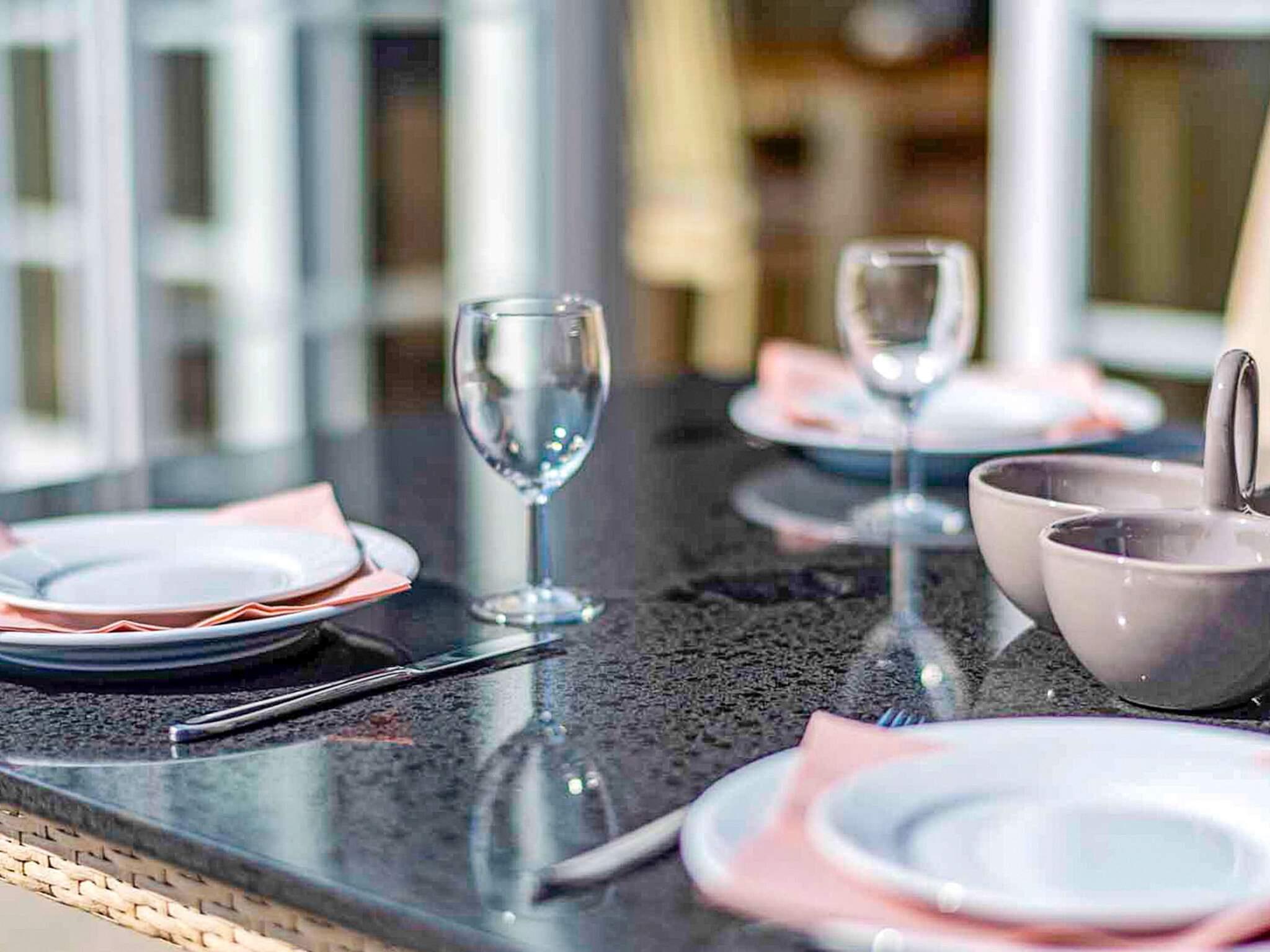 Im Außenbereich findet man schöne Terrassenflächen, einen Gartengrill sowie eine angelegte, gemeinschaftliche Rasenfläche. Der tägliche Einkauf lässt sich einfach in einem örtlichen Lebensmittelgeschäft erledigen.