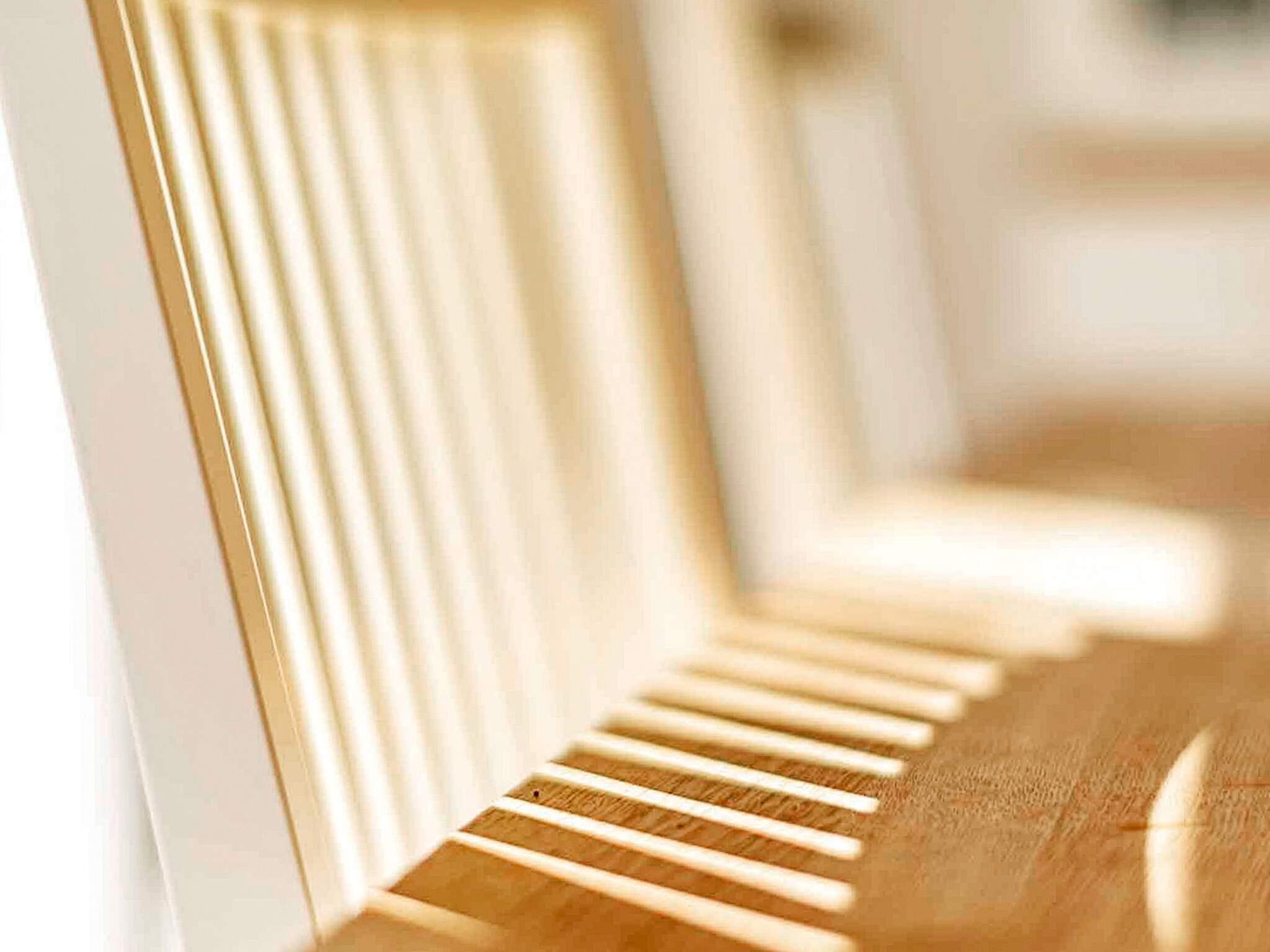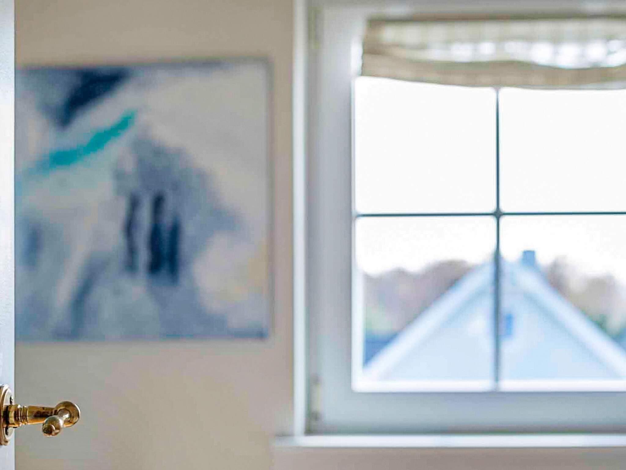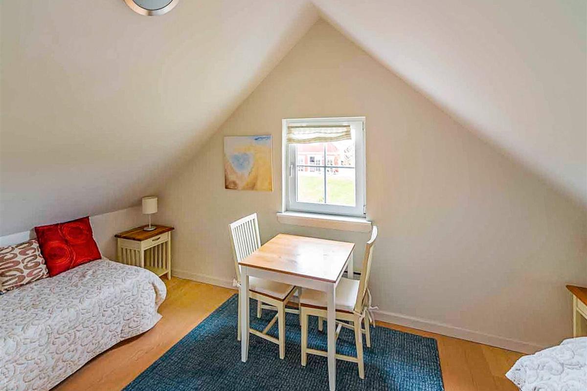 Ein Schlafzimmer mit Doppelbett im Parterre. Oben im Dachgeschoss liegen zwei weitere Schlafzimmer: eines mit Doppelbett, das zweite mit zwei Einzelbetten. Zudem praktische Gästetoilette oben.
