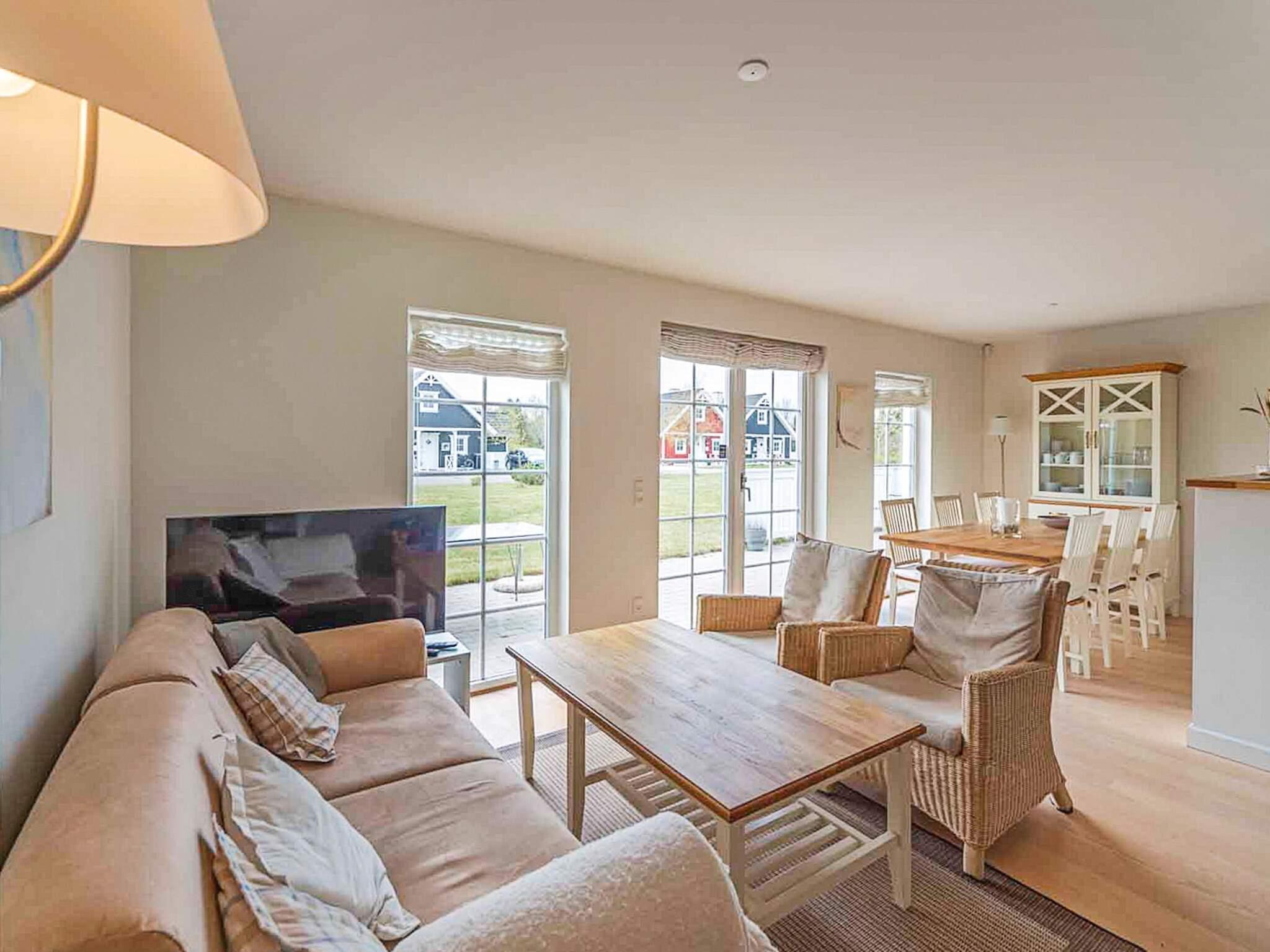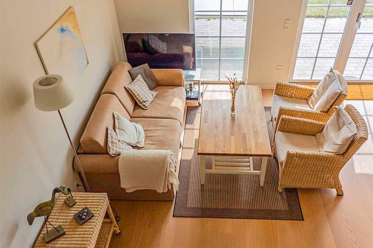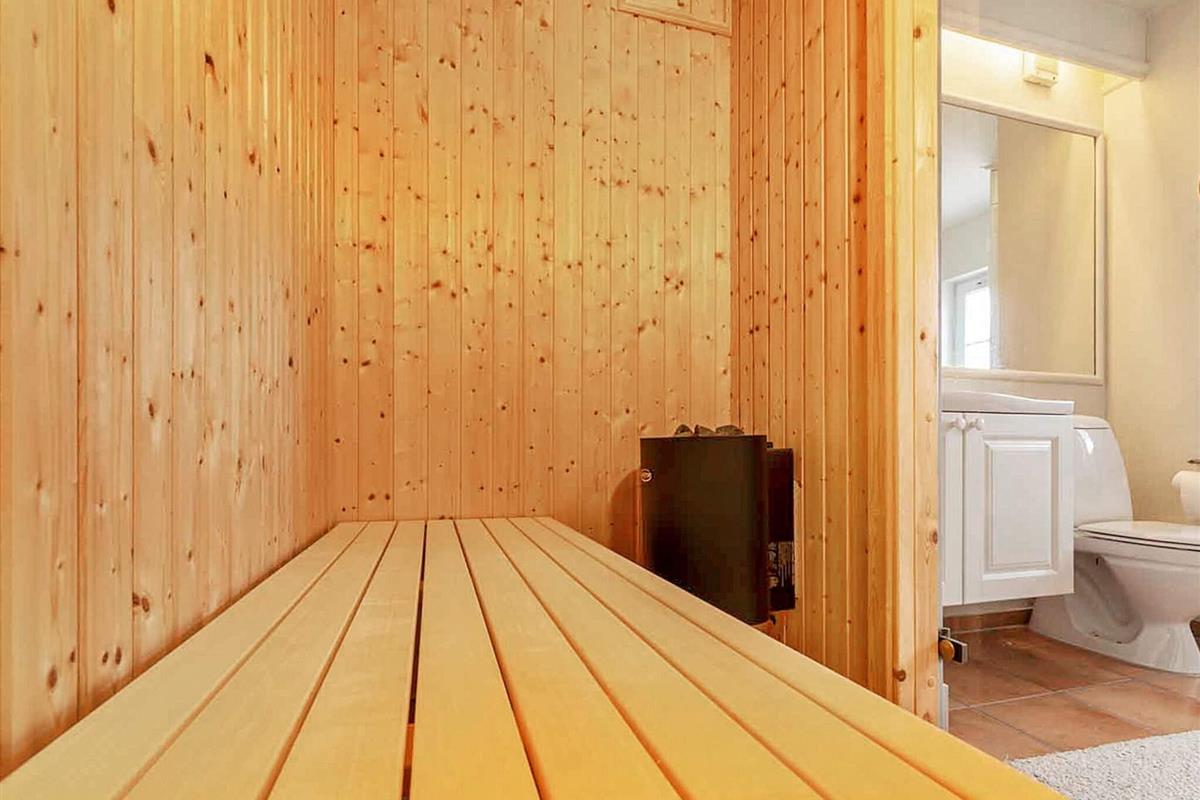 Im Haus offen kombinierter Küchen-/Wohnbereich für das Familienleben, mit Holzofen, WLAN und Fernseher mit Chromecast, Radio und Blu-ray zur Verfügung. Zur Küchenausstattung gehören auch Ceranfeld, Mikrowelle und Geschirrspüler. Ein Badezimmer mit Whirlpool und Sauna, Fußbodenheizung und Dusche. Im Hauswirtschaftsraum befindet sich die Waschmaschine.