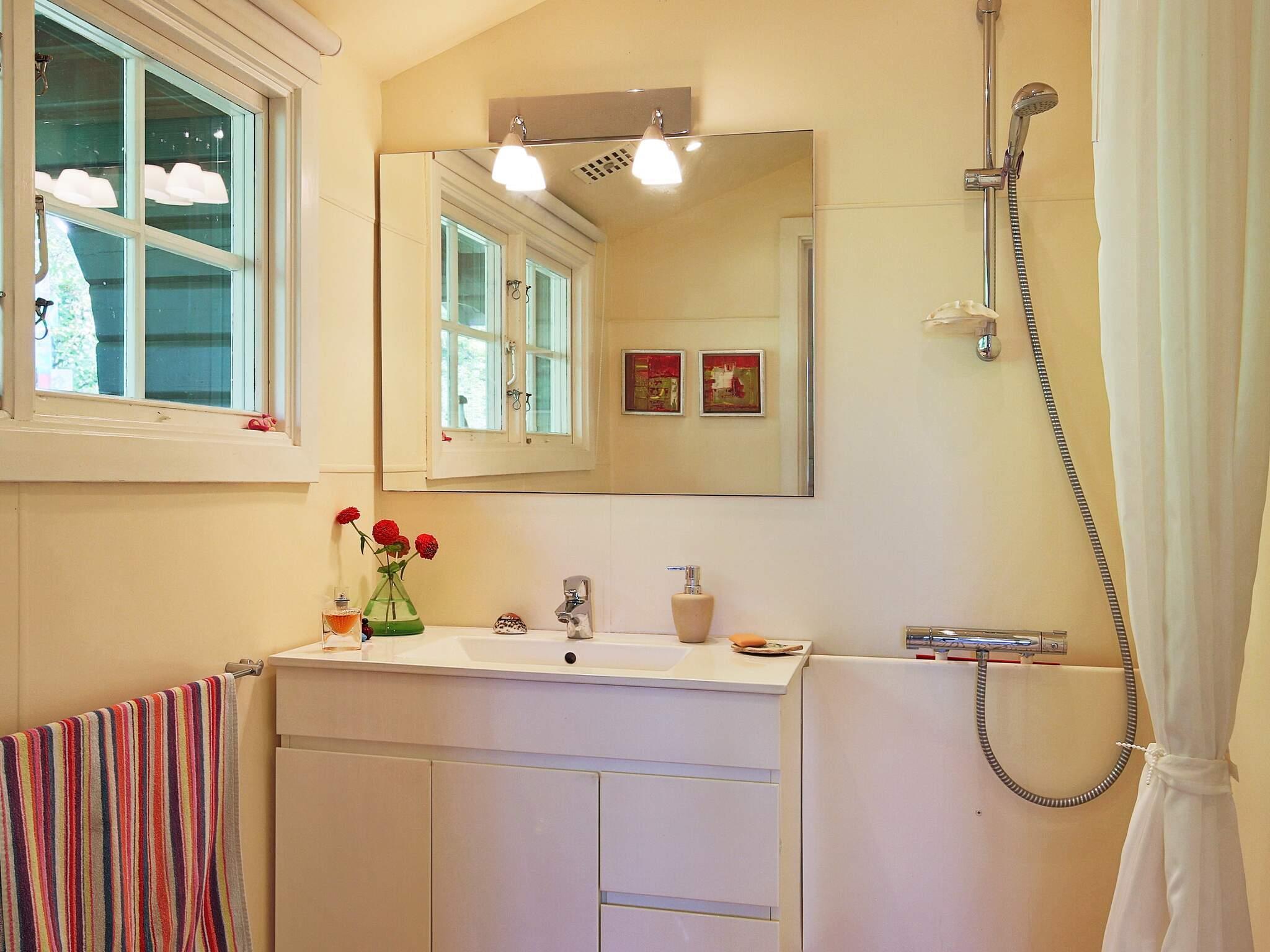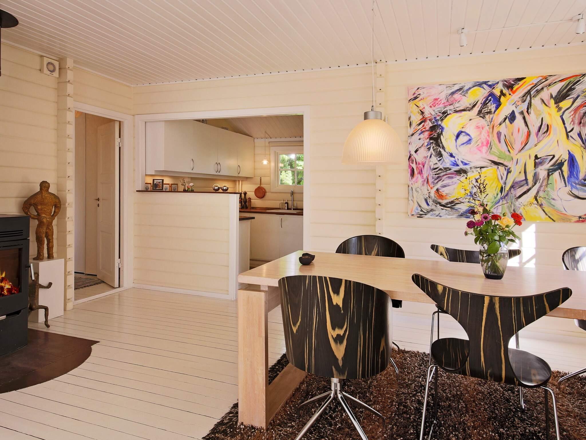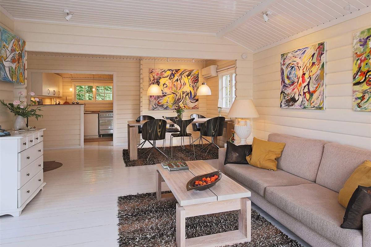 Das Haus verfügt über einen offenen Küchen- und Wohnbereich mit Ess- und Sitzgelegenheiten für ein gemütliches Familienleben. Der helle Wintergarten erweitert den Wohnraum und sorgt mit viel Tageslicht für eine warme und einladende Atmosphäre. Das Haus wird mit einer umweltfreundlichen Luft-Luft-Wärmepumpe und einem gemütlichen Holzofen beheizt, sodass es auch an kühleren Abenden angenehm warm ist. Die geschmackvolle Einrichtung verbindet Stil mit Funktionalität. Die Küche ist komplett ausgestattet mit Gasherd, Kühl-Gefrierkombination, Kaffeemaschine und Geschirrspüler. Es gibt ein Badezimmer mit Dusche und drei Schlafzimmer: eines mit Doppelbett, eines mit Einzelbett und eines mit Doppelschlafsofa.