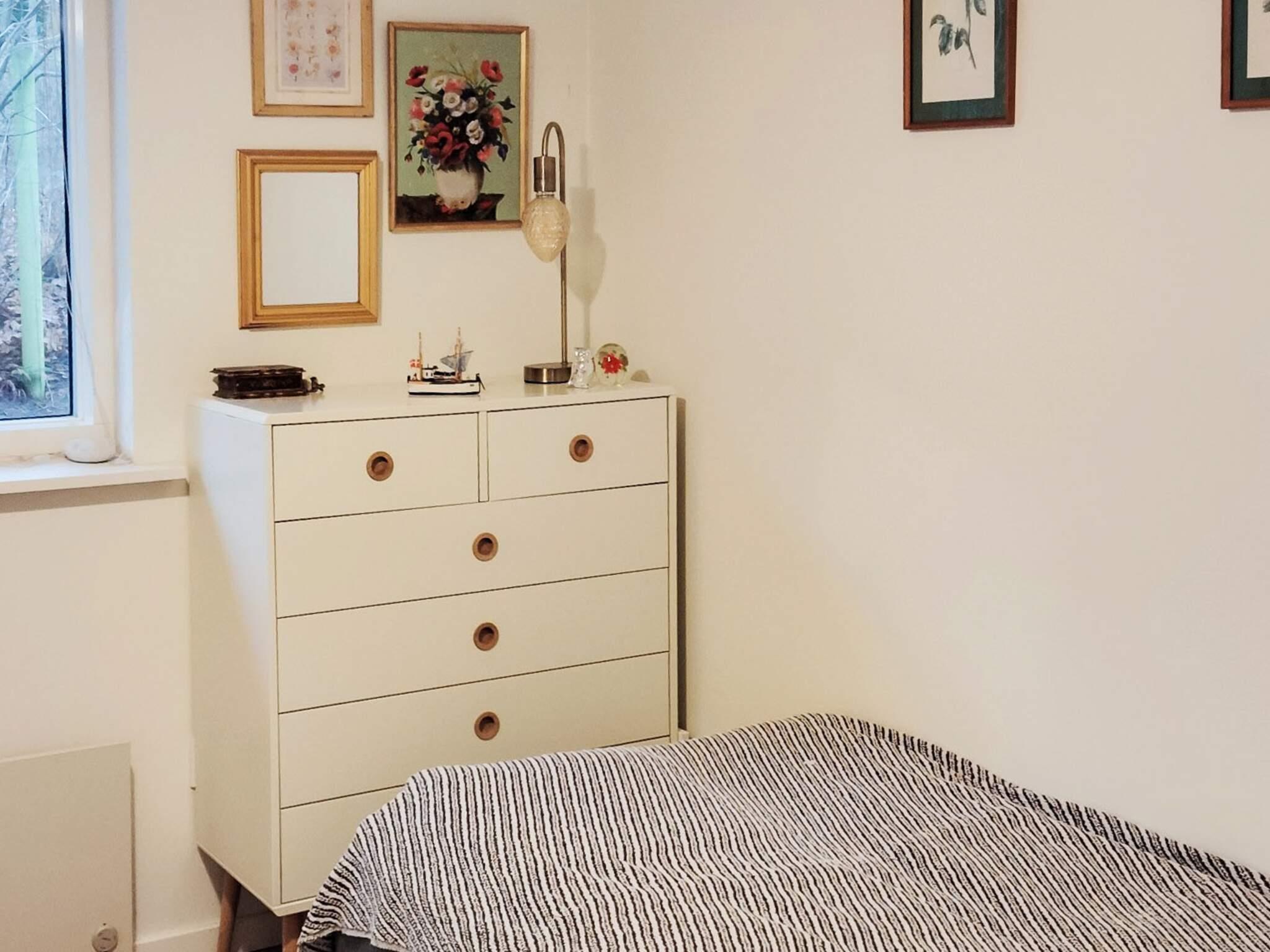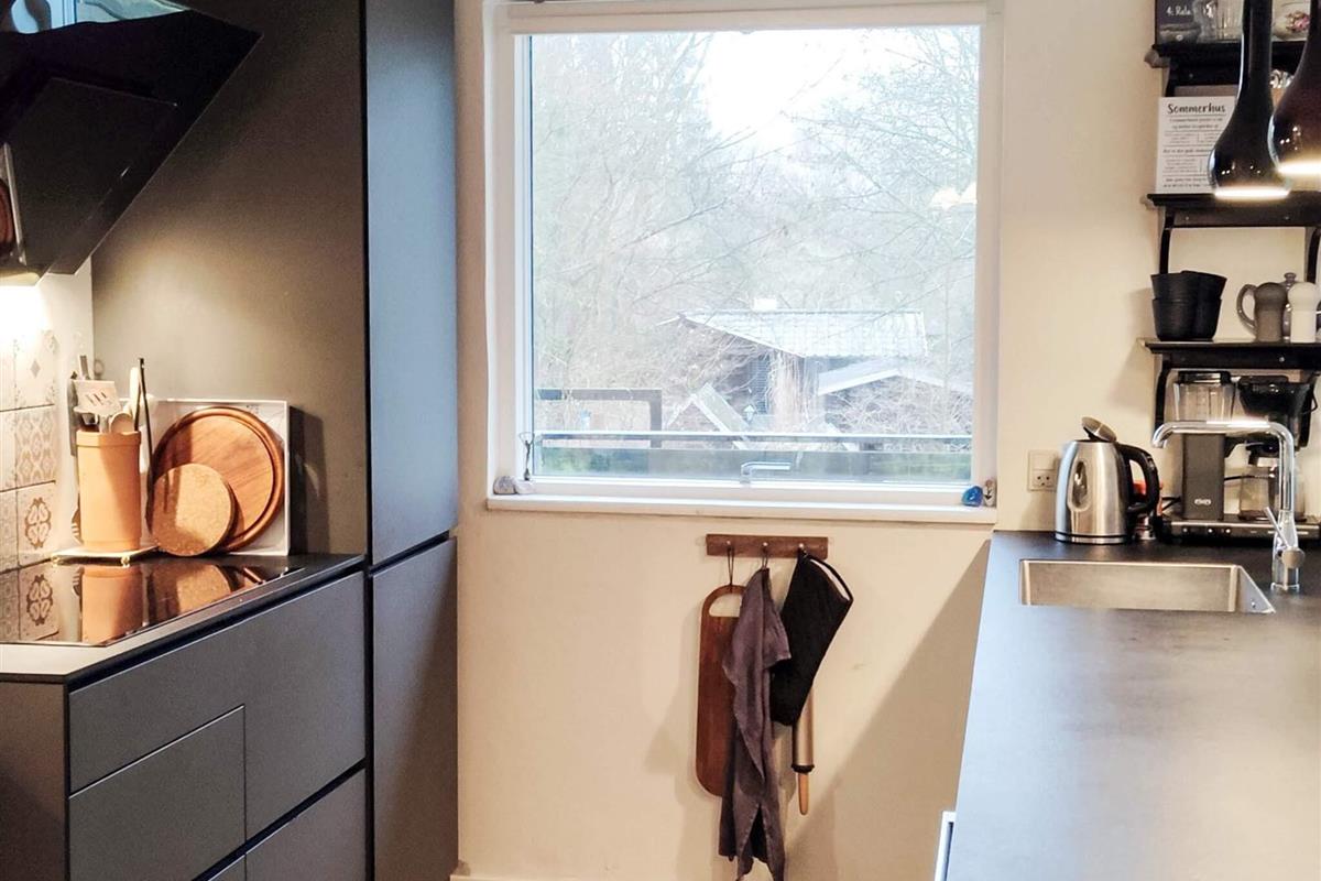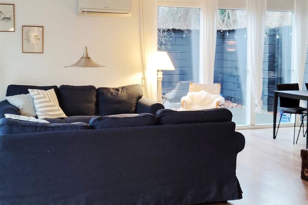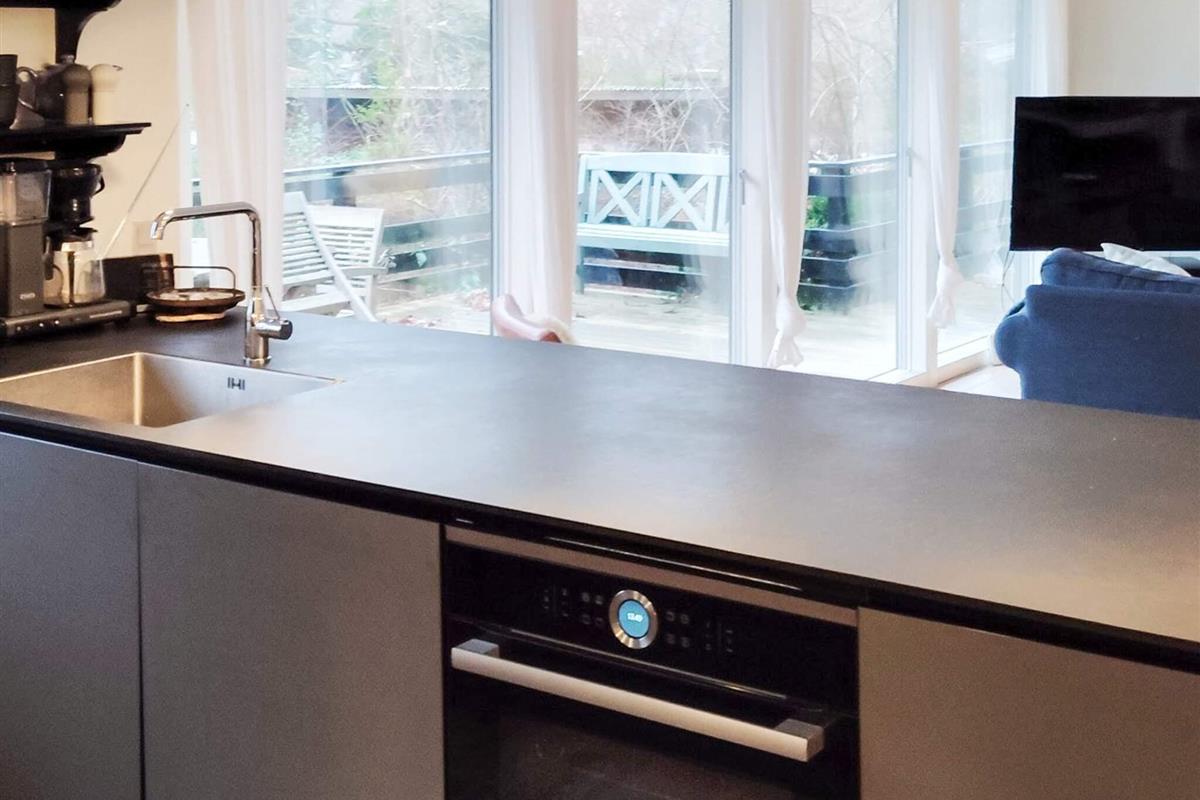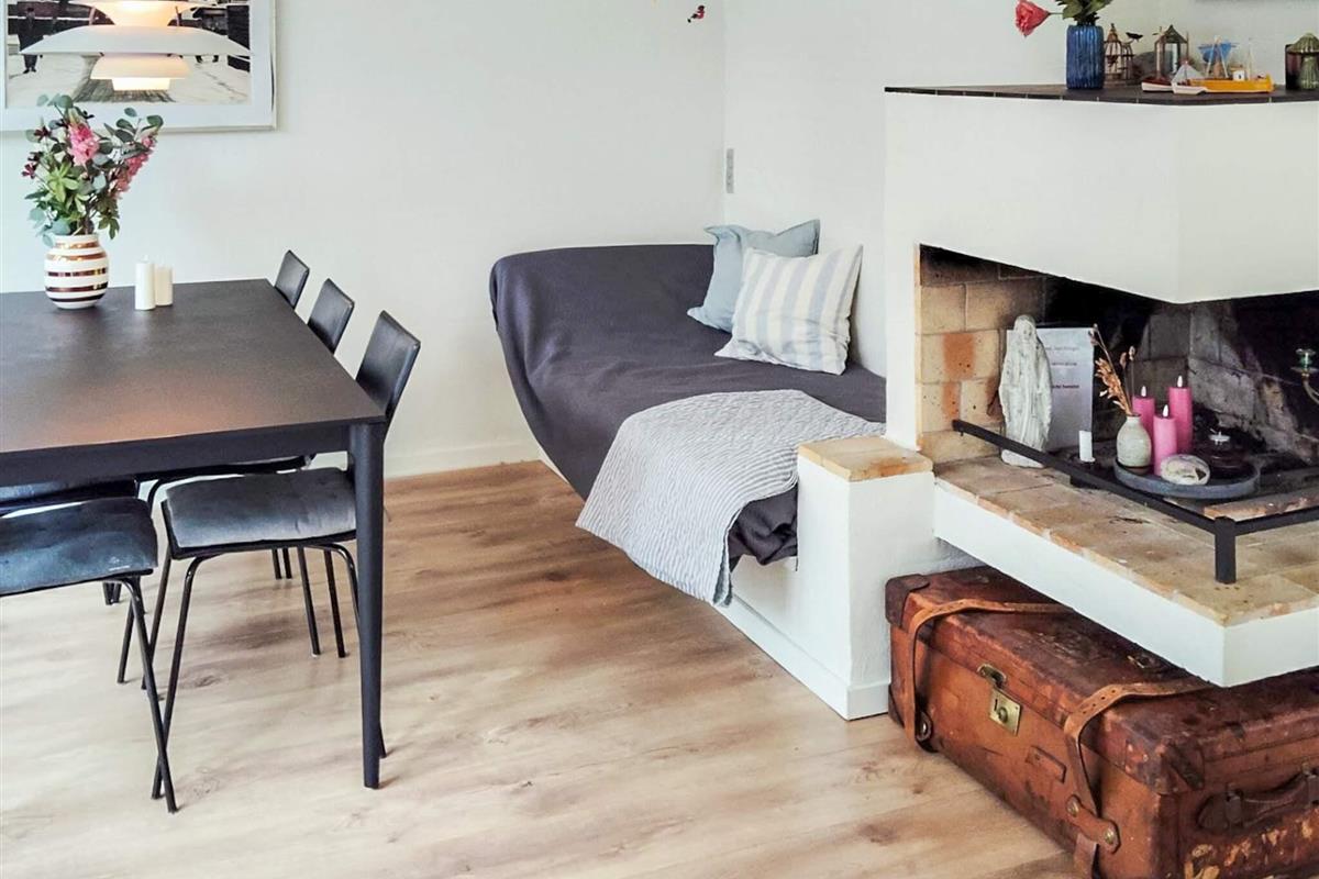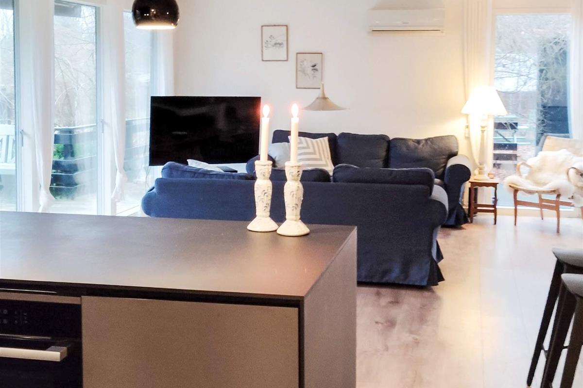 Ferienhaus in der Nähe des Rågeleje Strandes. Das Ferienhaus verfügt über eine offene Küche mit u.a. Induktionskochfeld, Dunstabzugshaube, Kühl-/Gefrierschrank und Geschirrspüler. Das Wohnzimmer ist typisch skandinavisch, in einem modernen, gemütlichen Stil mit einem Fernseher mit Allente-TV-Paket und Bluetooth-Lautsprechern eingerichtet. Eine Schlafmöglichkeit im Wohnzimmer. Klimafreundliche Wärmepumpe vorhanden.