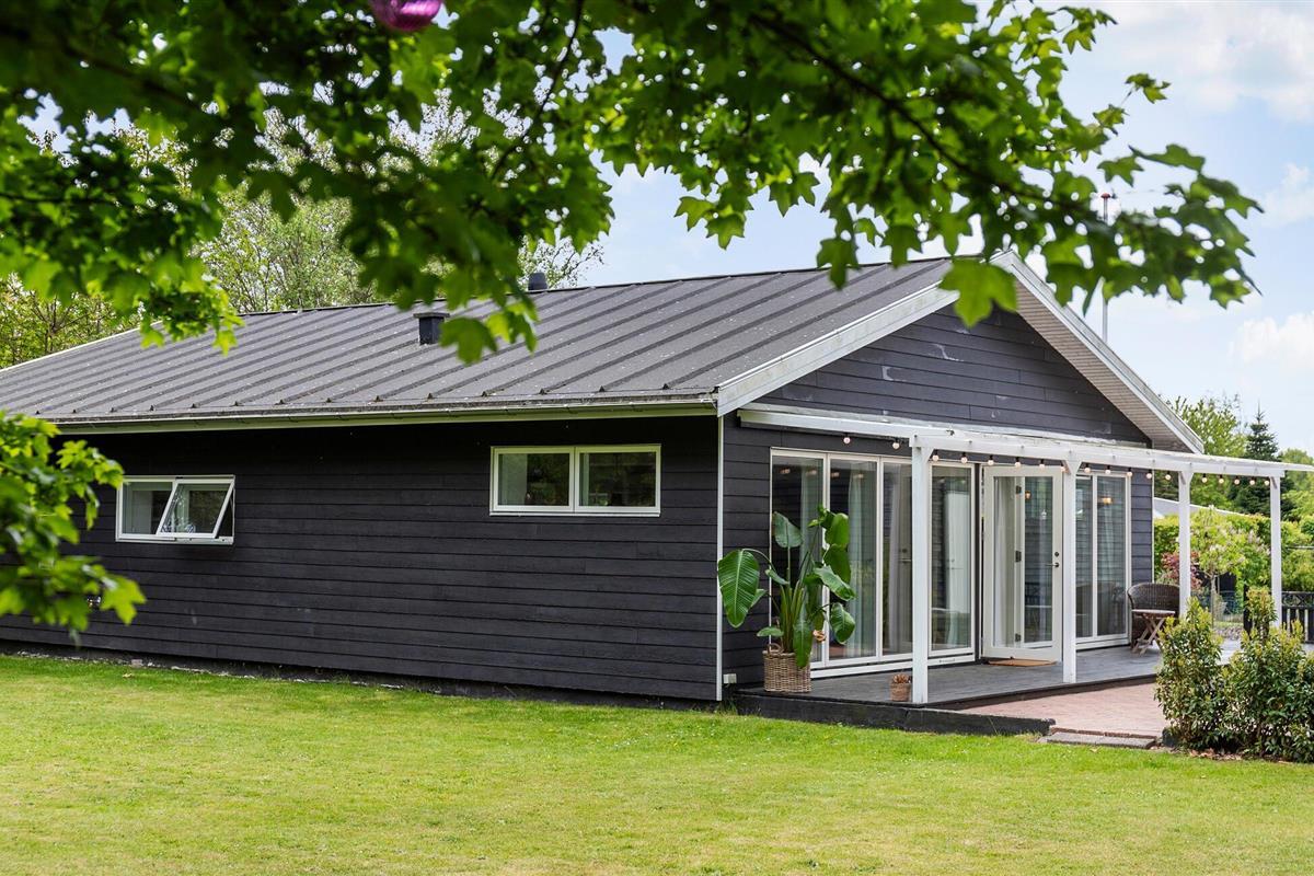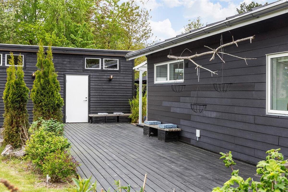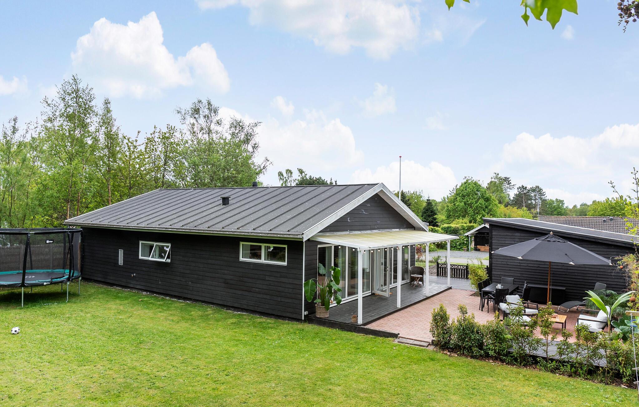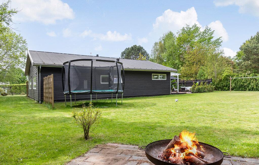 Ruim, stijlvol vakantiehuis met terras, trampoline en vuurplaats nabij het strand van Vejby.