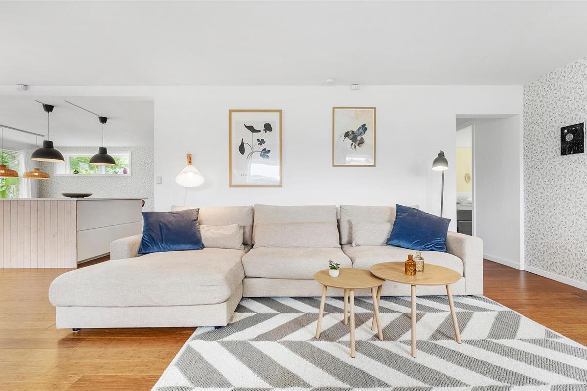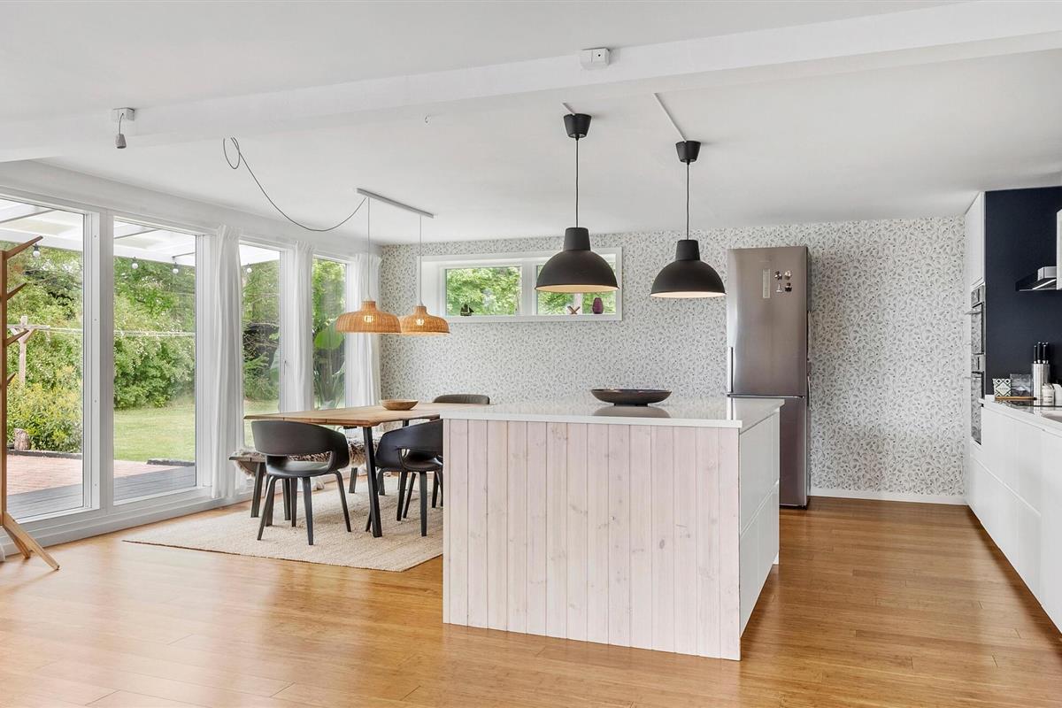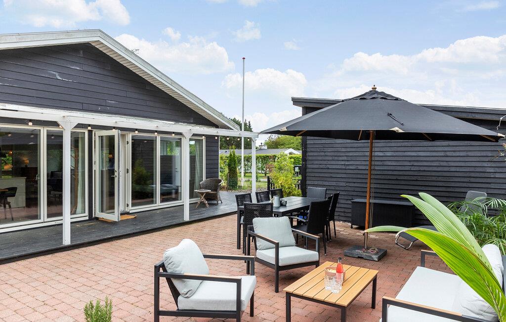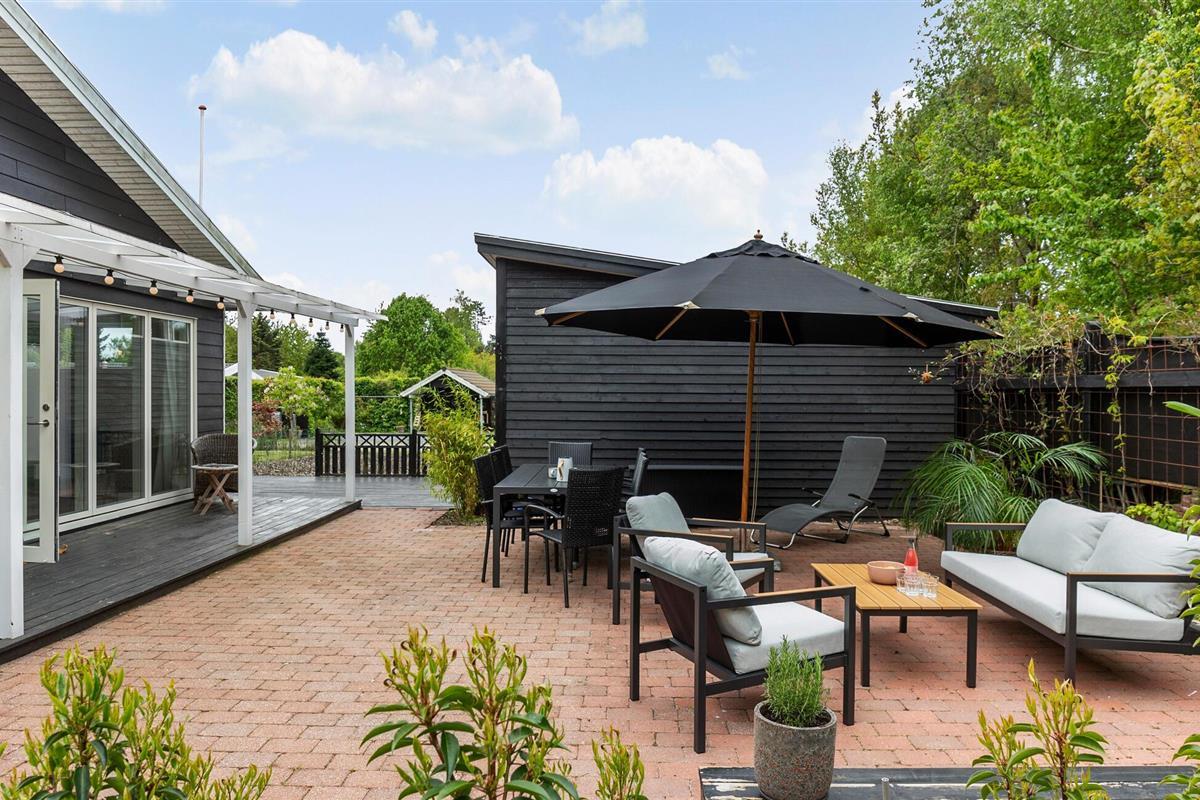 Ruim, stijlvol vakantiehuis met terras, trampoline en vuurplaats nabij het strand van Vejby.