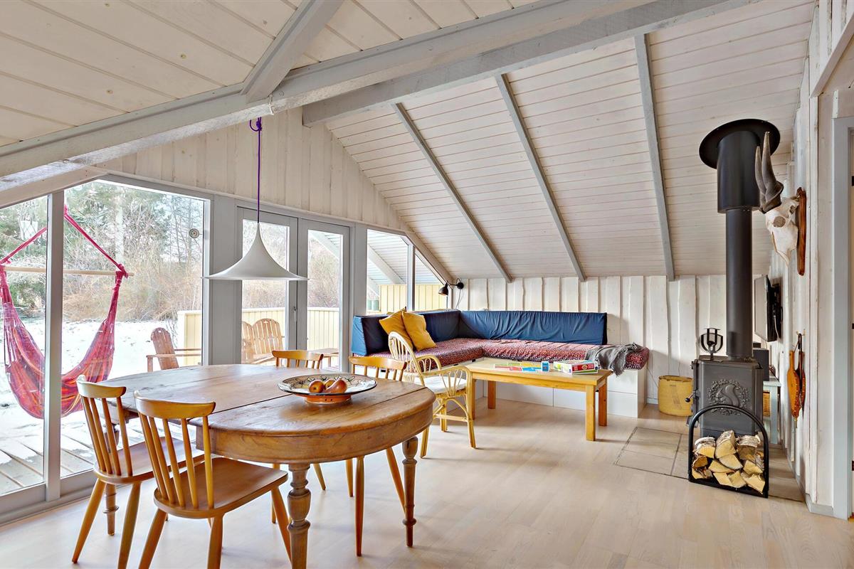 Aan de rand van Raageleje heet dit charmante vakantiehuis je welkom voor een geslaagde familievakantie. In het mooie huis vind je alles wat je nodig hebt om te ontspannen en tot rust te komen. Waarom steek je 's avonds niet de houtkachel aan en speel je gezelschapsspelletjes in de woonkamer? De open keuken nodigt ook uit om samen heerlijke maaltijden te bereiden, waarvan je kunt genieten op het terras of in de tuin. Kijk hoe je kinderen spelen in de tuin terwijl jij in de hangmat ligt.
