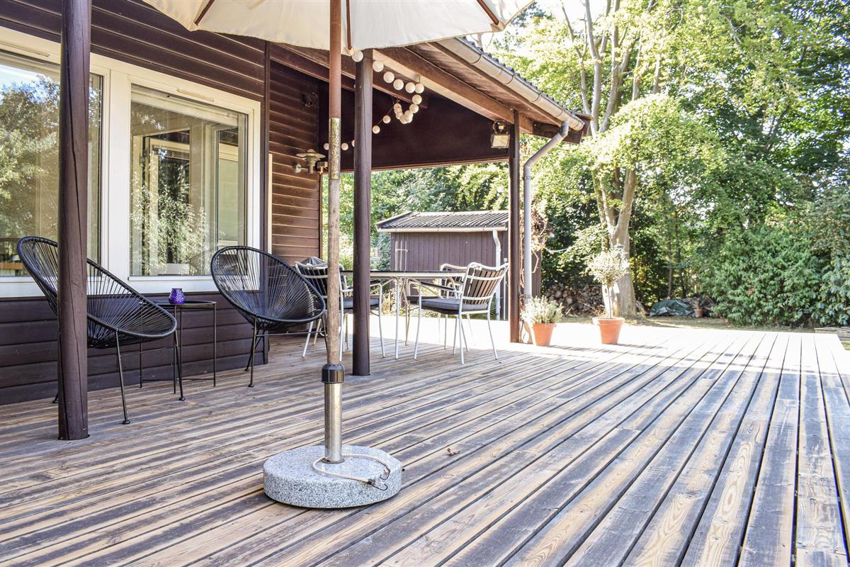 Mooi vakantiehuis met veel ruimte voor balspelen in de tuin en voor barbecuen op het grote, deels overdekte terras.