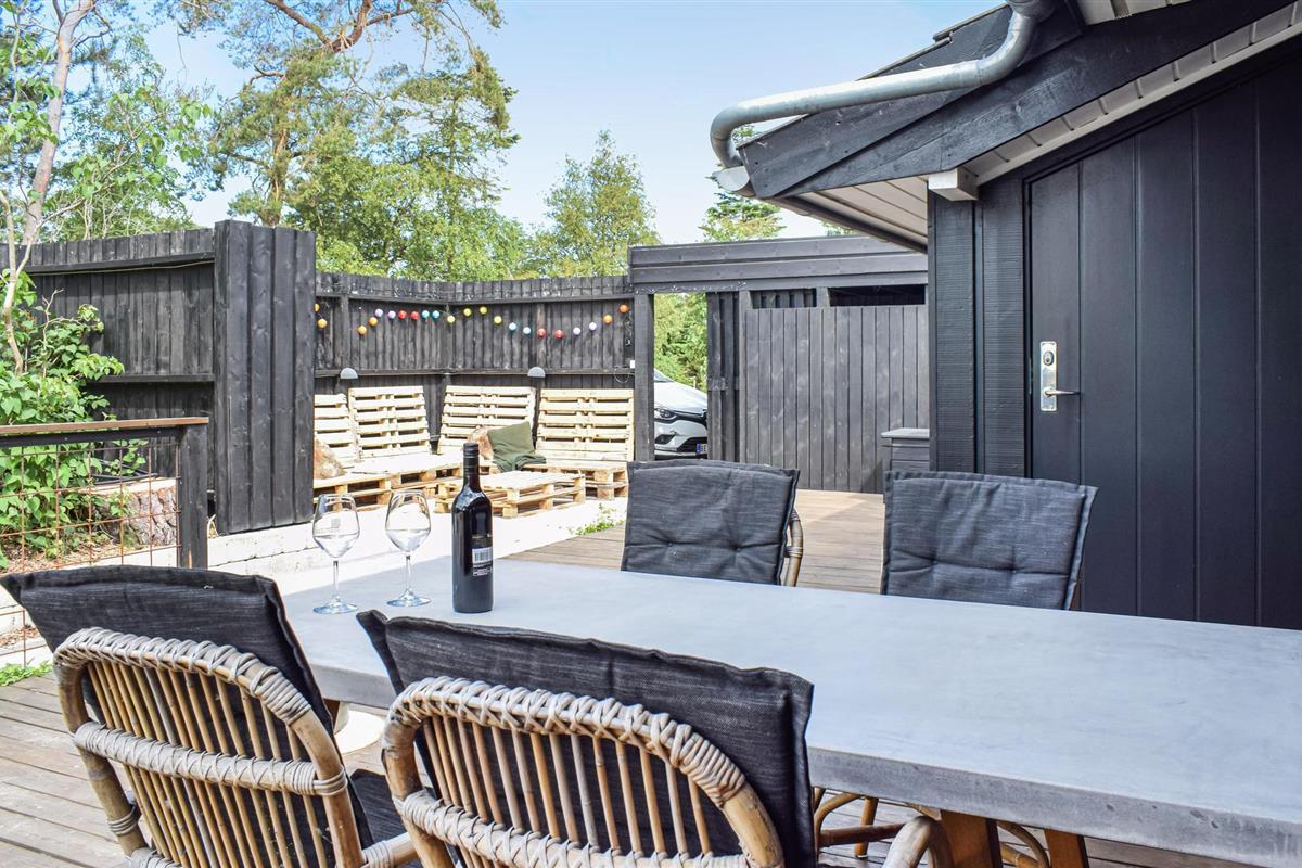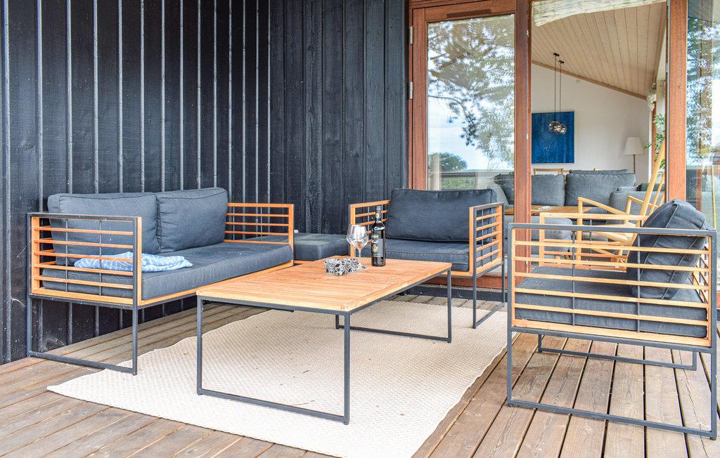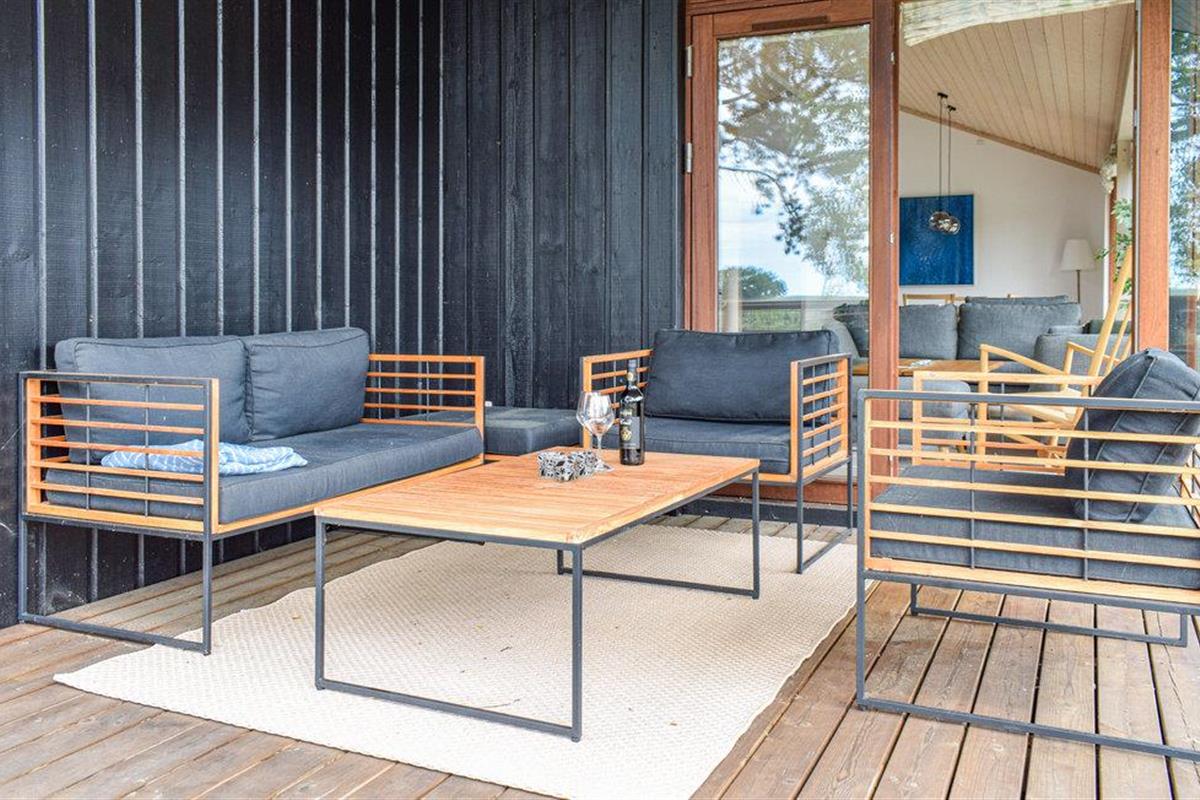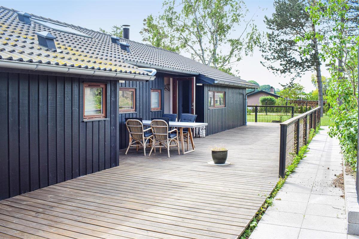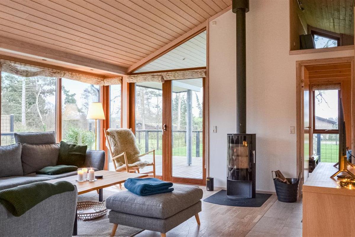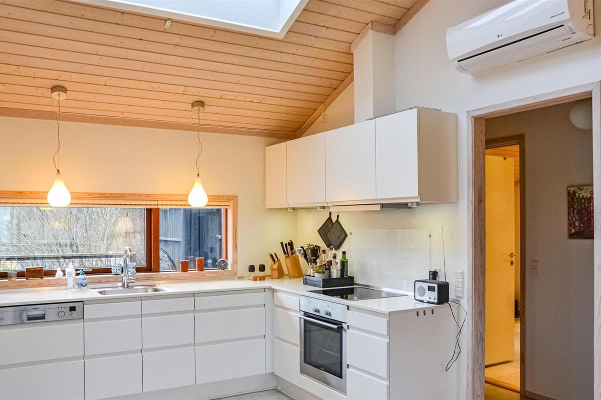 Smaakvol ingericht vakantiehuis met veel lichtinval, houtkachel en open keuken in Rågeleje, dicht bij het strand.