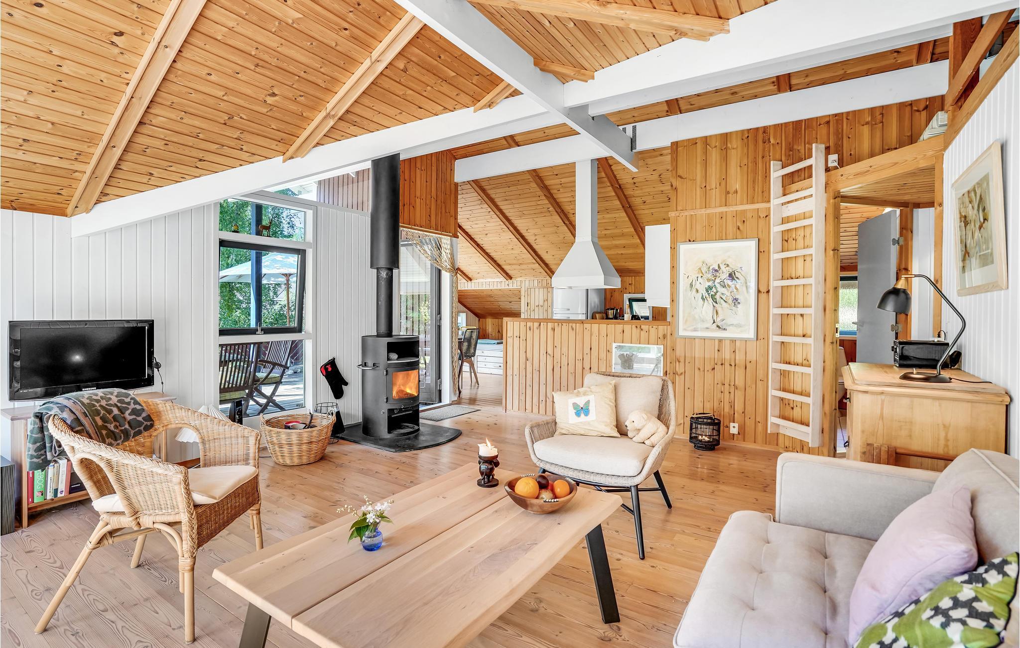 Ruim en comfortabel vakantiehuis in Rågeleje Strand, perfect voor ontspanning aan zee met open haard en grote tuin.