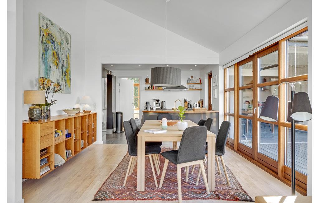 De smaakvol ingerichte en lichte kamers van het comfortabele huis bieden de ideale setting voor een heerlijke tijd samen. De smaakvolle inrichting en de mooie inval van daglicht zorgen voor een huiselijke sfeer. Grote ramen in het woongedeelte bieden een prachtig uitzicht op de tuin, waarvan u het beste kunt genieten tijdens de gezamenlijke maaltijden aan de lange eettafel. Na een strandwandeling kunt u ontspannen in de eigen sauna. Na een bewogen dag kunt u samen een film kijken of spelletjes spelen en genieten van de gezellige warmte die de houtkachel uitstraalt.